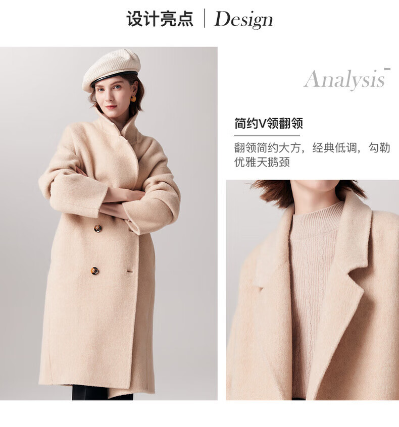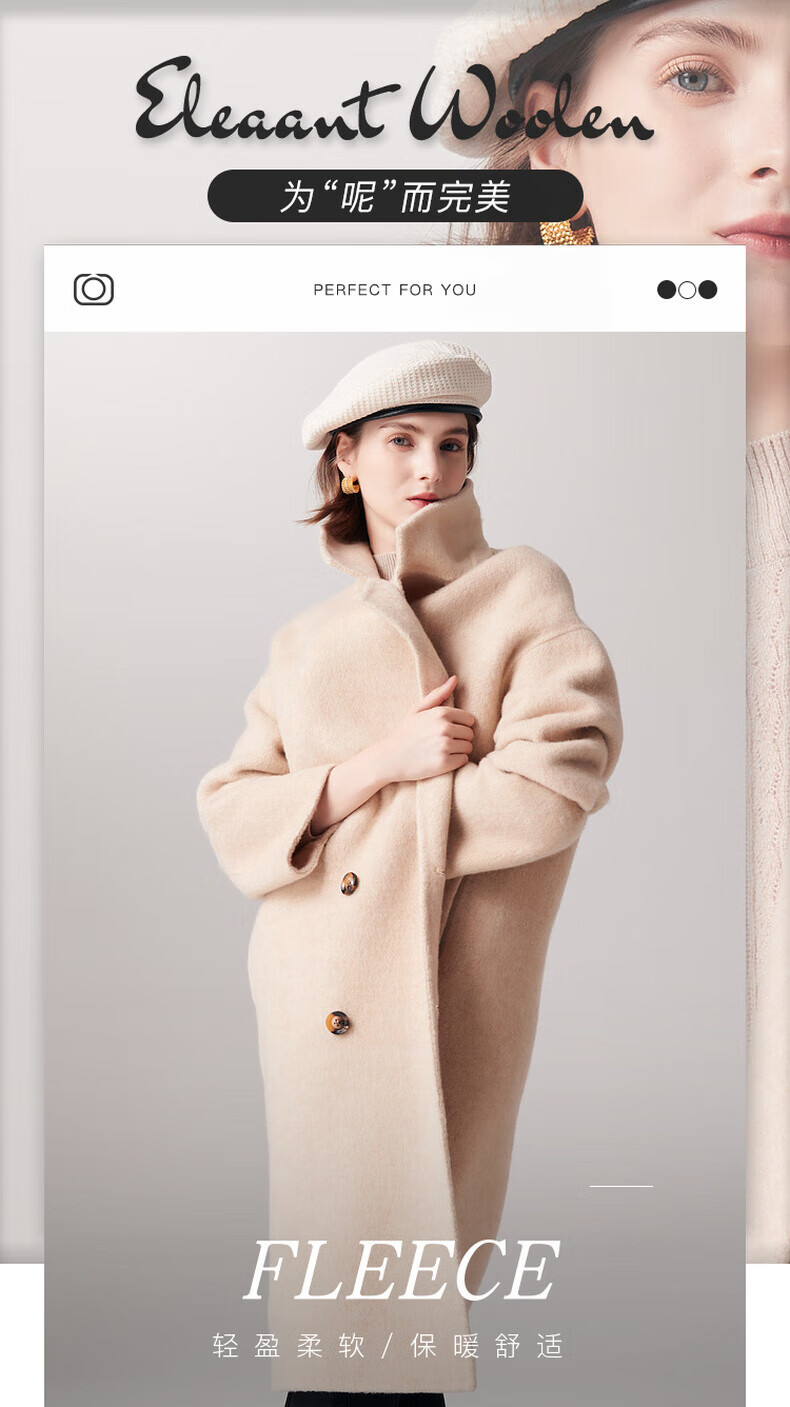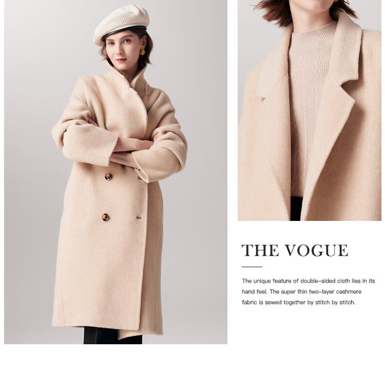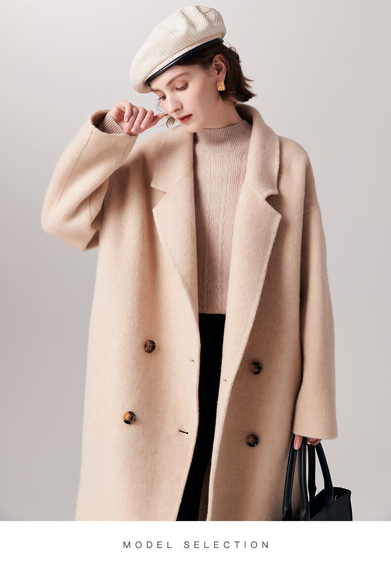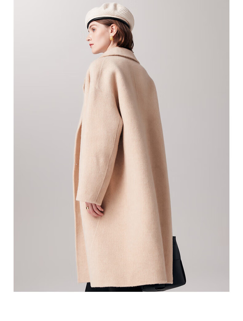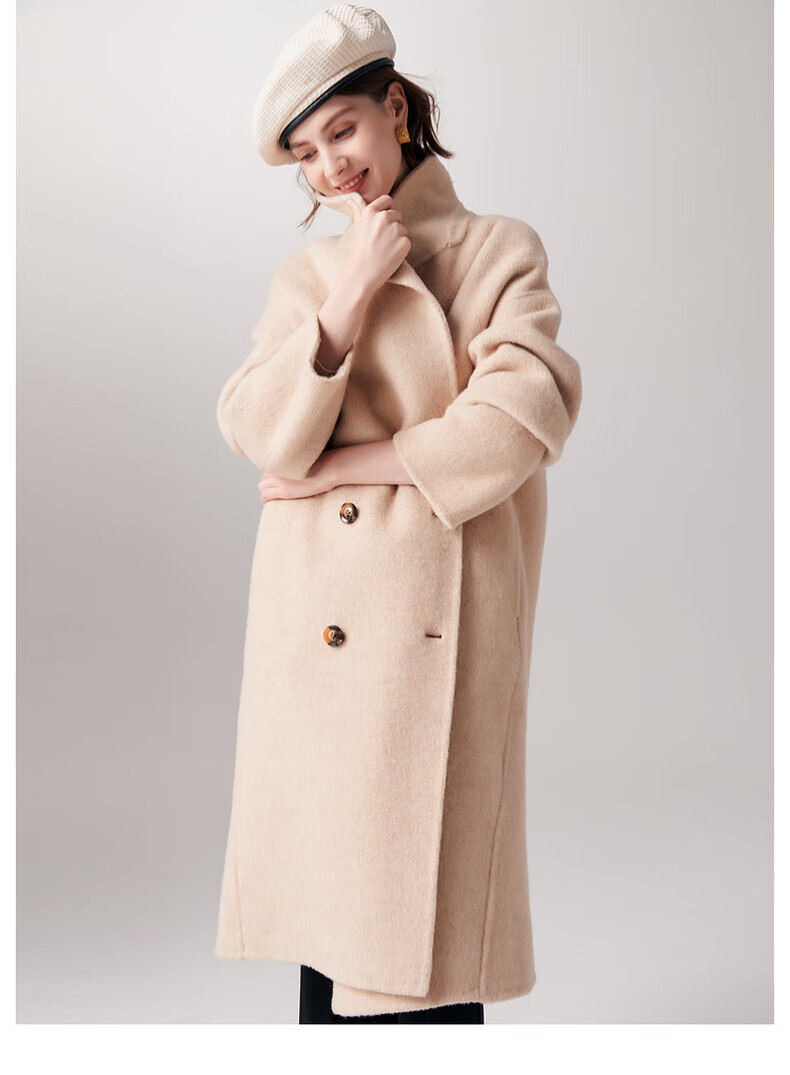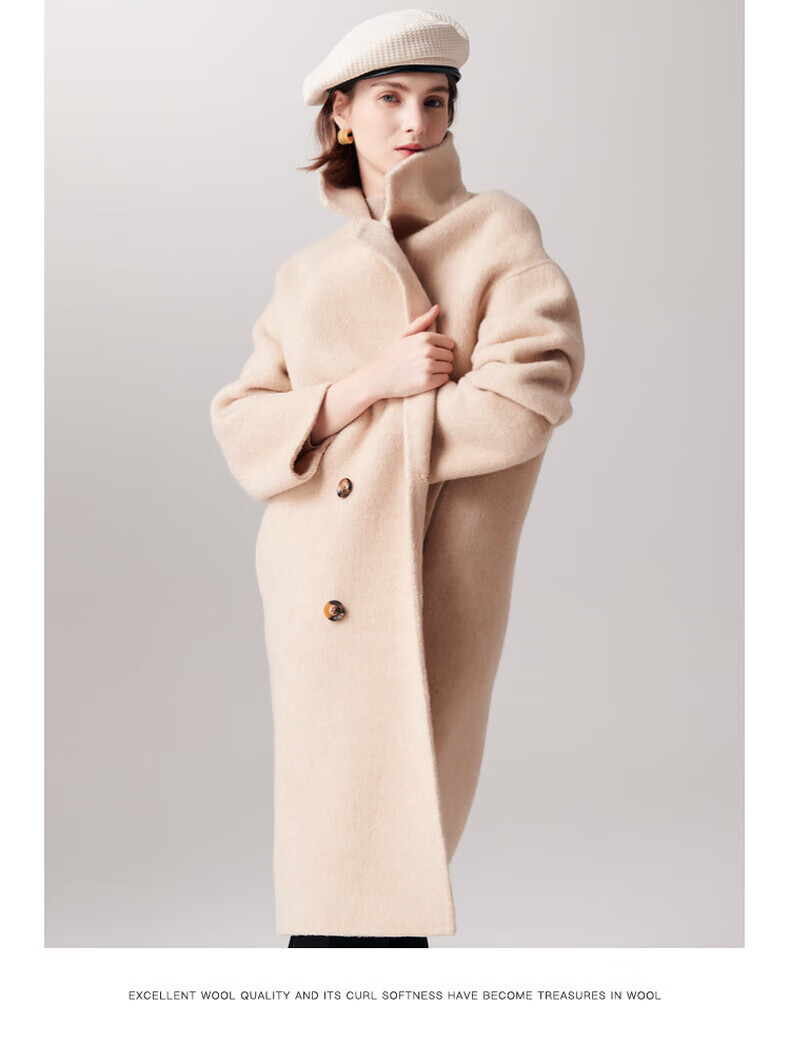 PALUOPO new autumn and winter woolen coat women's wool Korean style thick warm double-sided coat ET23018D beige L 165/88A