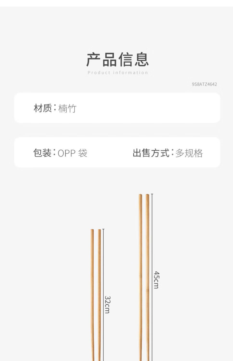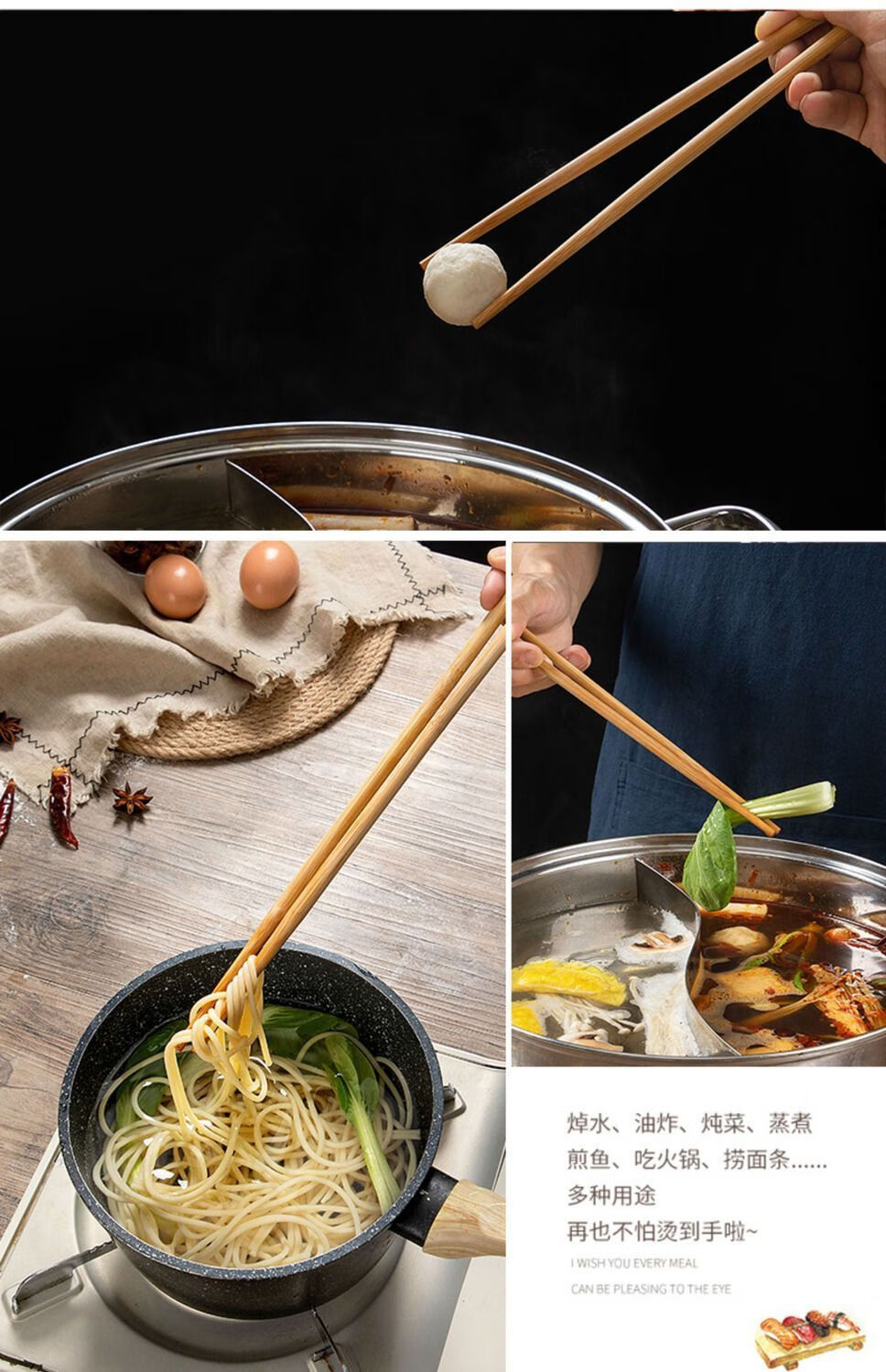 Beimuxing extended chopsticks, bamboo chopsticks for fishing noodles, special bamboo chopsticks for fishing rice noodles and fried dough sticks, high temperature resistant, non-slip and carbonized, 32CM, 1 pair