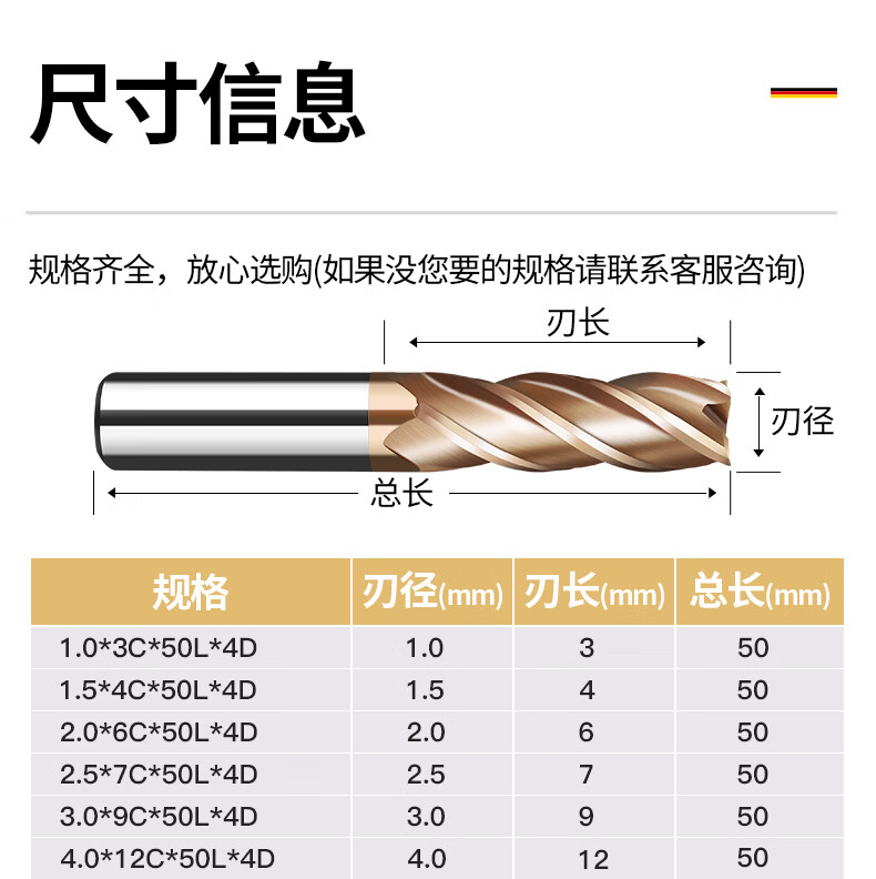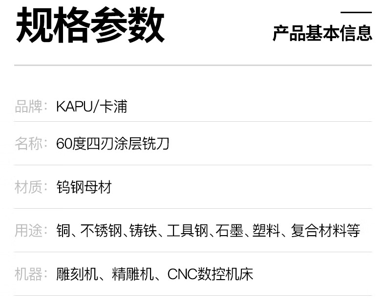 Kap Germany Kap 60 degree tungsten steel end mill gong knife stainless steel machining center CNC tool CNC alloy coating 4 blades 1.5*4*4.5*50