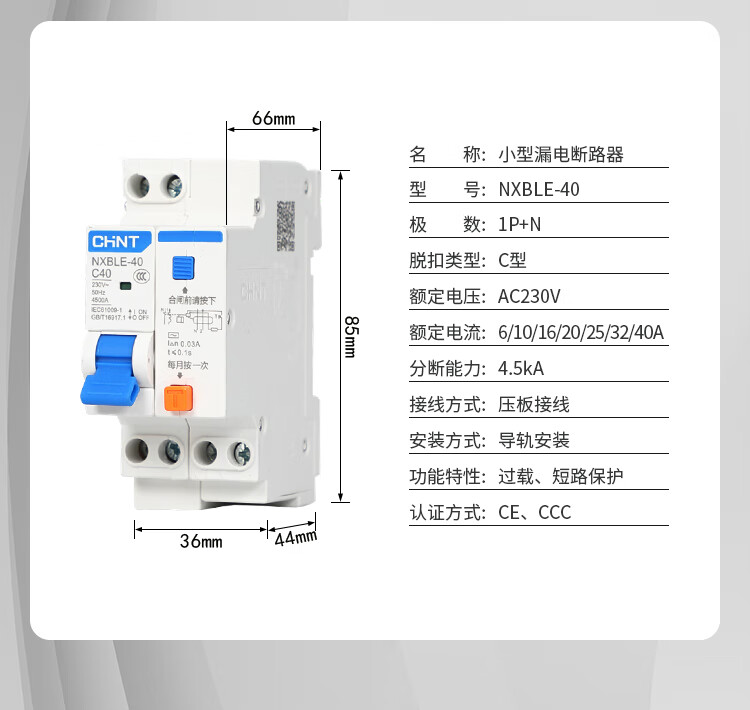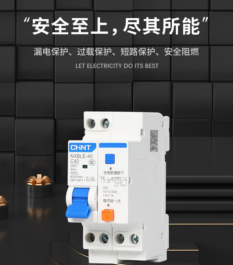 Chint (CHNT) Chint leakage circuit breaker NXBLE40 household leakage protection air leakage protection DZ267LE double in and double out 2P1PN 16A