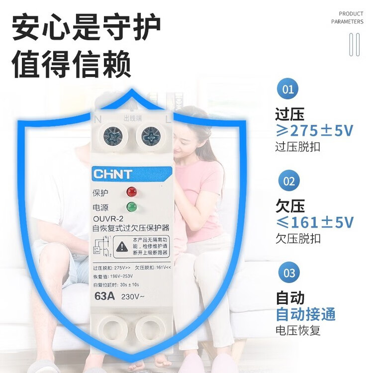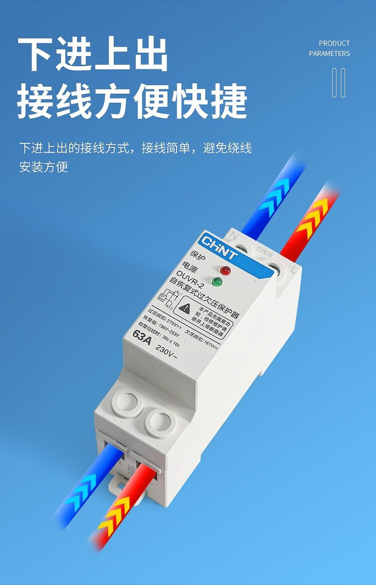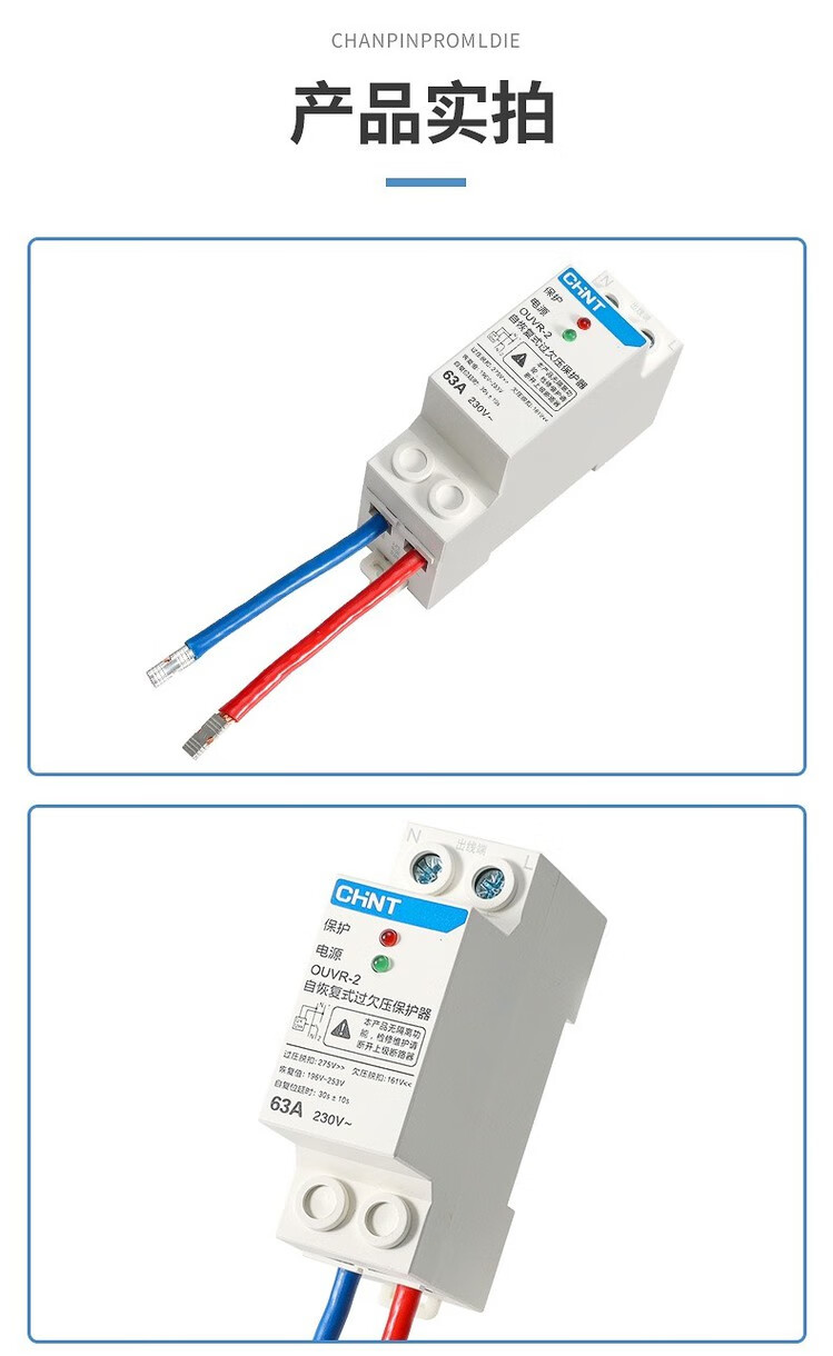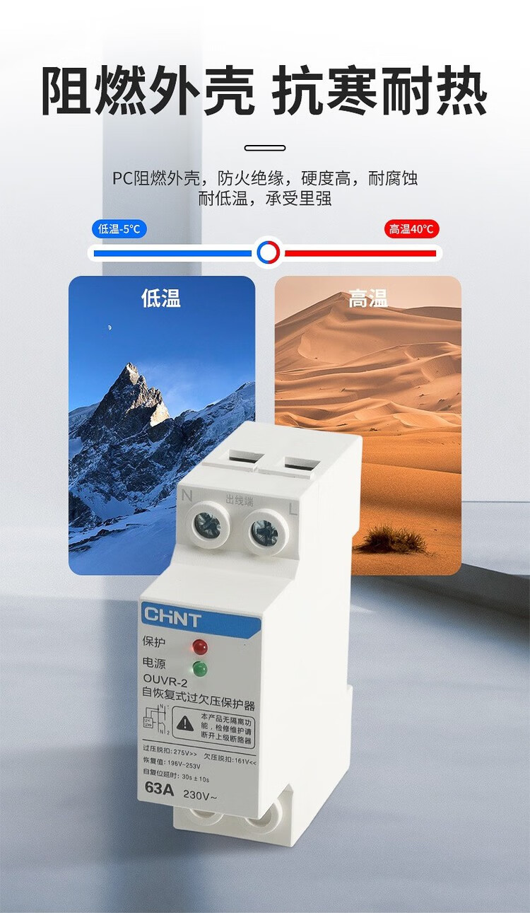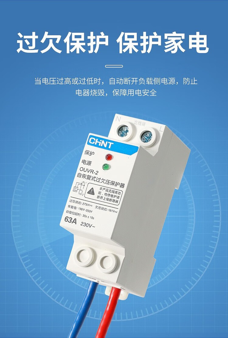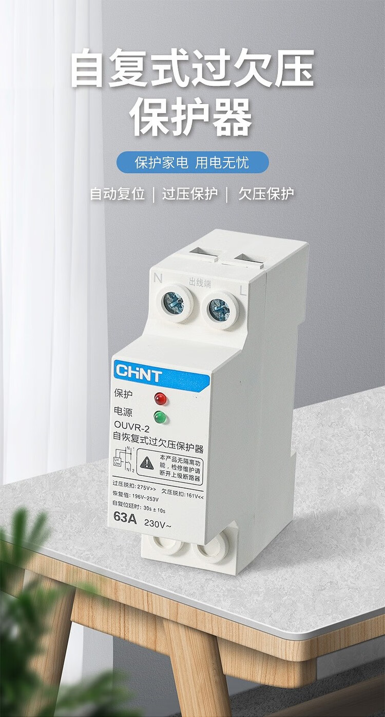 Chint (CHNT) Chint over- and under-voltage protector OUVR2 self-restoring delay switch 1PN bottom in and out household 40A63A 40A