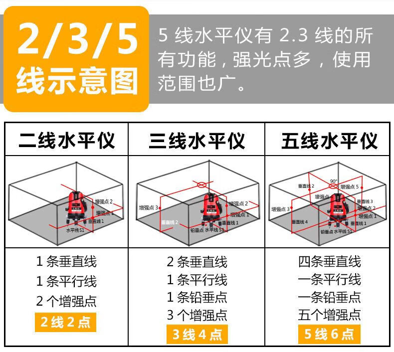 FANCYCHIC indoor red light level meter laser 2-line 3-line 5-line high-precision automatic line casting instrument red light 2 lines standard