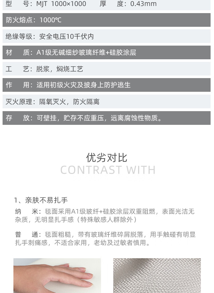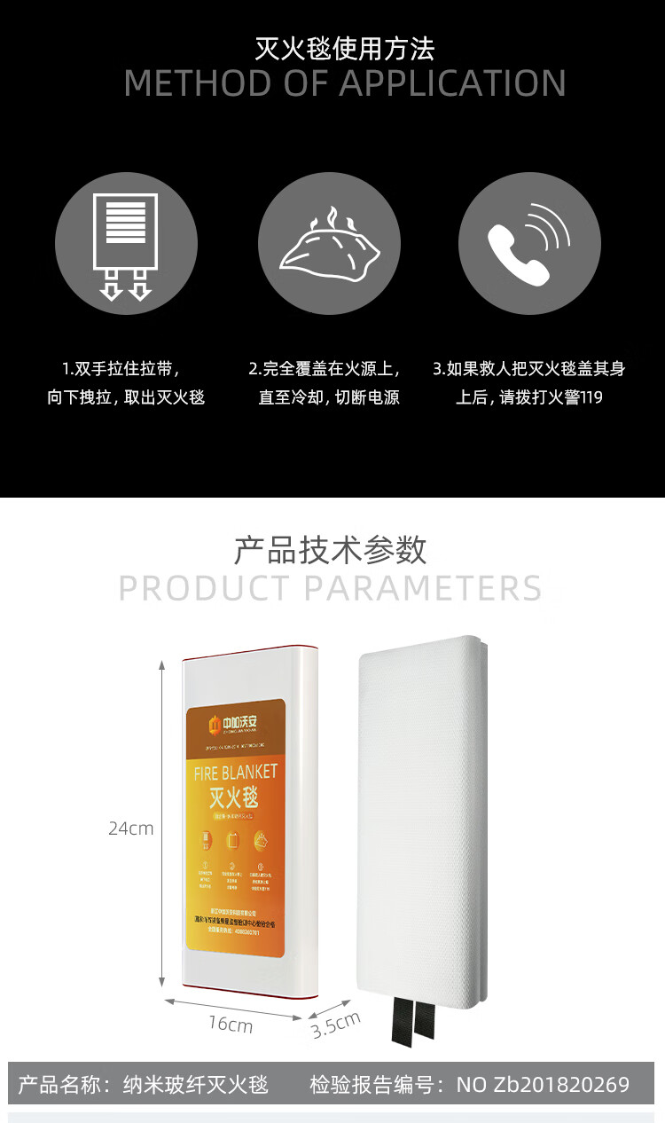 Nano glass fiber fire blanket, household anti-hand-prick fire protection national standard CE certified kitchen fire blanket, flame retardant commercial, upgraded platinum version nano glass fiber