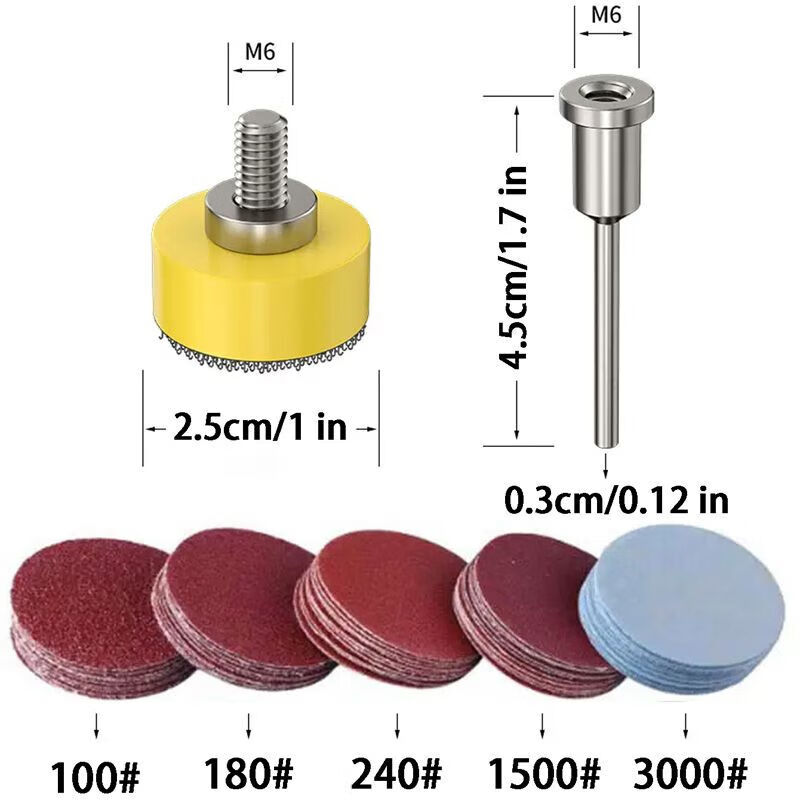 Ye Yu 1-inch self-adhesive disc sandpaper set electric hand drill dental machine self-adhesive sand disc back velvet disc flocked sandpaper sheet 100 pieces 1-inch sandpaper + 1-inch suction cup with 3mm rod