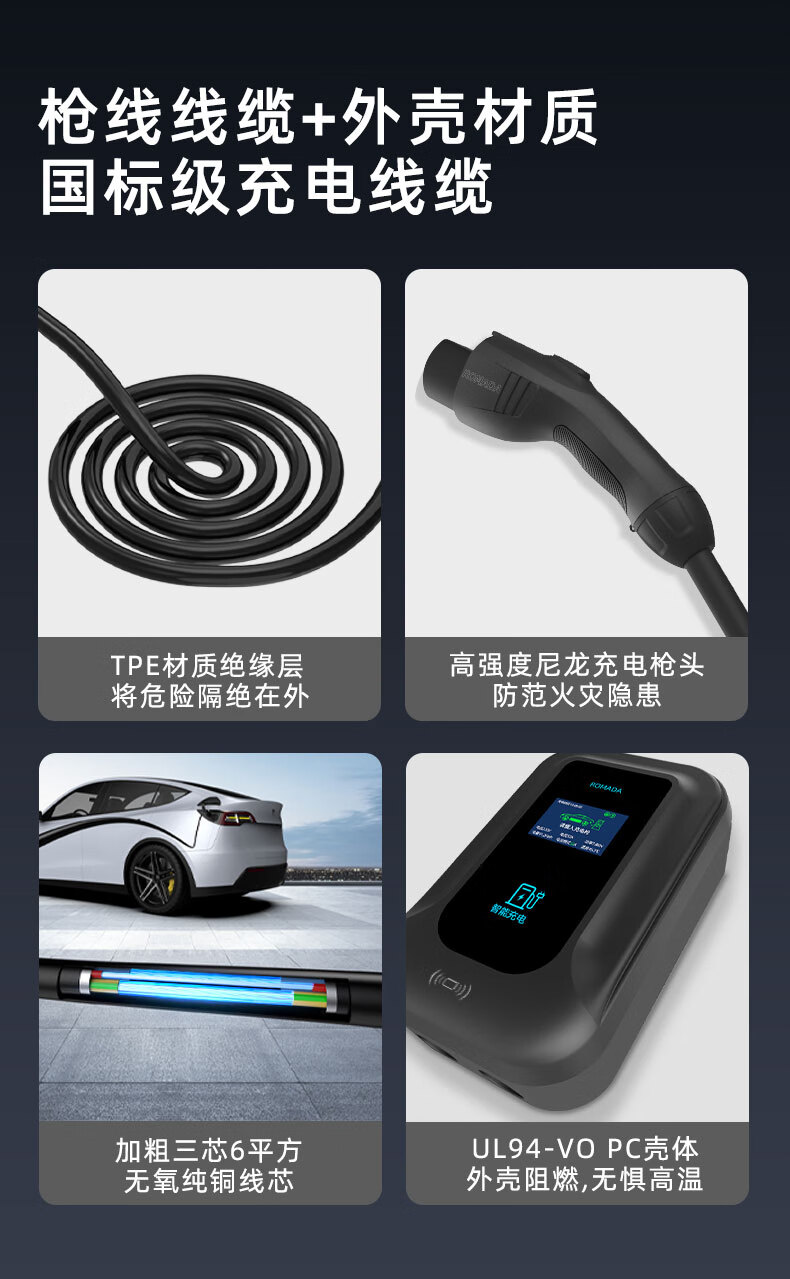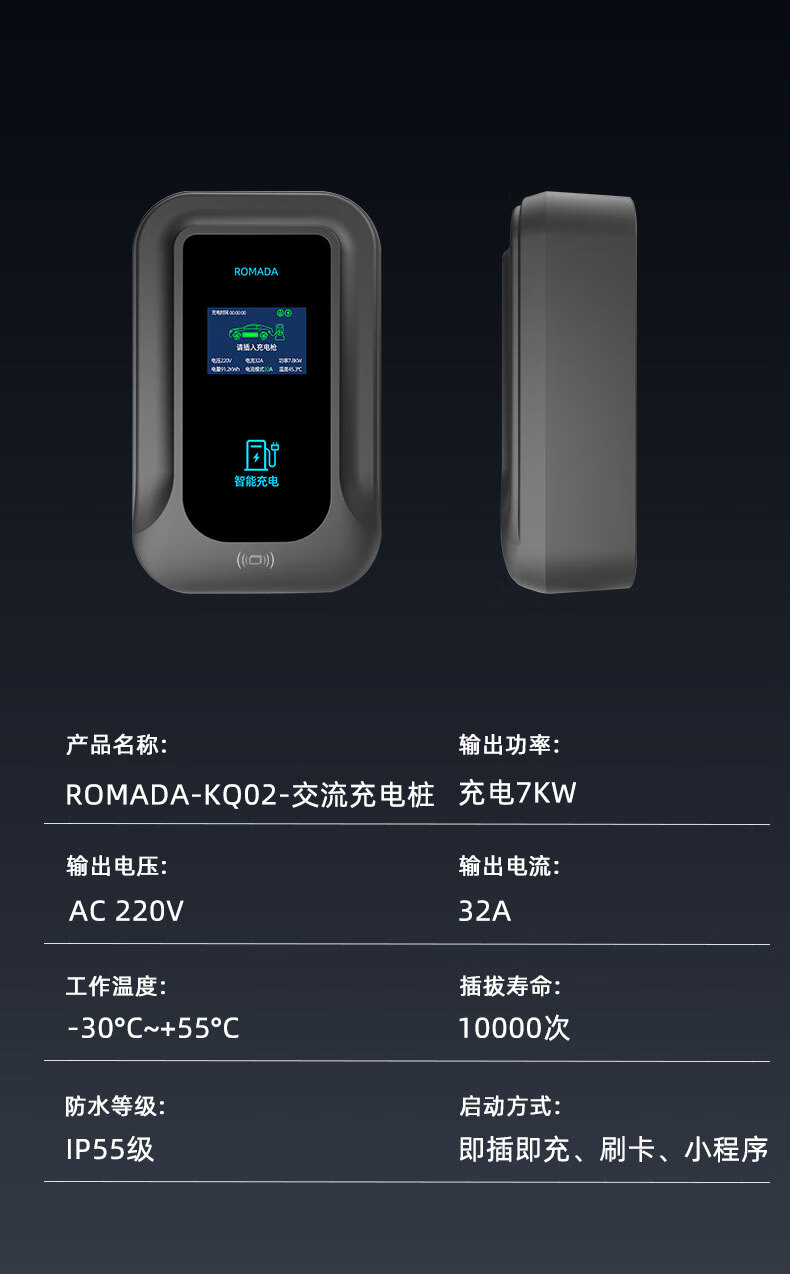 ROMADA V1 L charging pile 7KW household 220v national standard seven holes 32A new energy fast charging AC charging pile Dana V1 L 7KW instant charging + LED display 10 meters