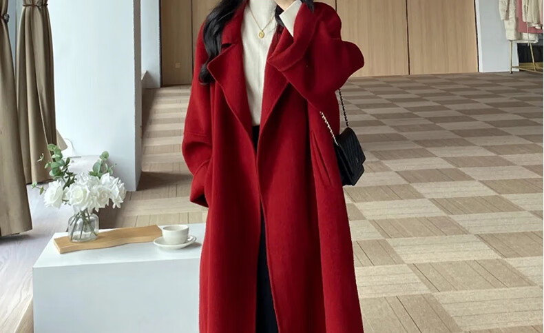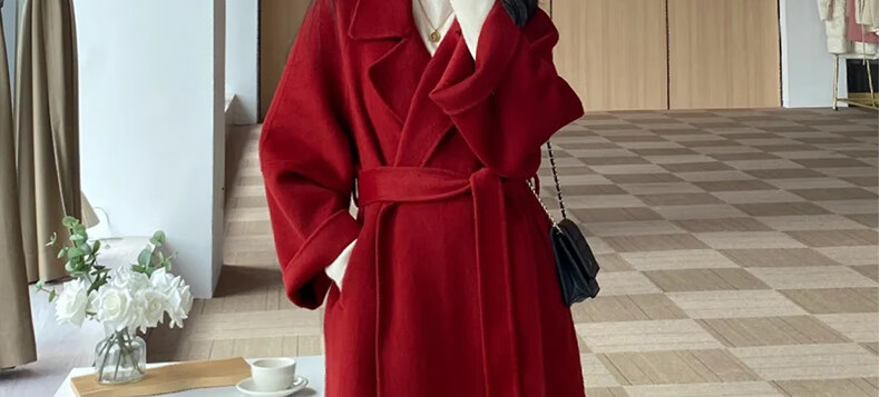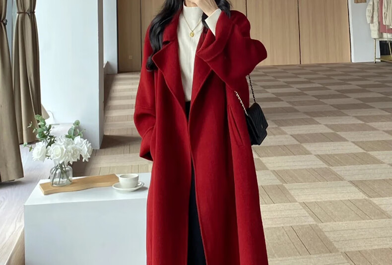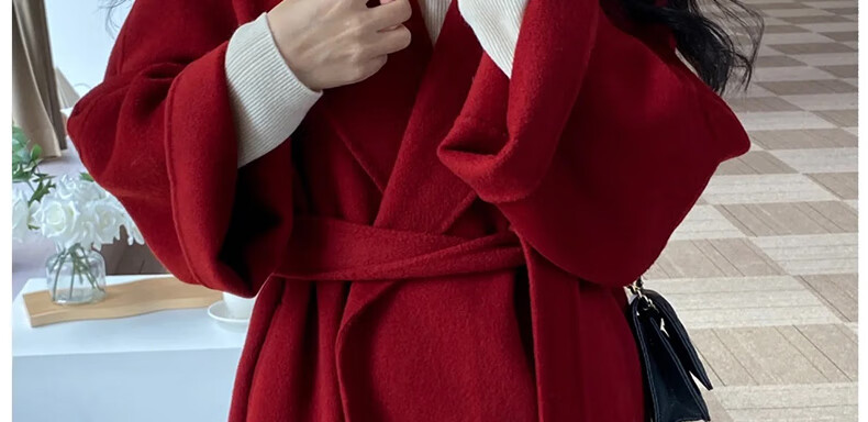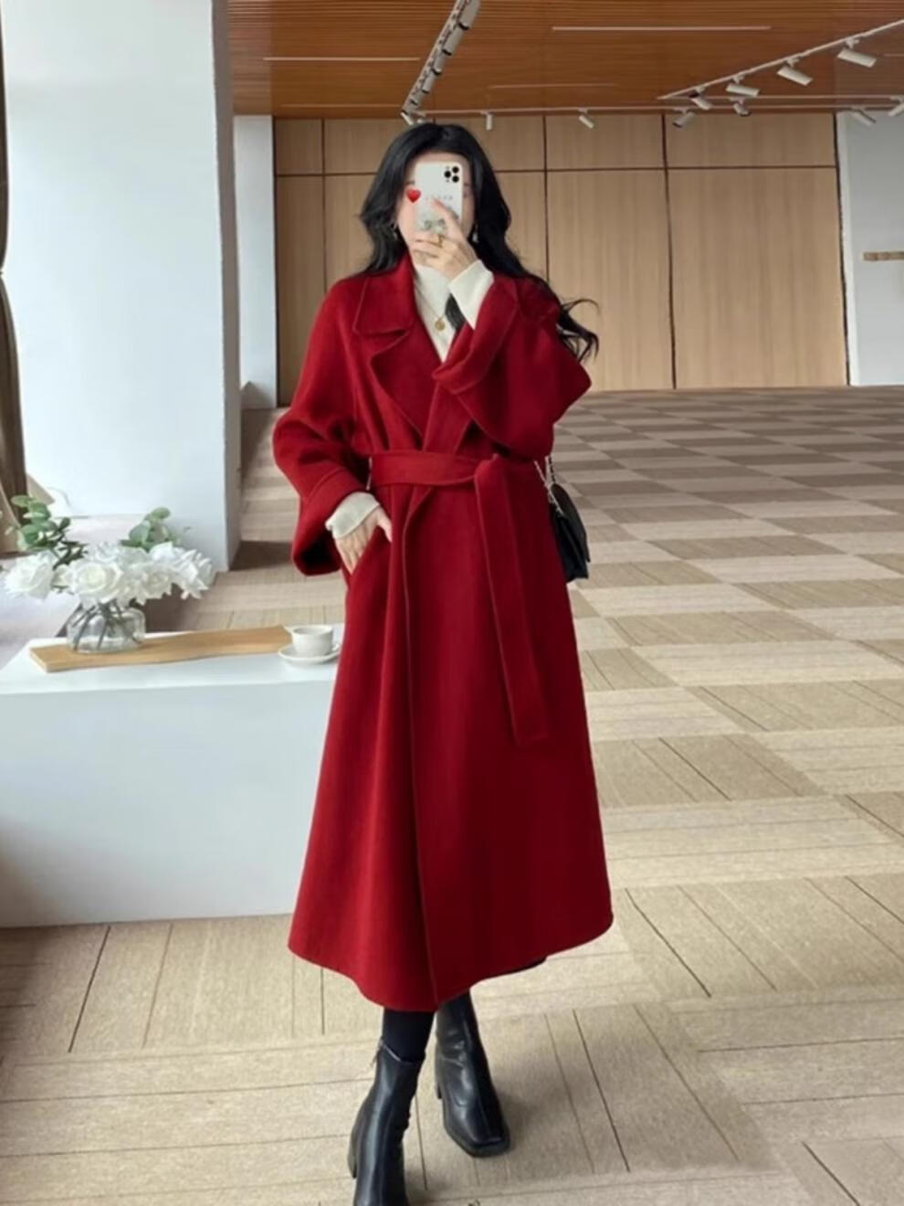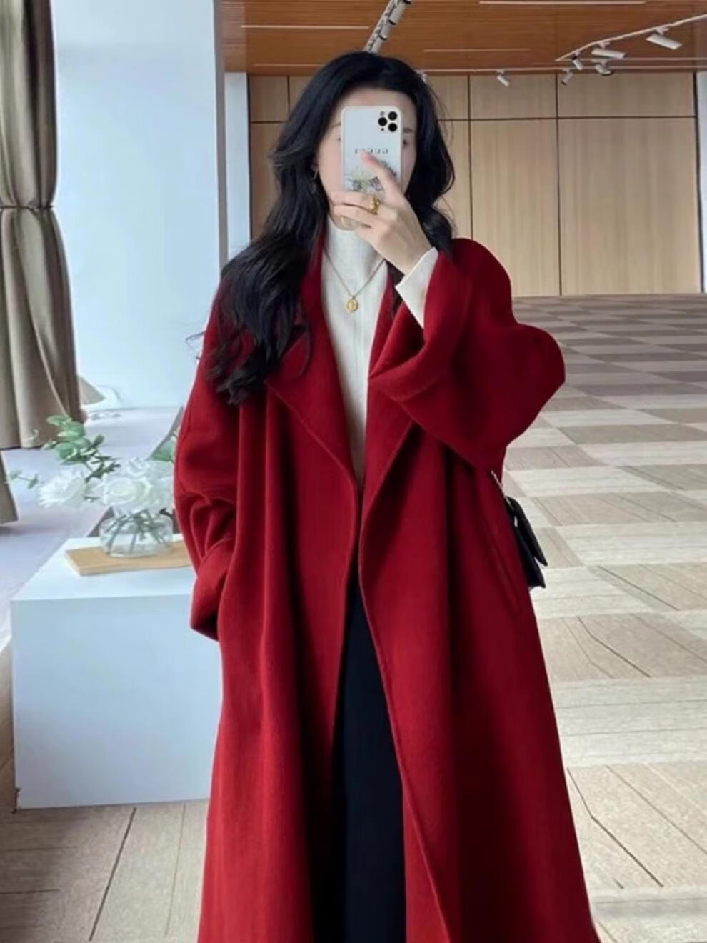 Pierre Cardin Sicilian red double-sided cashmere coat for women petite 2025 autumn and winter new loose-feeling woolen coat red XL