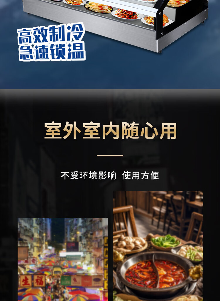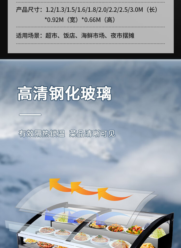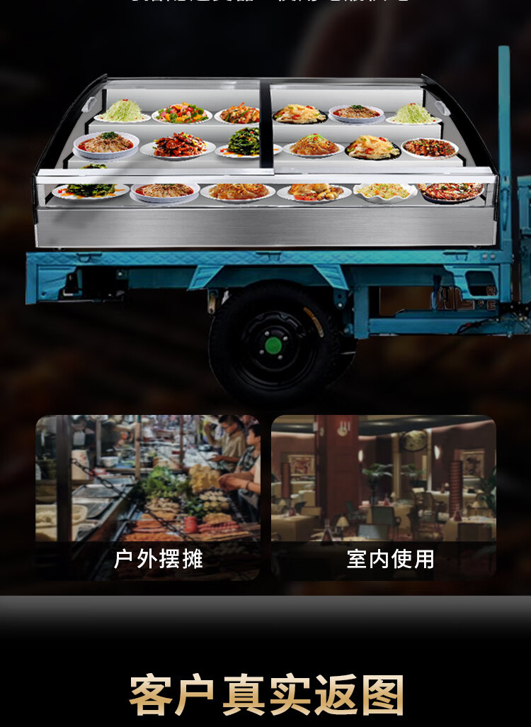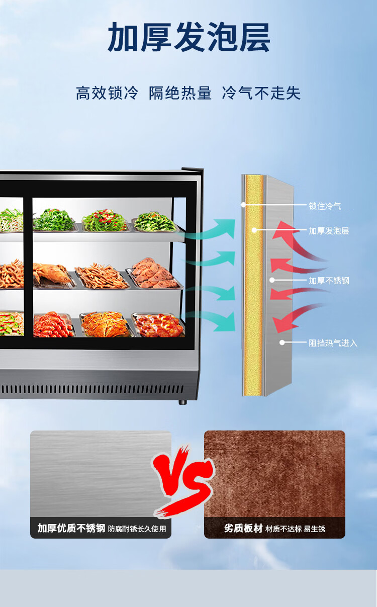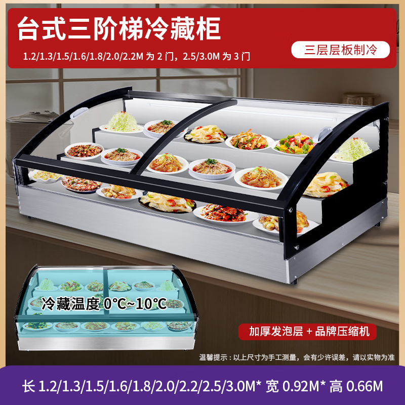 Frozen three-layer stepped refrigerated fresh-keeping display cabinet mobile stall tricycle fried skewers barbecue skewers a la carte braised dishes 1.2 meters ice counter type integrated refrigerator small 1.2 length * 0.92 width * 0.66 height / meter (refrigerated model, national joint guarantee quality leading