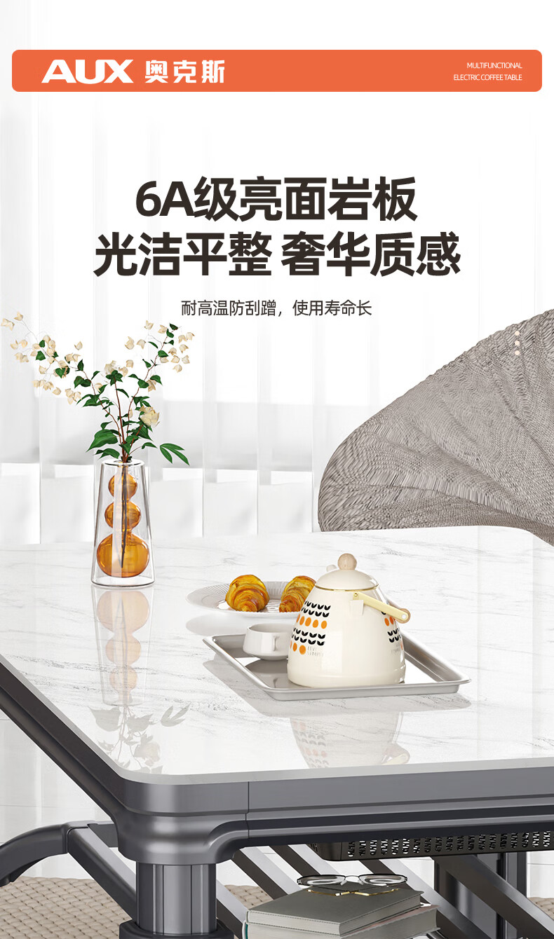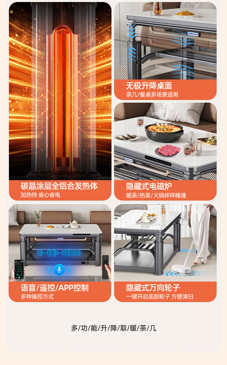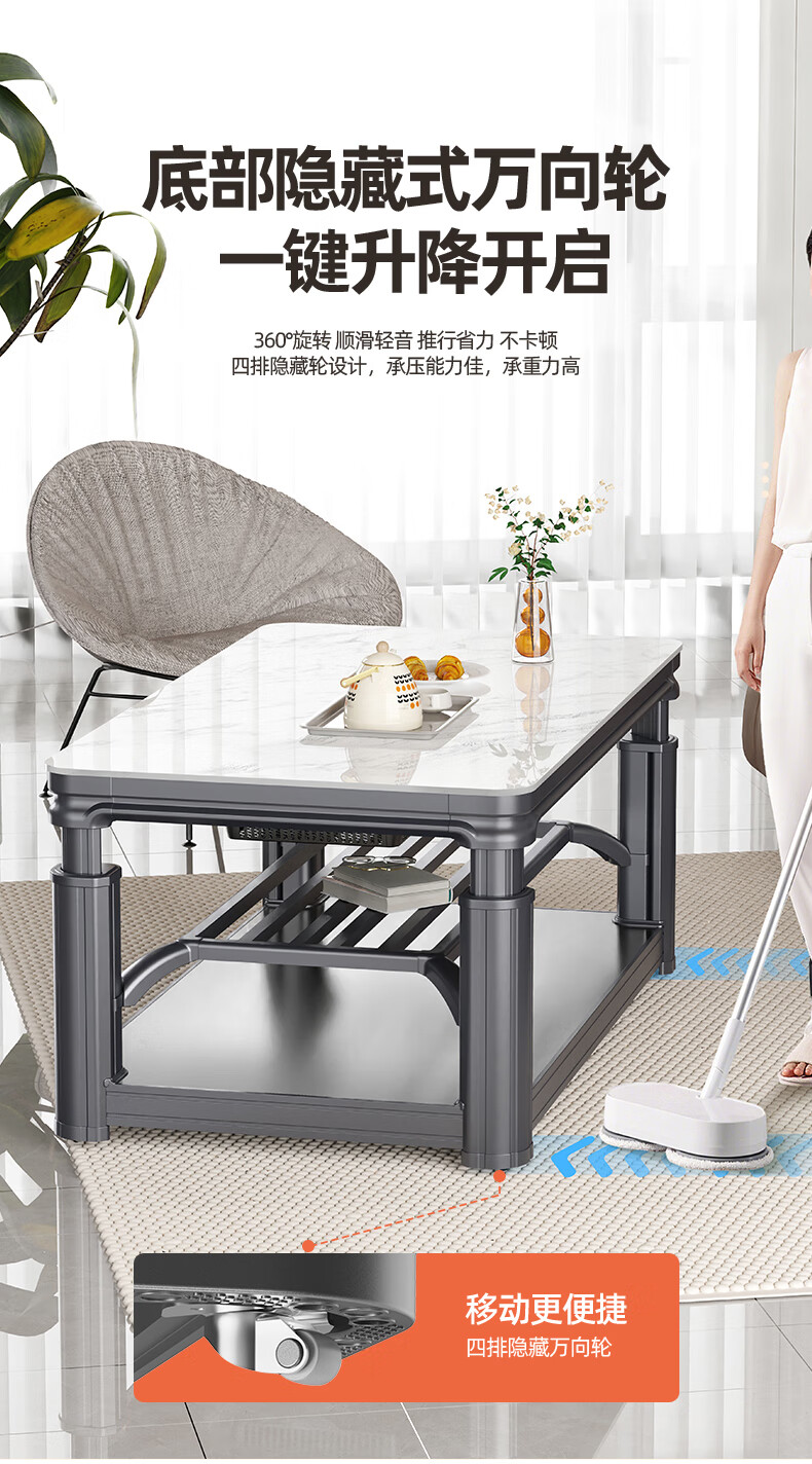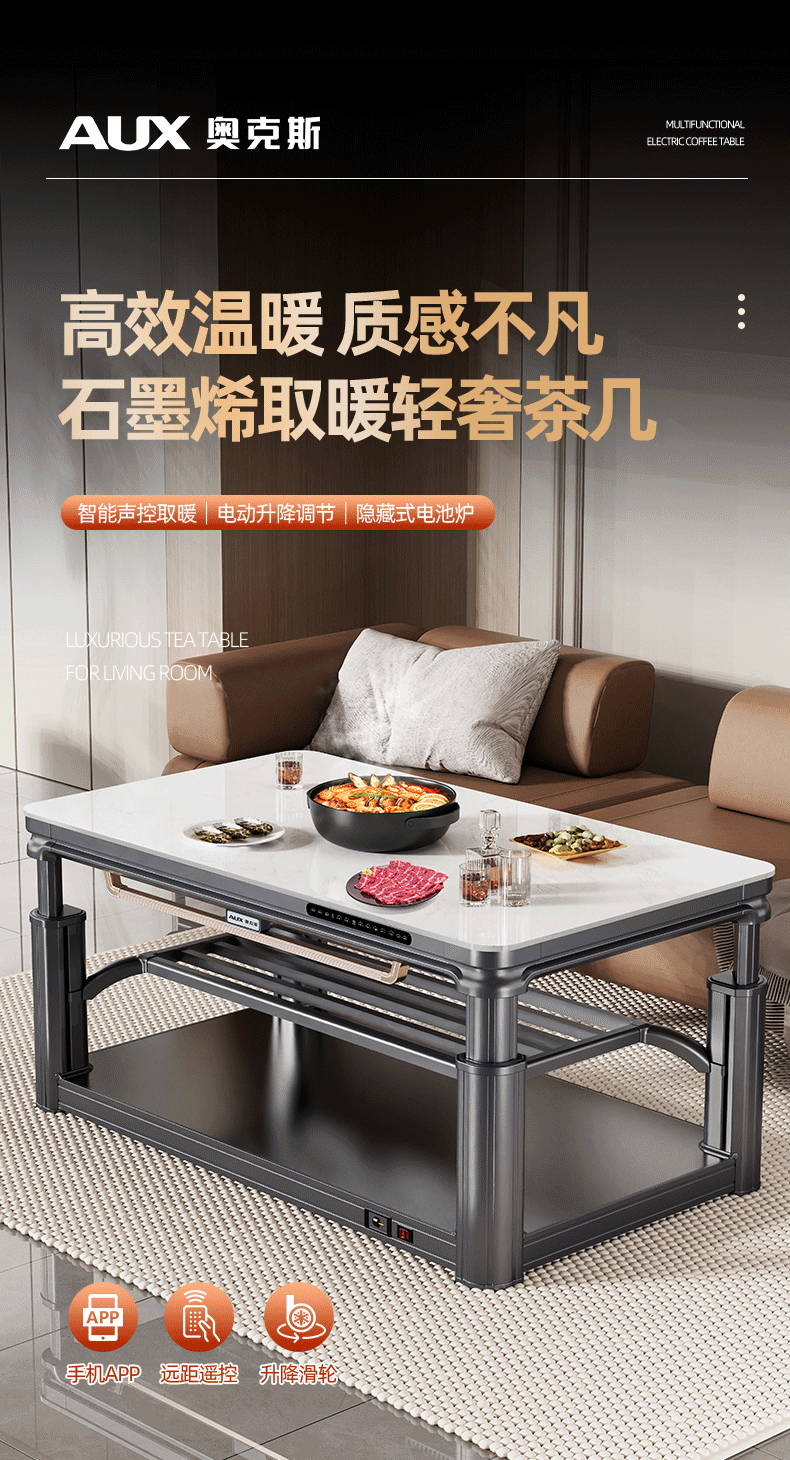 AUX 2025 New Electric Heating Table Heating Table Home Rectangular Fire Table Dining Table Integrated Lift Coffee Table Living Room Upper and Lower Heating Electric Heating Stove Coffee Table Indoor Removable Coffee Table Fashion/Titanium Gray 1.2 Meter No Cooking Voice Double Lift + Zipper Table Cover