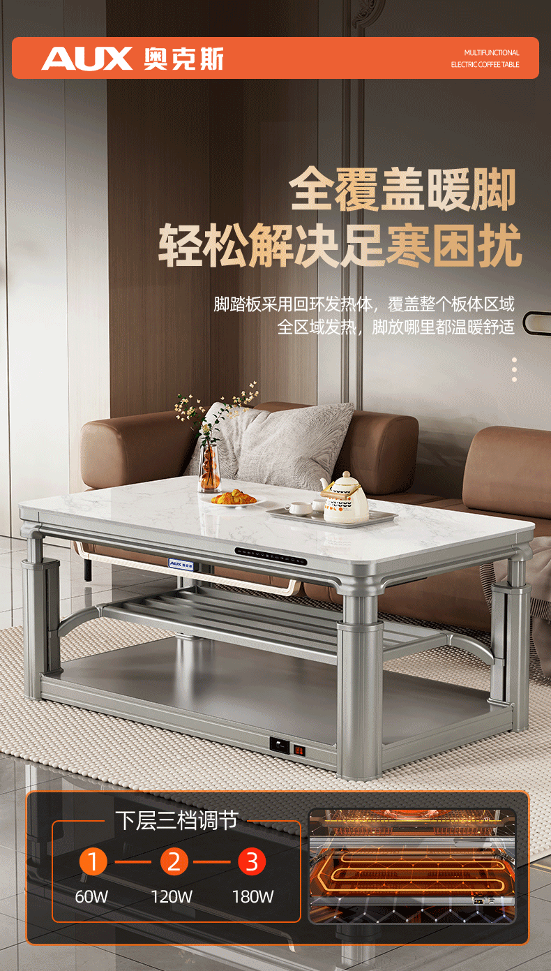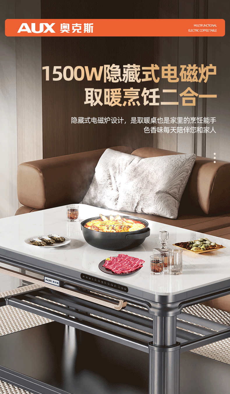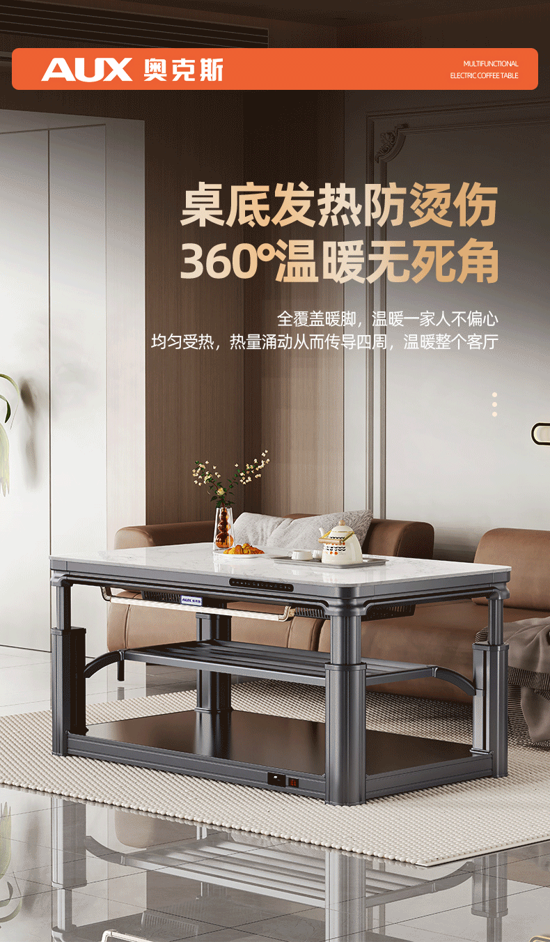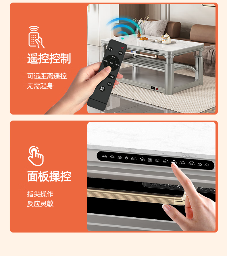 AUX 2025 New Electric Heating Table Heating Table Home Rectangular Fire Table Dining Table Integrated Lift Coffee Table Living Room Upper and Lower Heating Electric Heating Stove Coffee Table Indoor Removable Coffee Table Fashion/Titanium Gray 1.2 Meter No Cooking Voice Double Lift + Zipper Table Cover