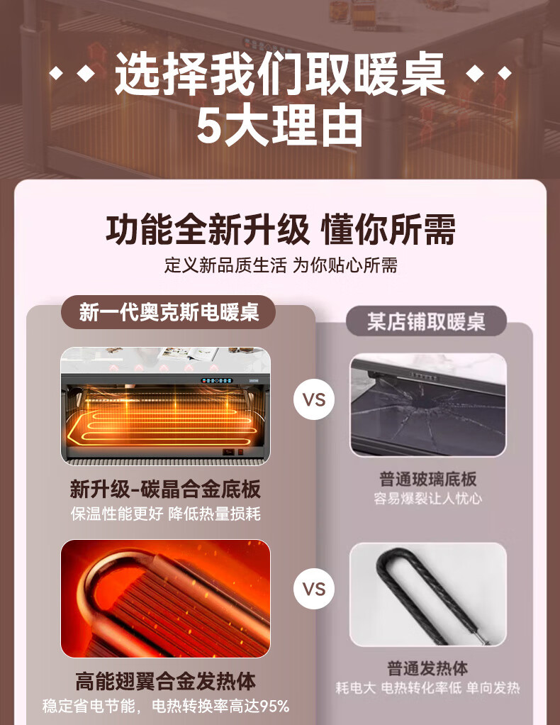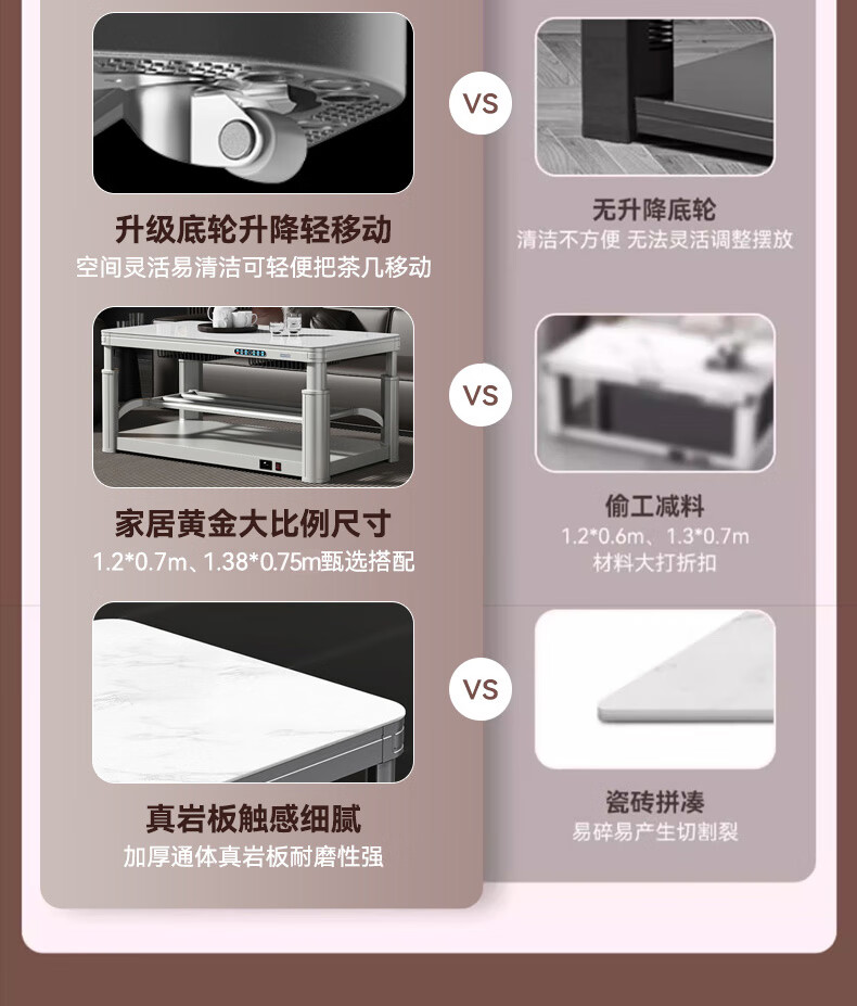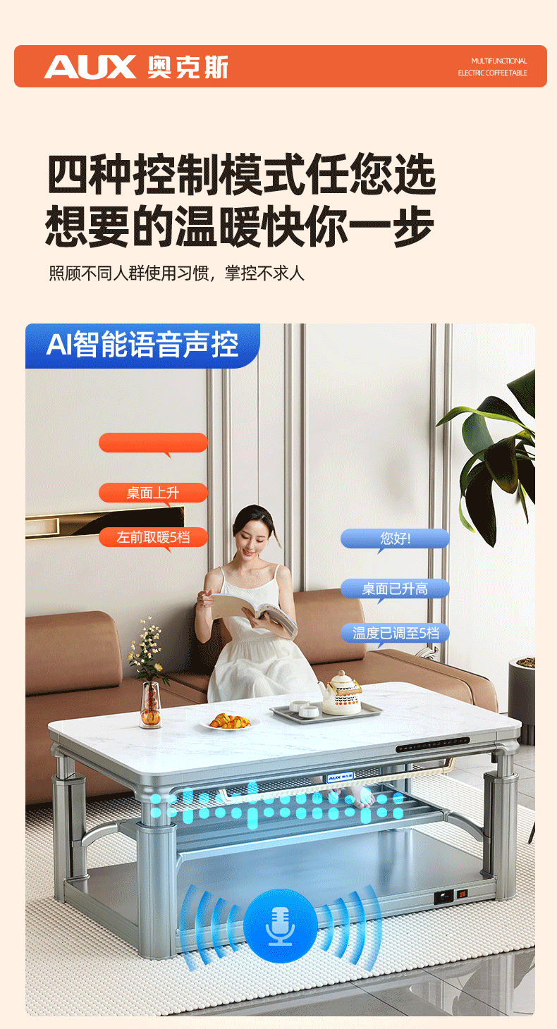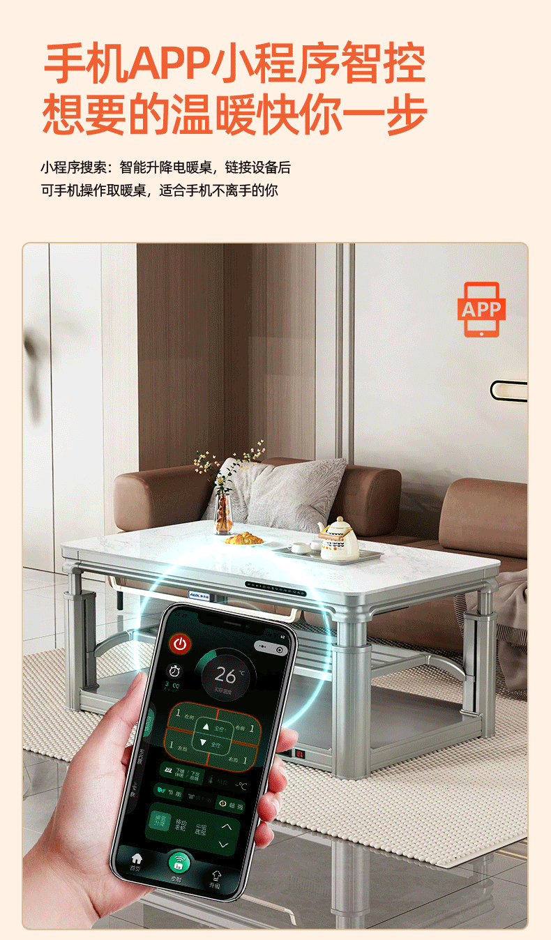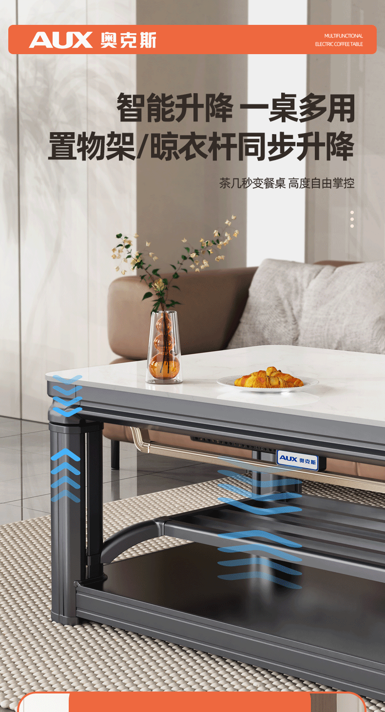 AUX 2025 New Electric Heating Table Heating Table Home Rectangular Fire Table Dining Table Integrated Lift Coffee Table Living Room Upper and Lower Heating Electric Heating Stove Coffee Table Indoor Removable Coffee Table Fashion/Titanium Gray 1.2 Meter No Cooking Voice Double Lift + Zipper Table Cover