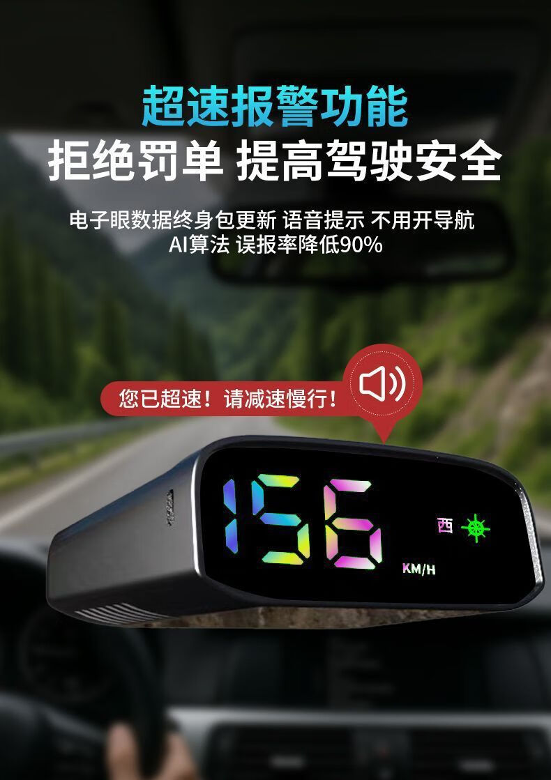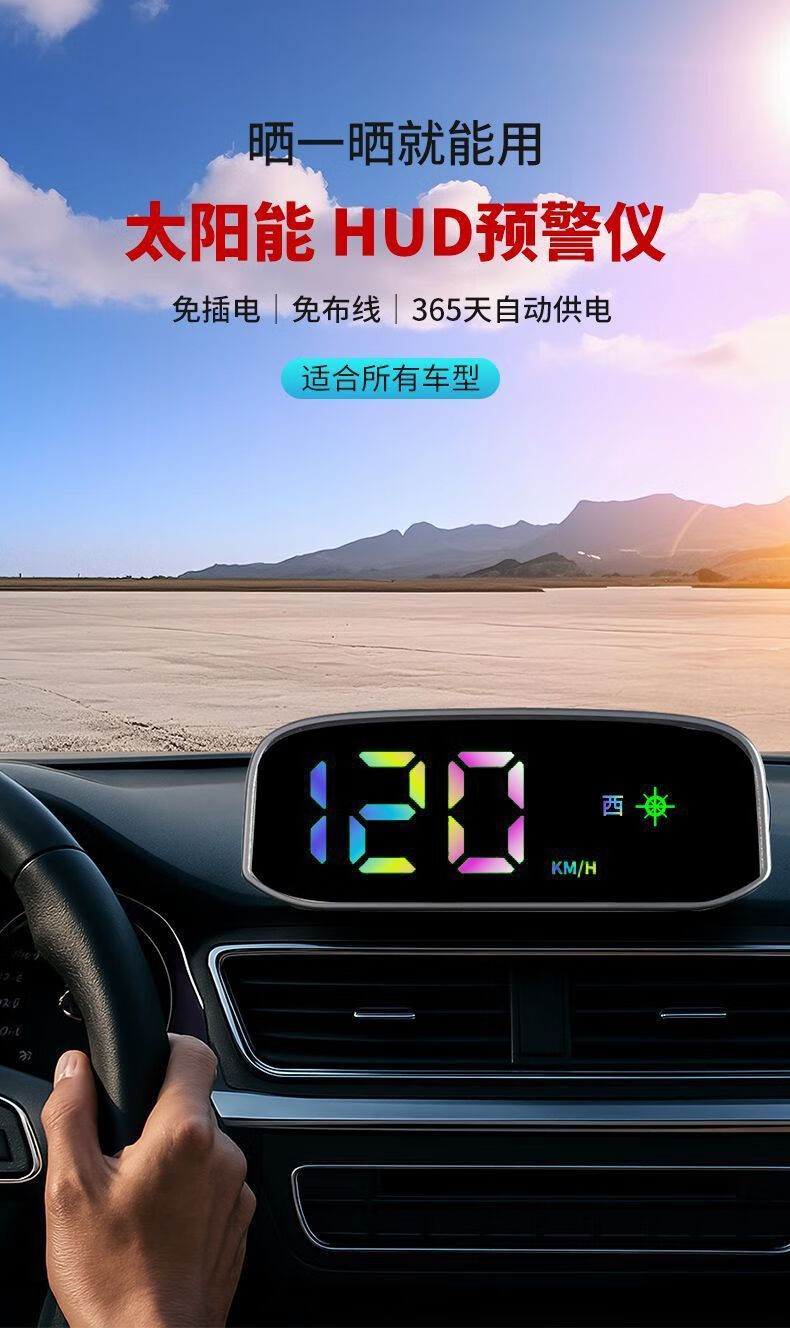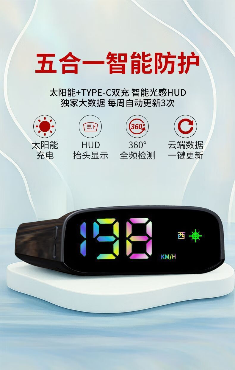 New solar-powered wireless electronic dog speed detector Beidou wireless radar safety warning device HUD head-up display SN9 - ready to use after power-on