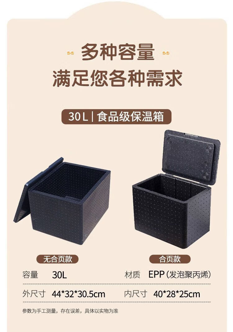 EPP food grade insulated box foam turnover box food preservation box Meituan takeaway food delivery stall insulation 30L black bare (box)