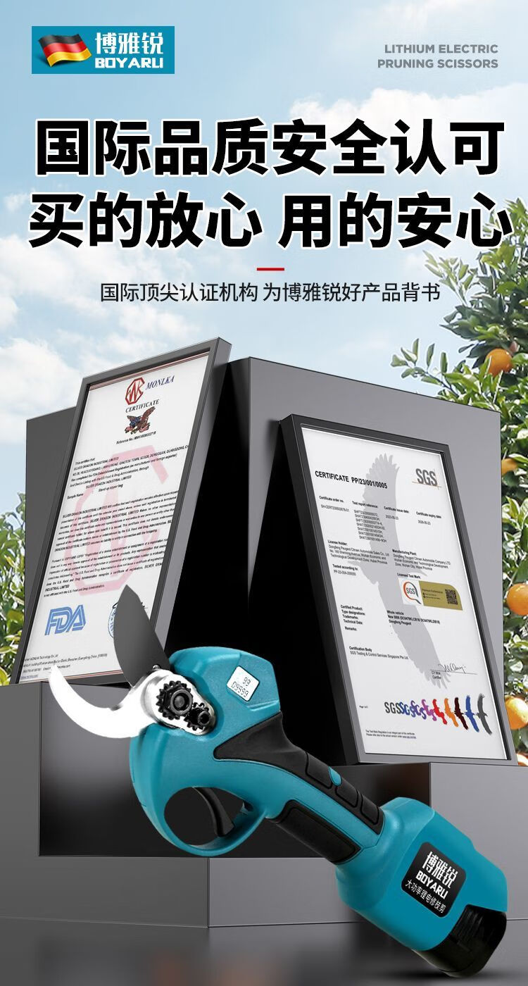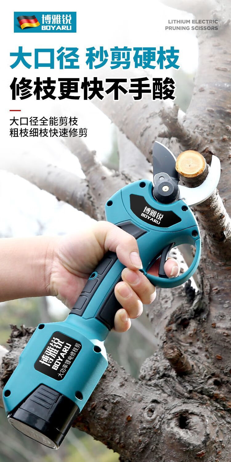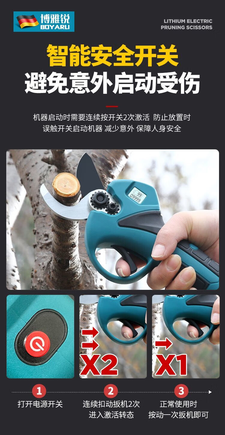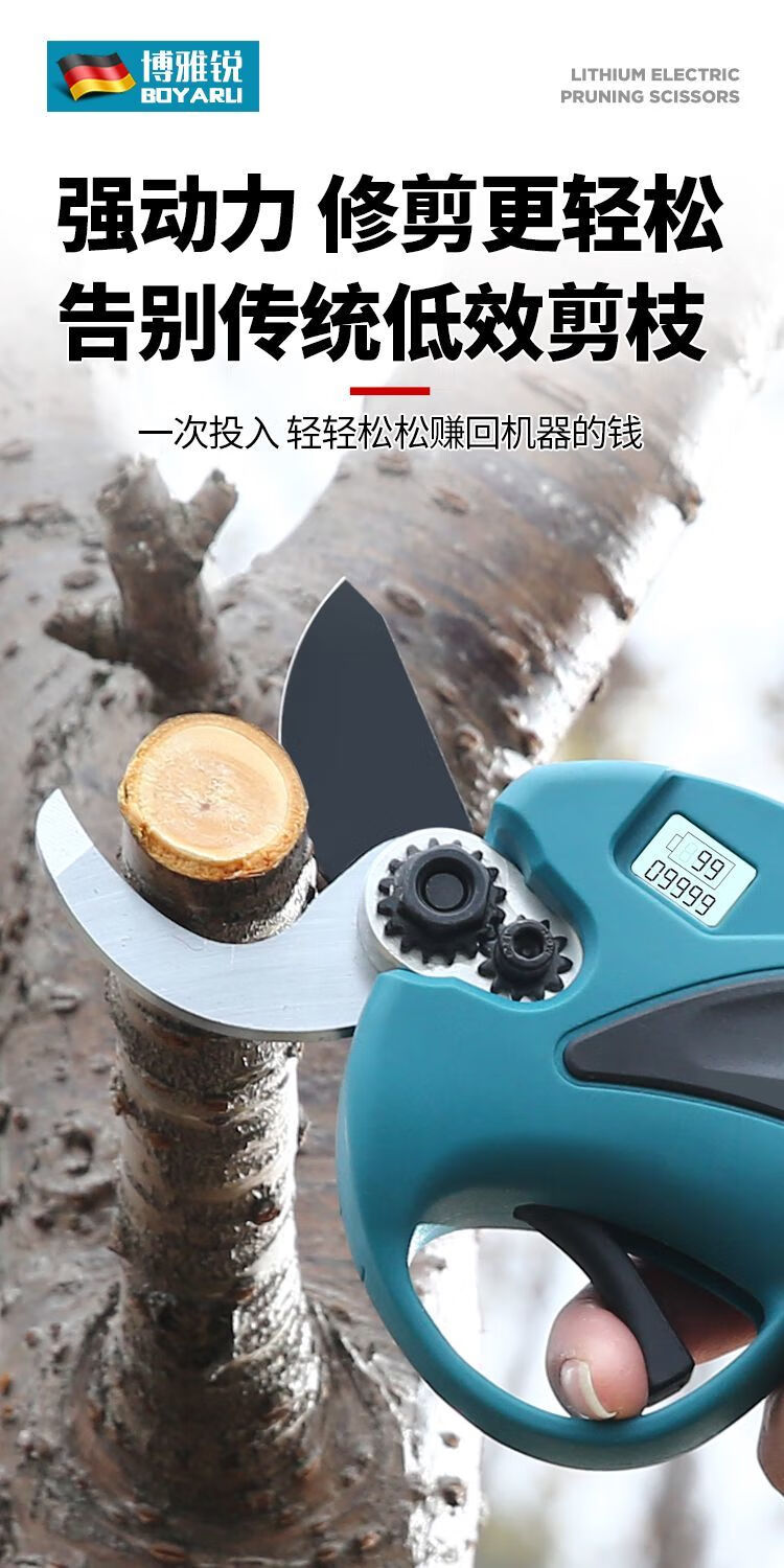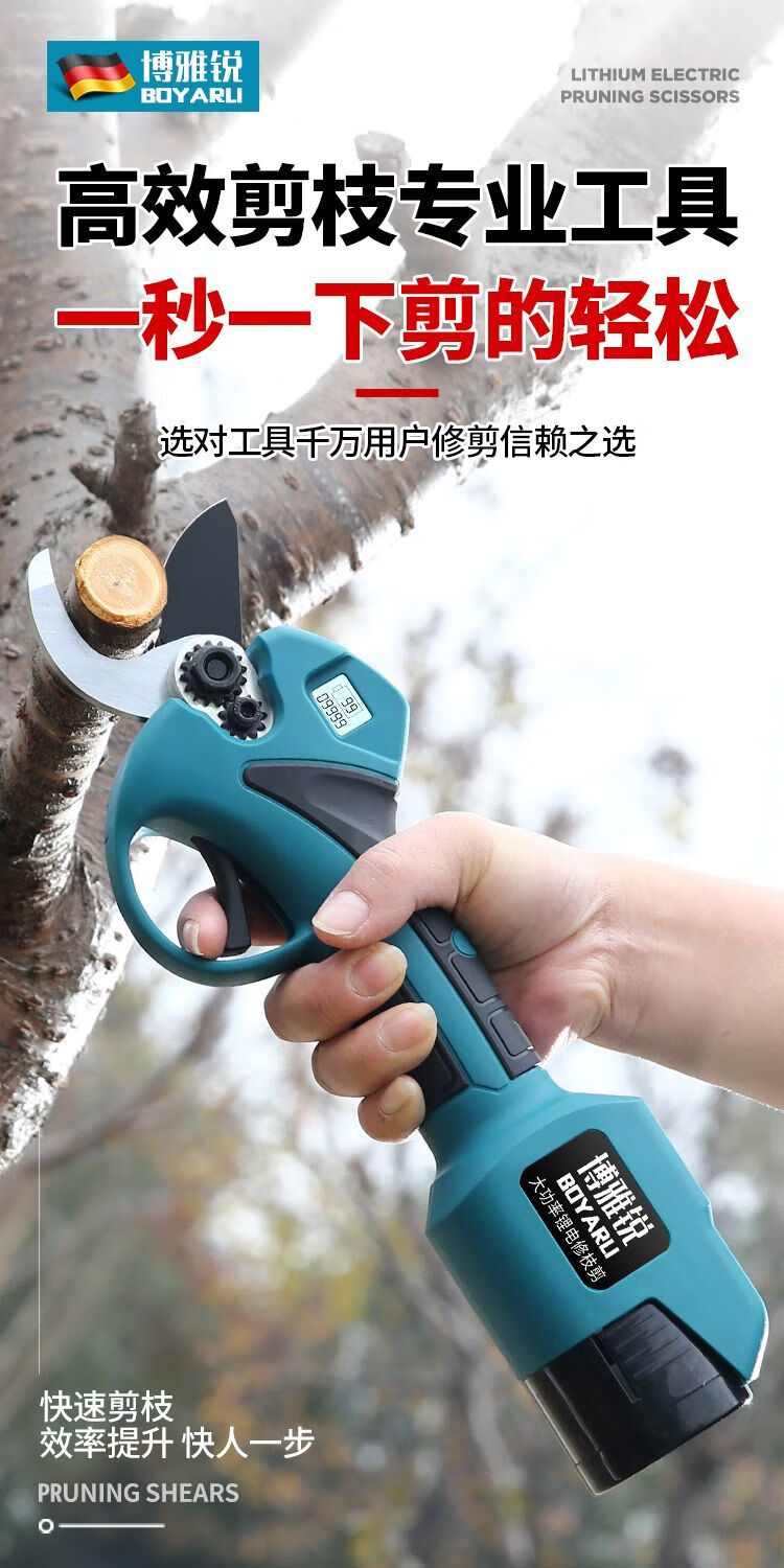 Dongcheng Lightweight and labor-saving German Boyarui high-power electric pruning shears lithium-ion scissors for fruit trees 4.0 mobile model two batteries and one charge +