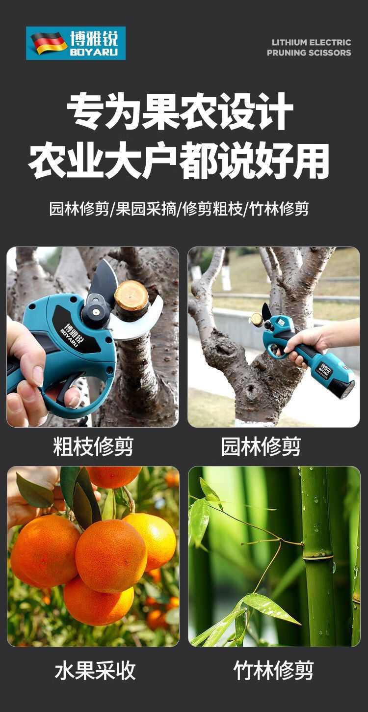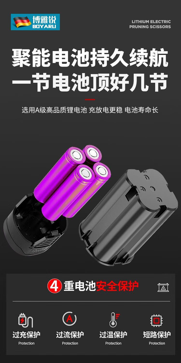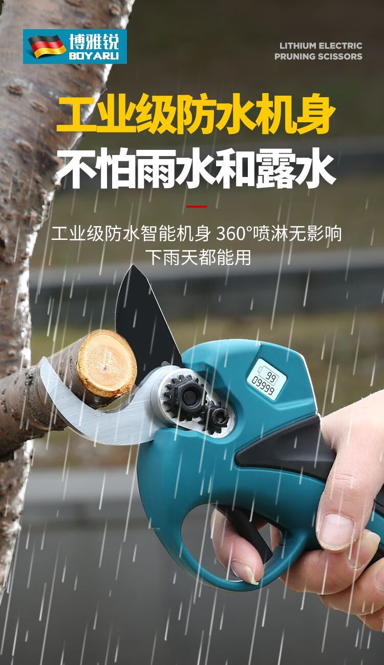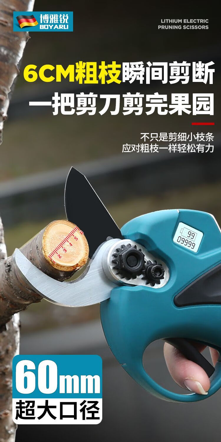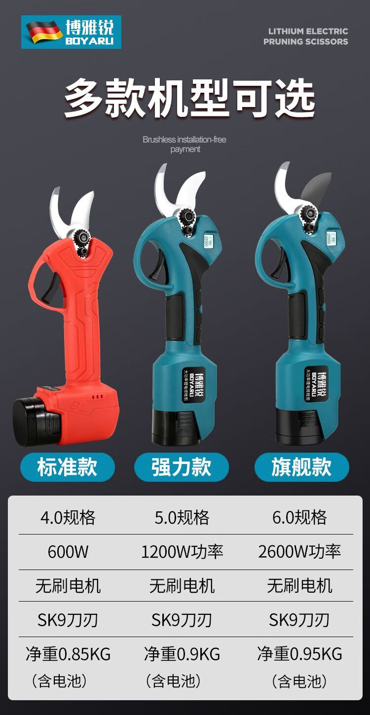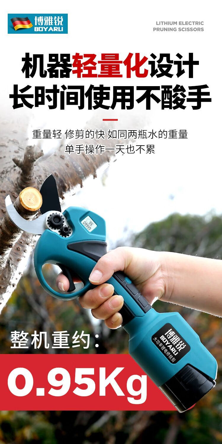 Dongcheng Lightweight and labor-saving German Boyarui high-power electric pruning shears lithium-ion scissors for fruit trees 4.0 mobile model two batteries and one charge +