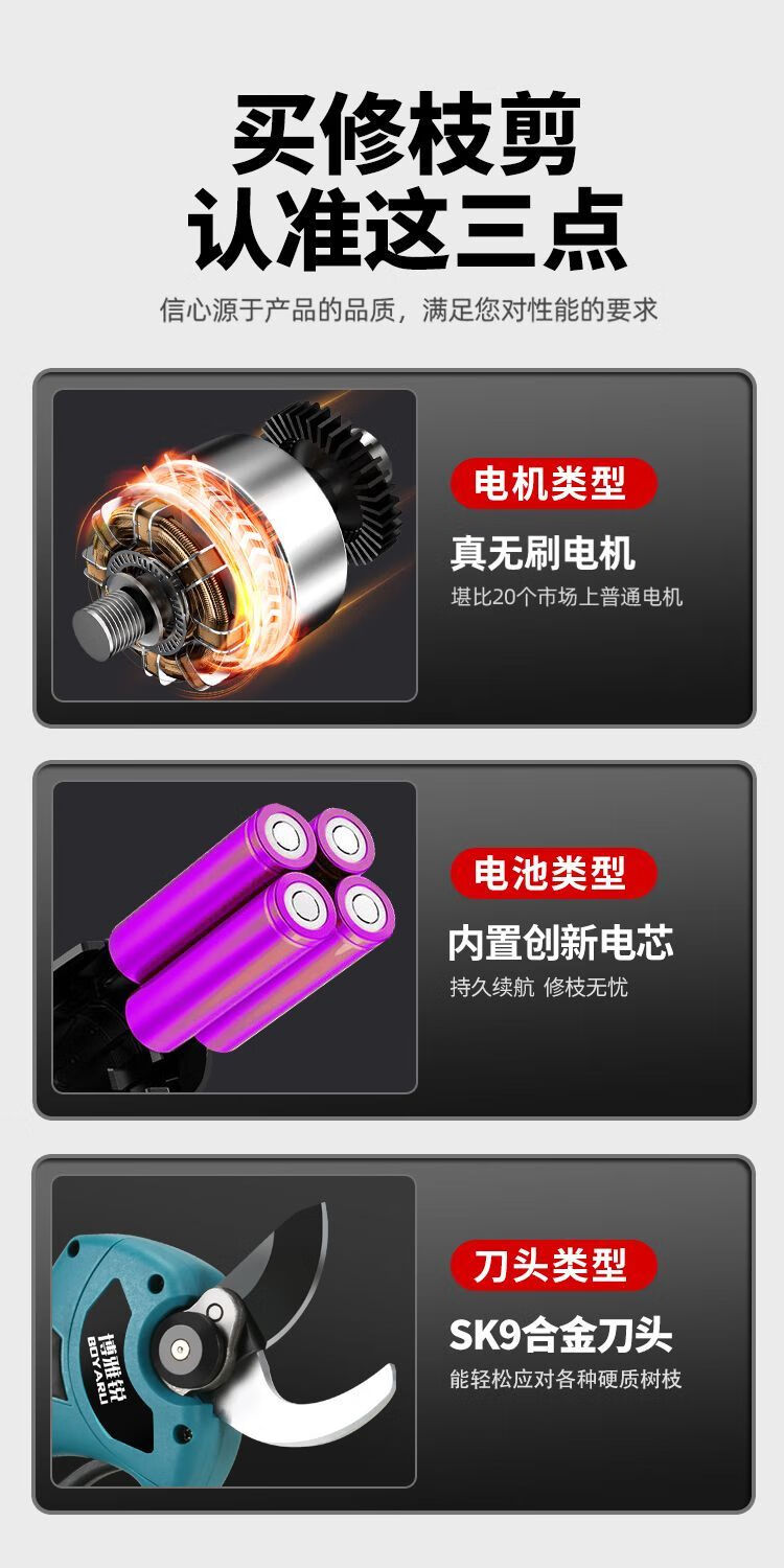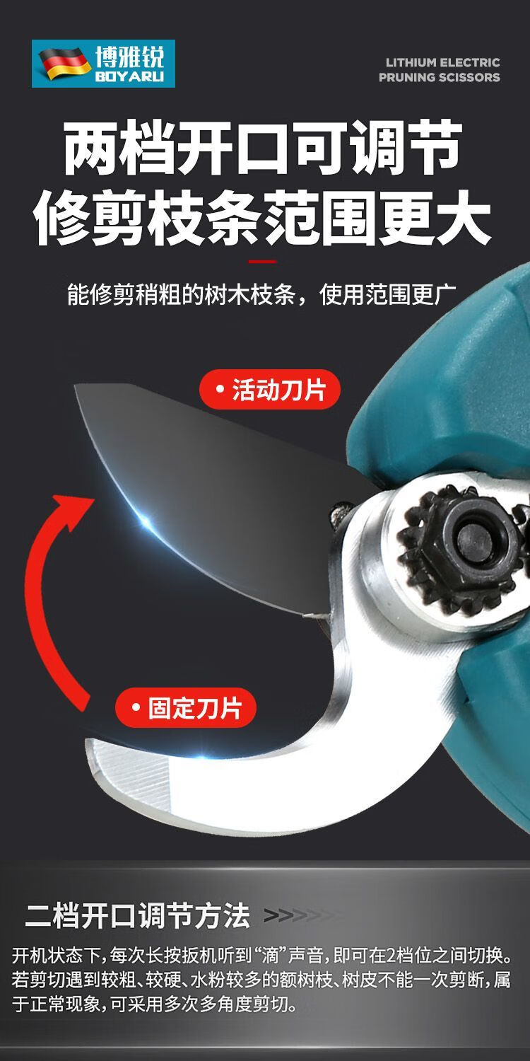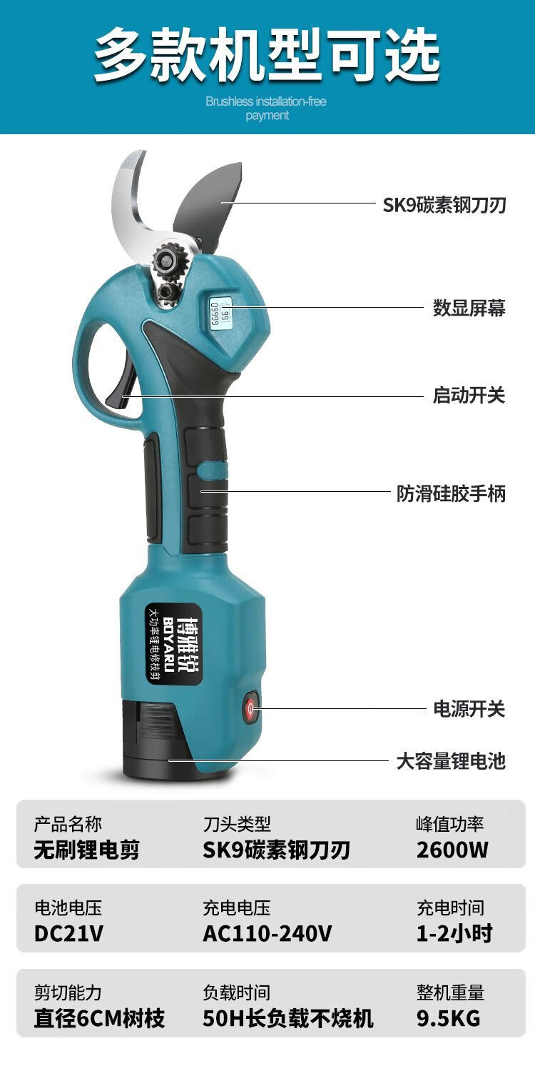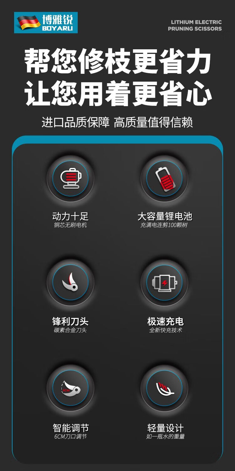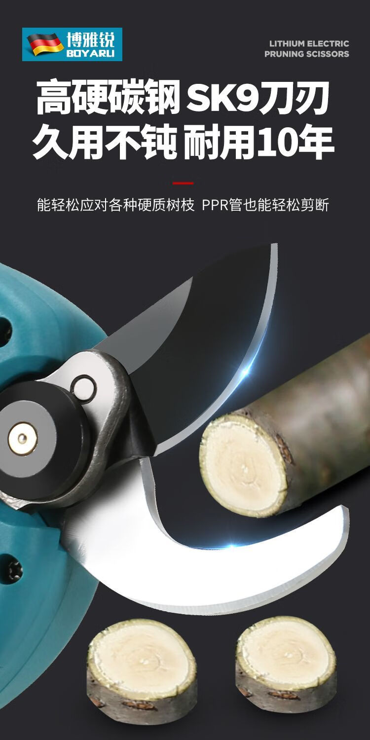 Dongcheng Lightweight and labor-saving German Boyarui high-power electric pruning shears lithium-ion scissors for fruit trees 4.0 mobile model two batteries and one charge +