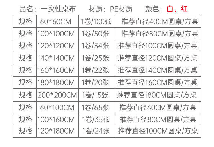 Wild pigeon disposable tablecloth small disposable tablecloth thickened rectangular disposable tablecloth plastic disposable white 60*60cm 100 sheets