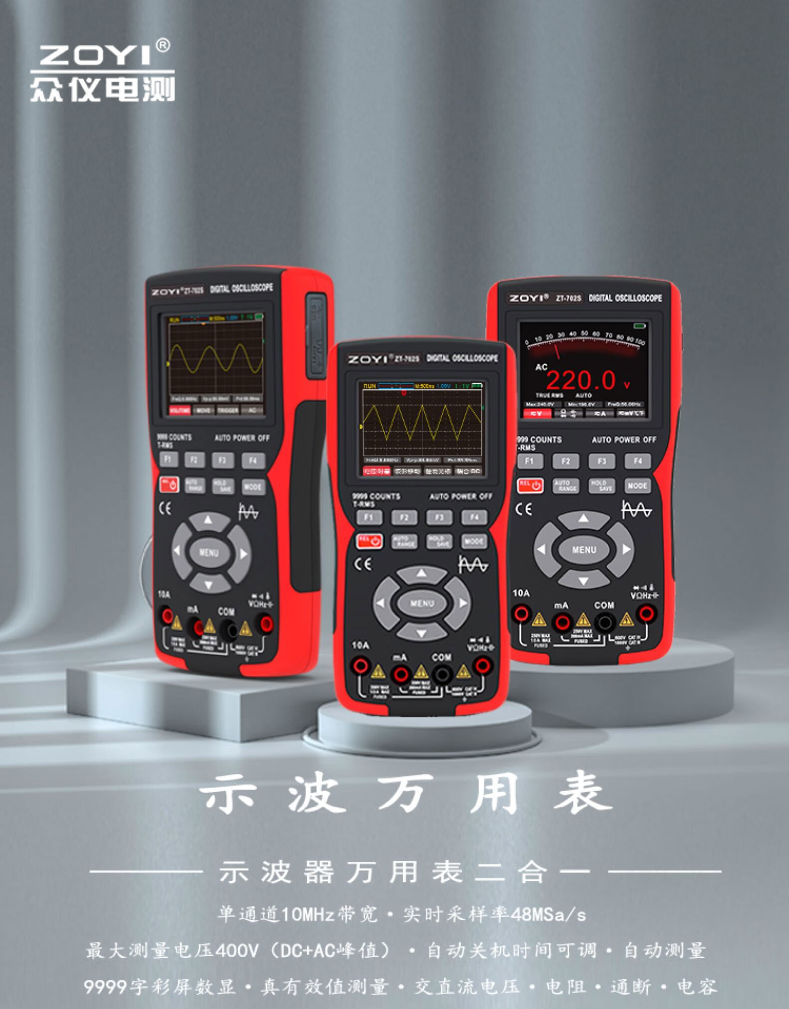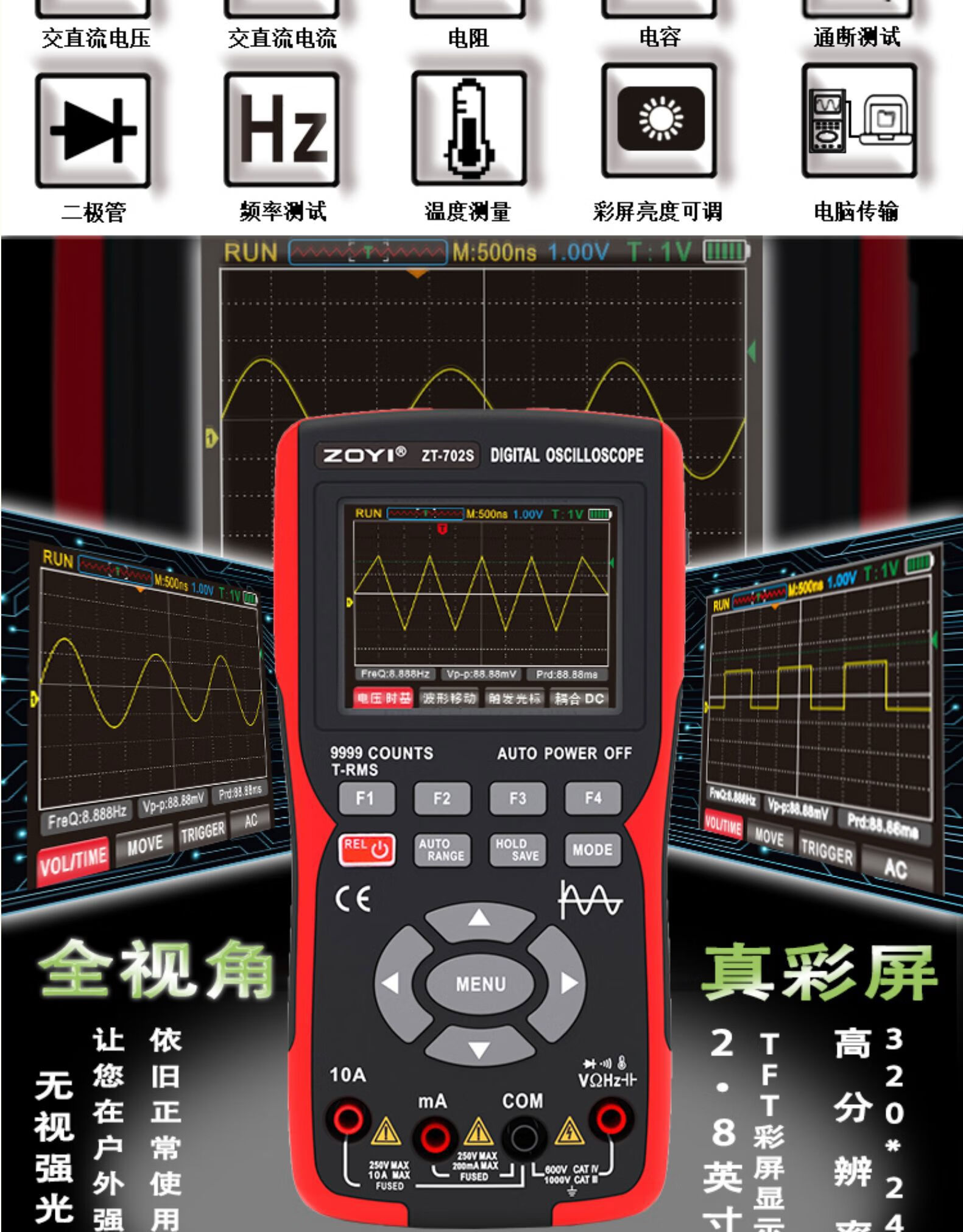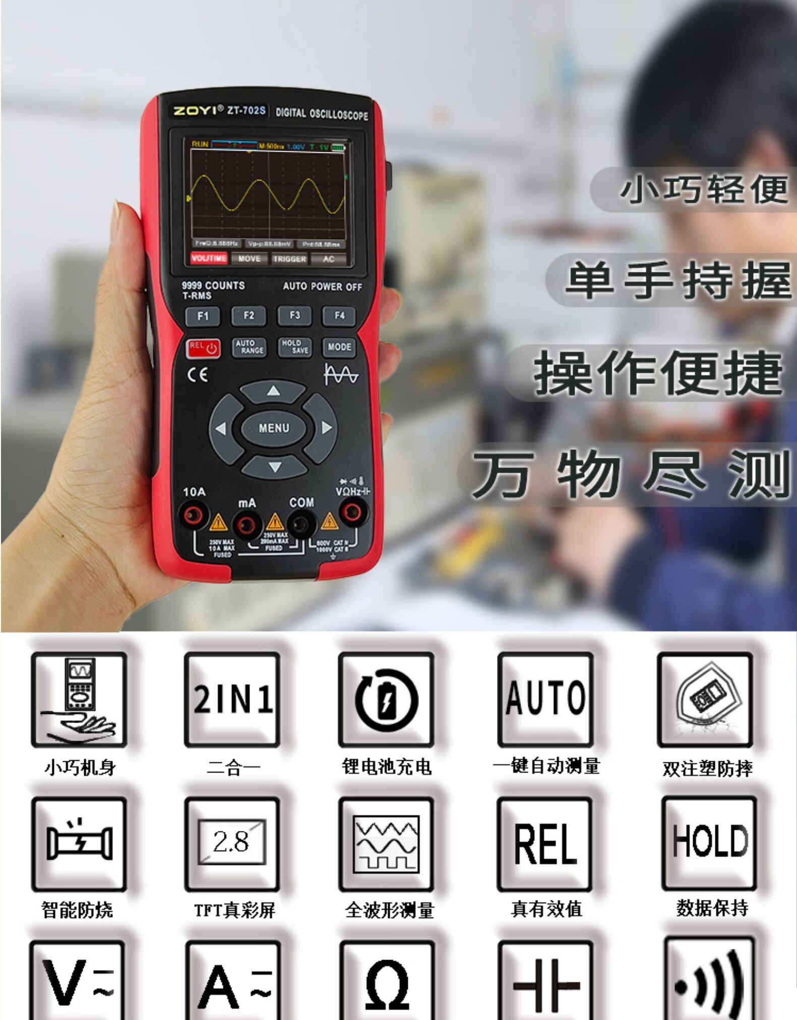 CLCEY Zhongyi Color Screen Handheld Digital Oscilloscope Multimeter 702s Auto Repair Instrument Multifunctional Measurement Intelligence Red ZT-702S Standard