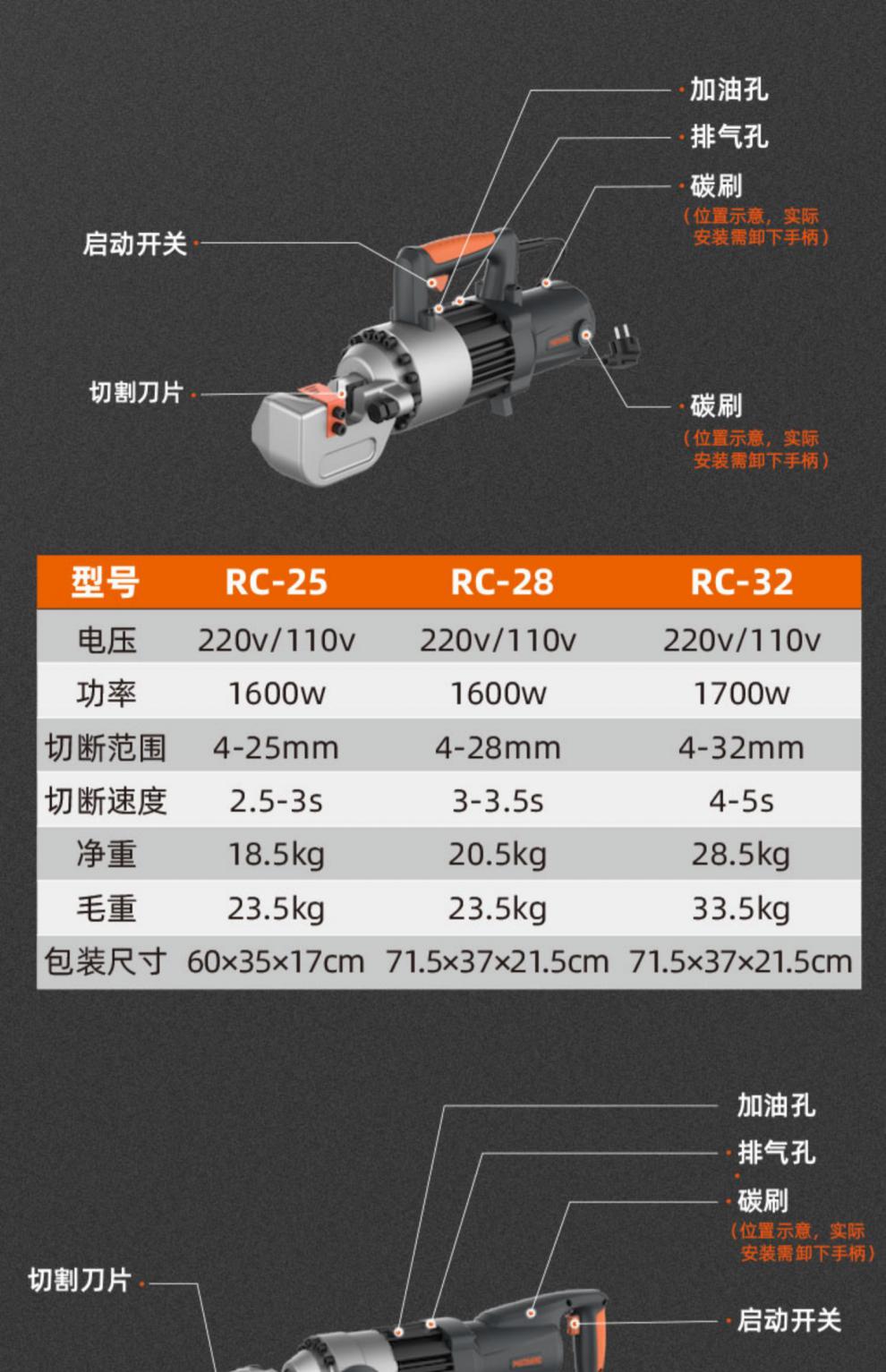 Portable small steel bar cutting machine electric hydraulic scissors cutting steel bar steel cutting machine Motor Jing RC16 steel Jing KC-16A steel bar cutting machine-SF Cutting