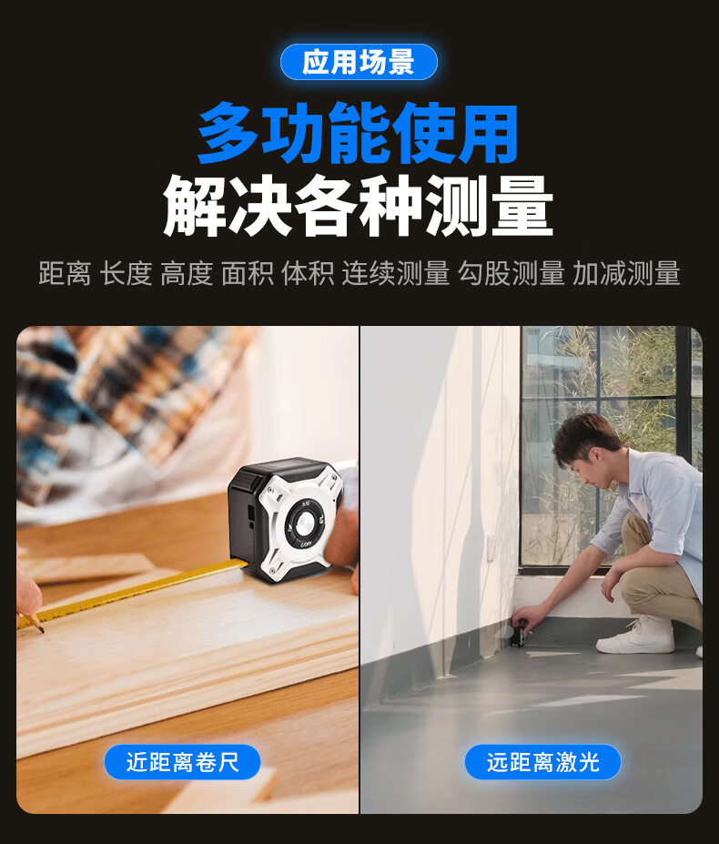 Budi Intelligent Laser Tape Distance Meter High-Precision Electronic Dimensional Measurement Tool Engineering Measurement Room 20 Meters Black and Red