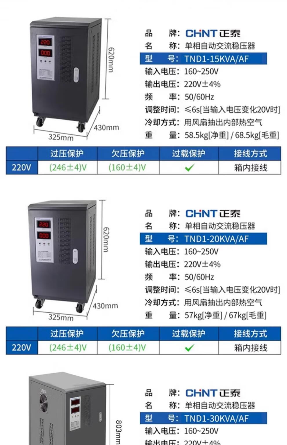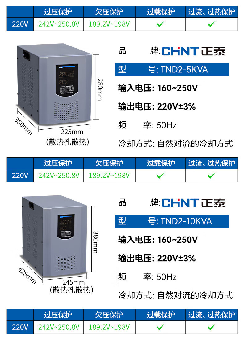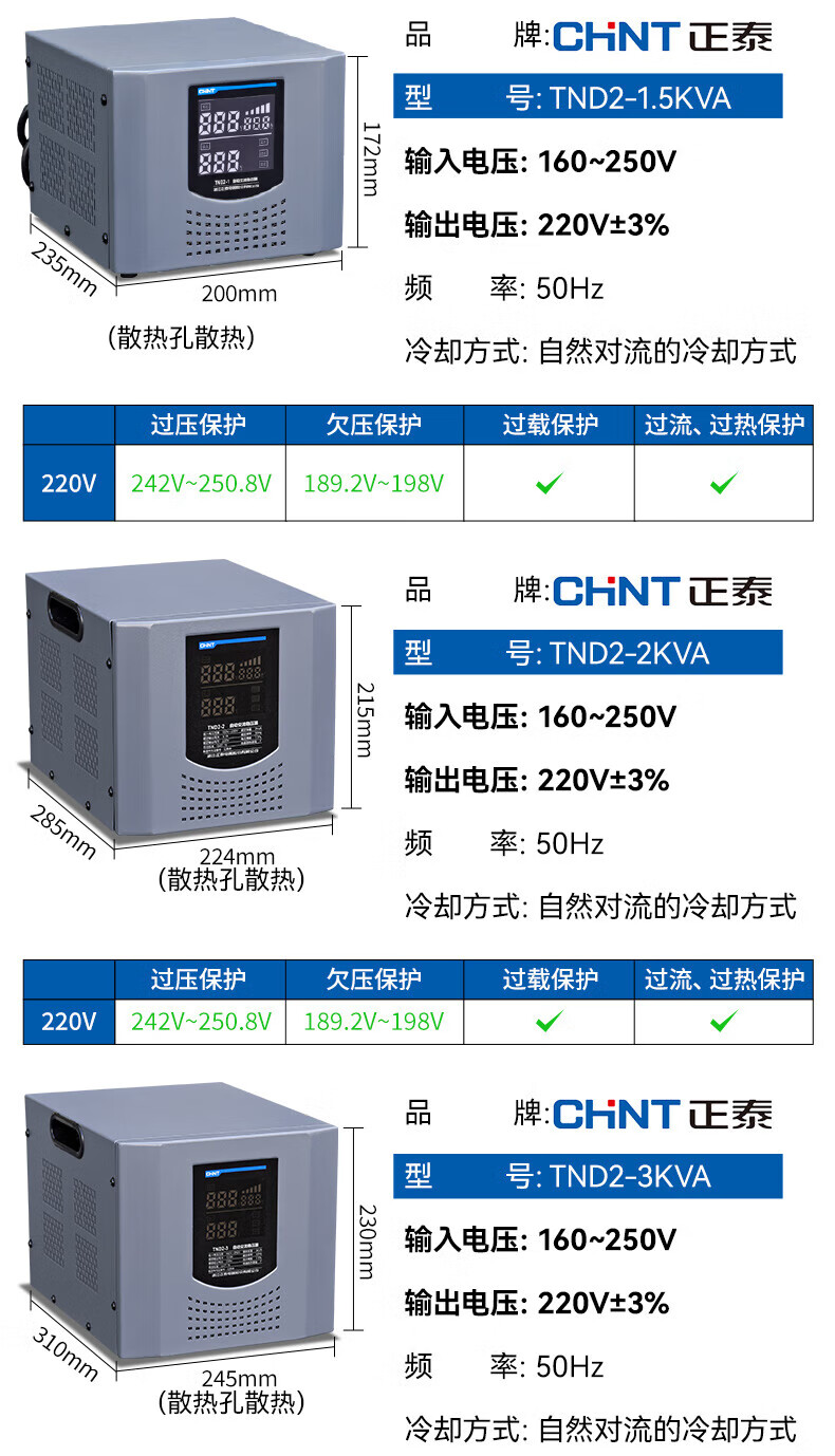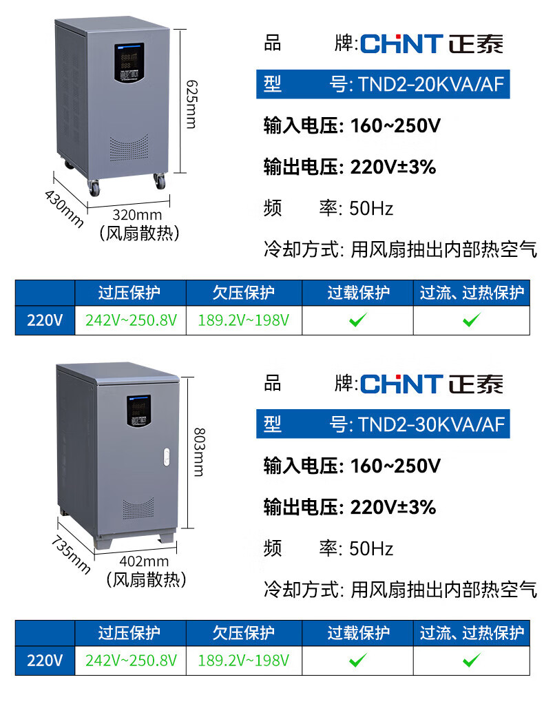 Yue Changsheng Chint AC voltage stabilizer 220v fully automatic household high-power single-phase power supply computer air conditioner commercial 15000w digital display version voltage stabilizer 30000VA vertical