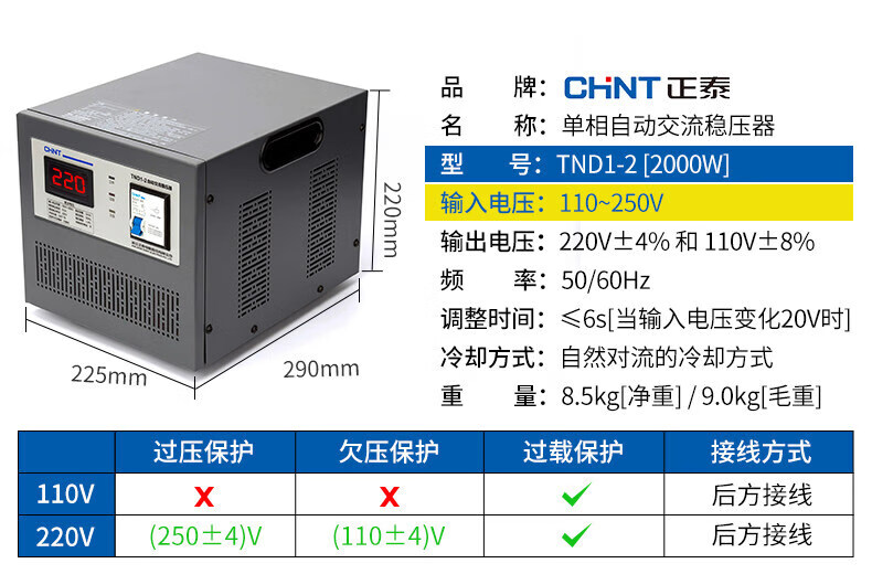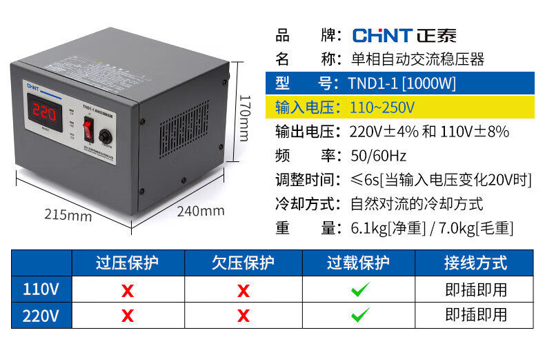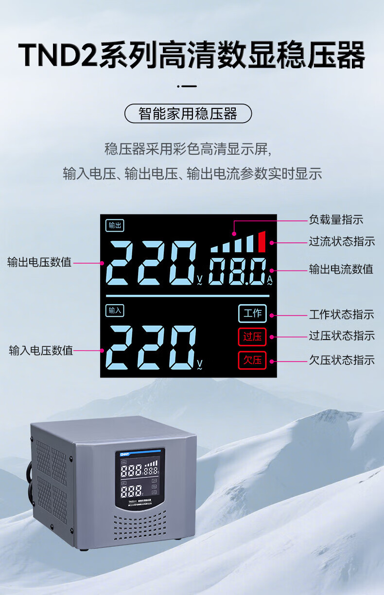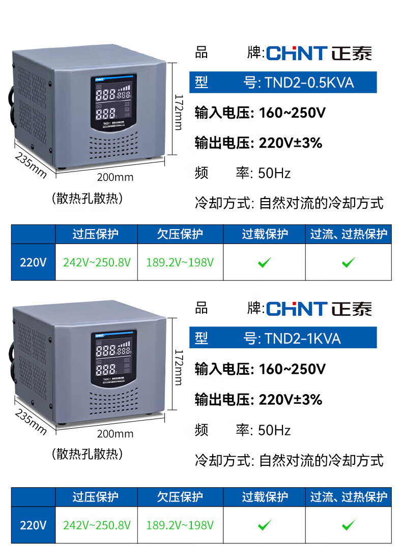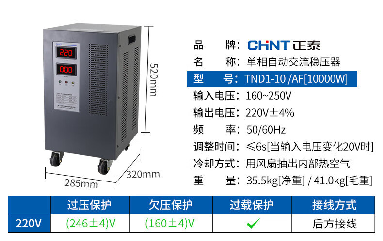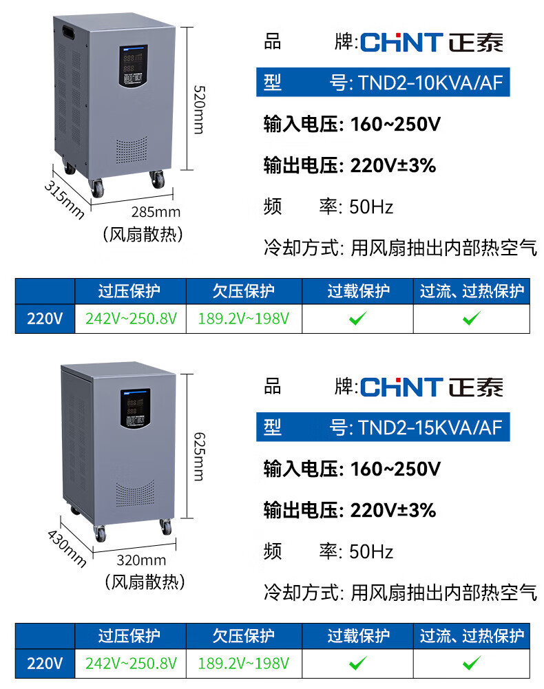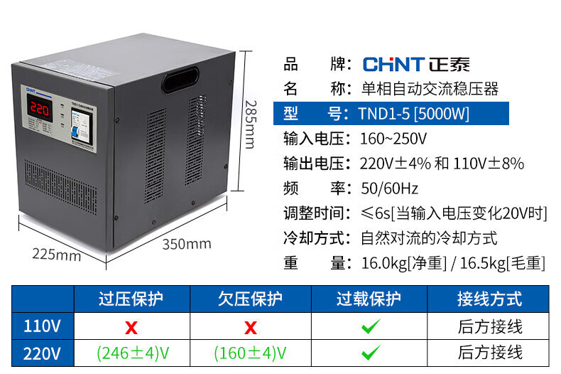 Yue Changsheng Chint AC voltage stabilizer 220v fully automatic household high-power single-phase power supply computer air conditioner commercial 15000w digital display version voltage stabilizer 30000VA vertical