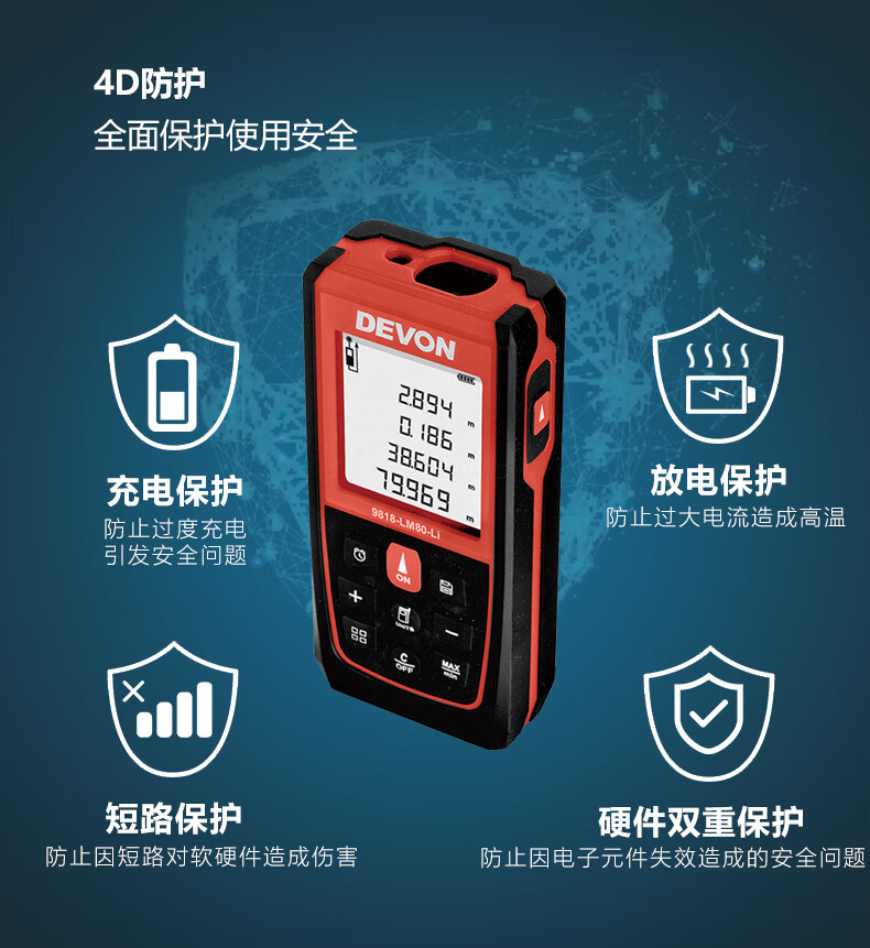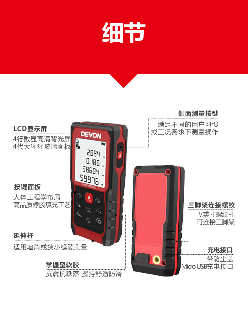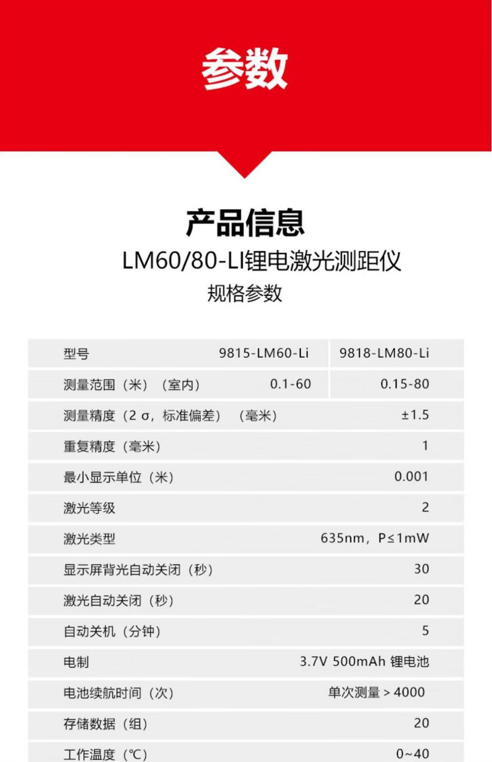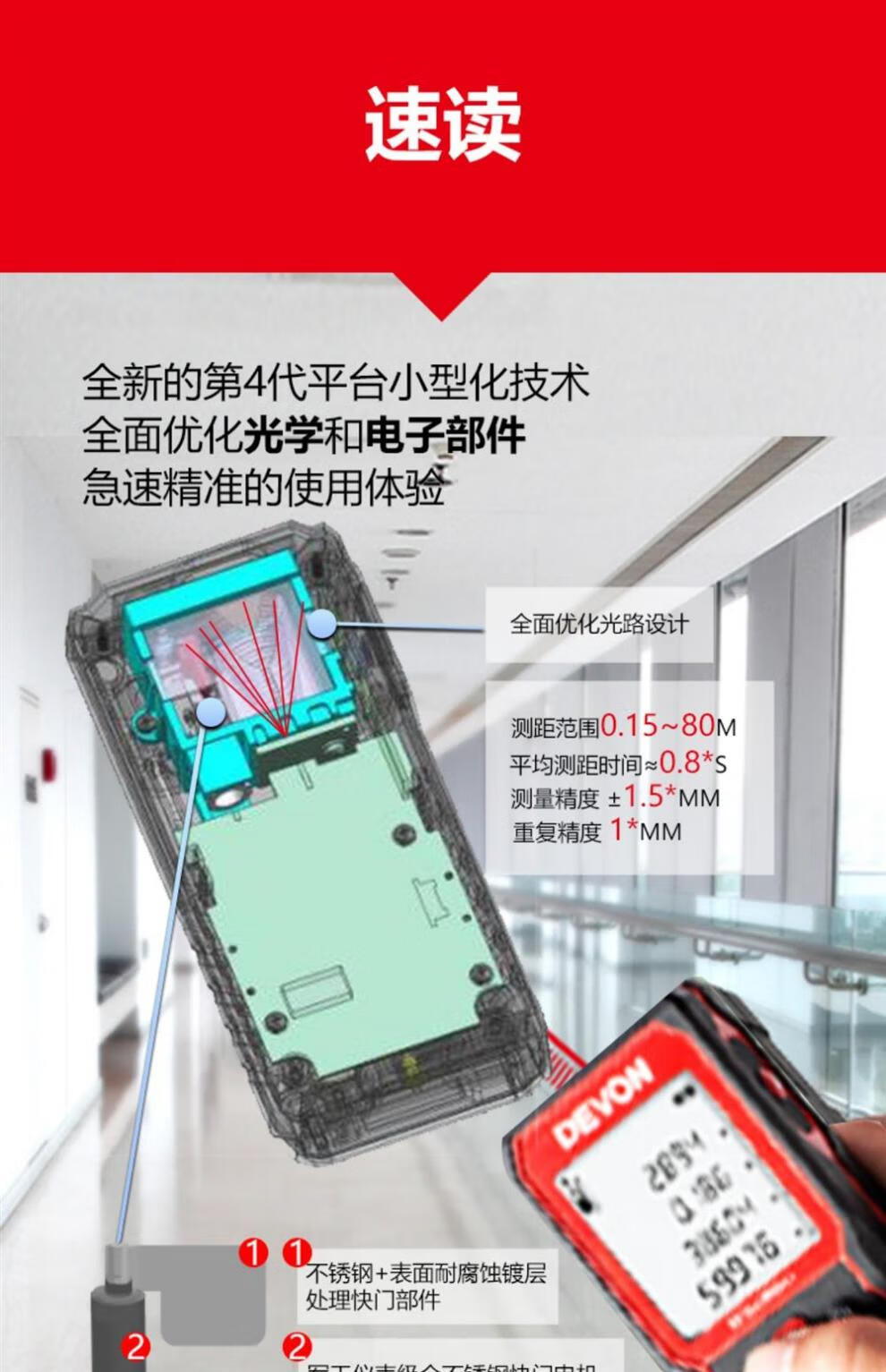 Devon Devon 60-meter lithium battery rangefinder handheld high-precision laser ruler measuring instrument LM60Li9815LM60Li distance meter 60
