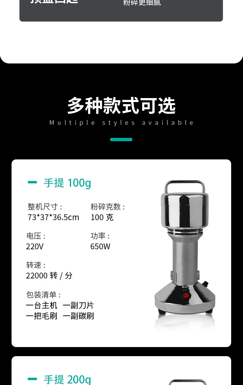 Laboratory solid sample grinder plant seeds grains Chinese medicinal materials ore grinder 80-300 mesh portable 100g
