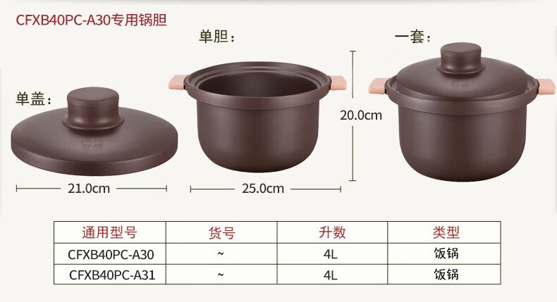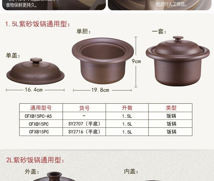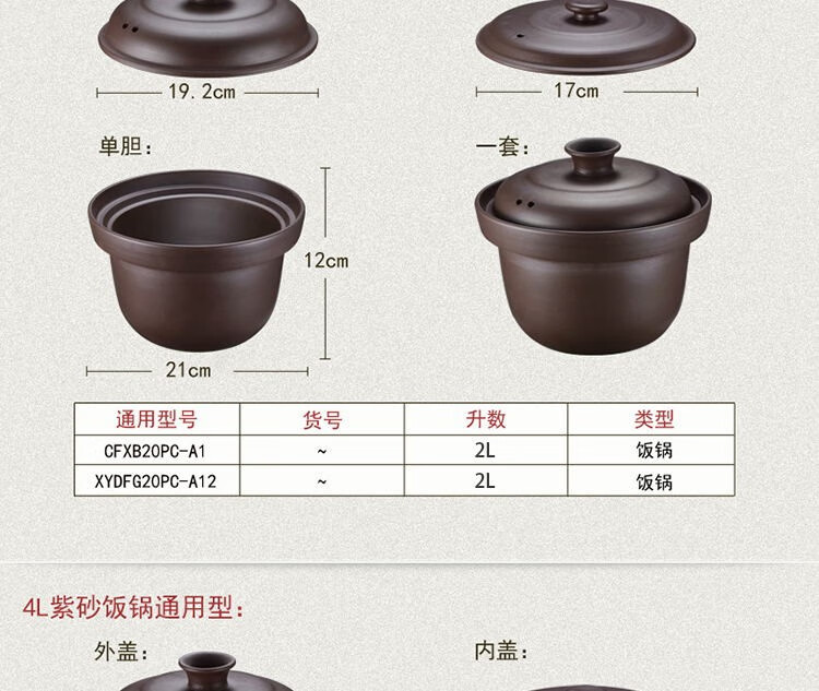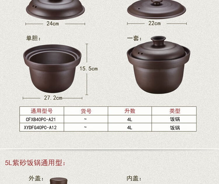 Purple clay rice cooker household raw mineral material liner pot lid original accessories matching 1.5L2L3L4L5L original Sanyuan 5L electric cooker liner