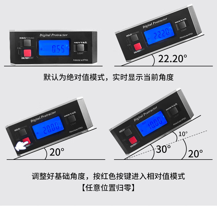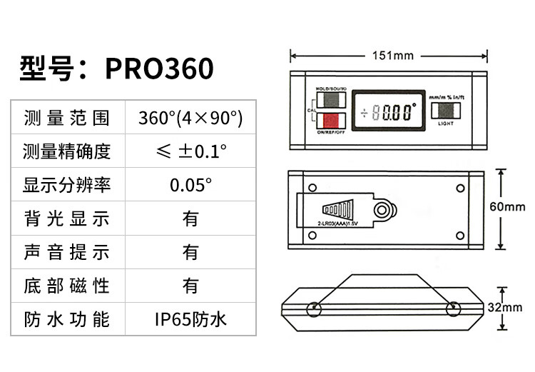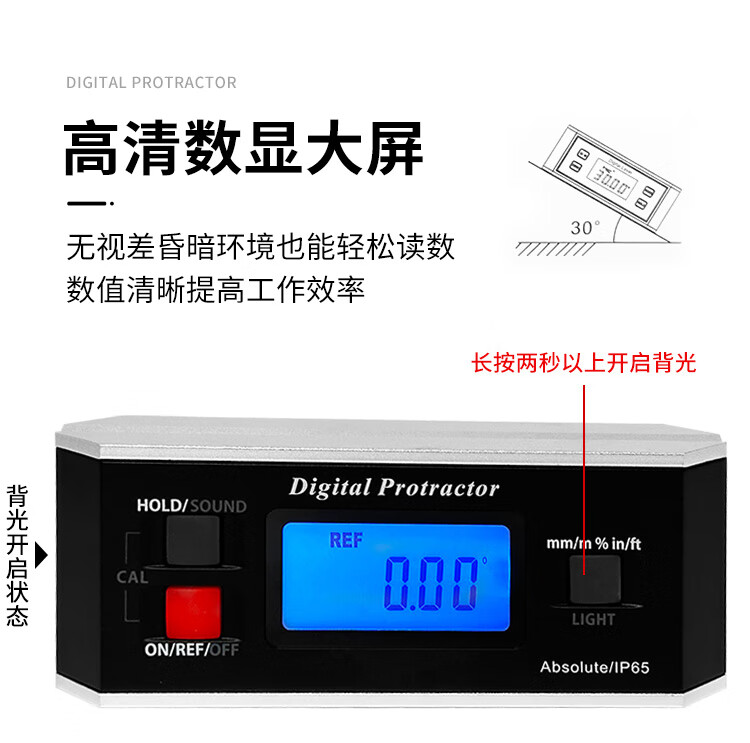 He Jiagong high-precision electronic digital display level, waterproof digital display angle meter, digital display inclinometer level ruler PRO360 large screen angle meter (magnetic IP65 waterproof)