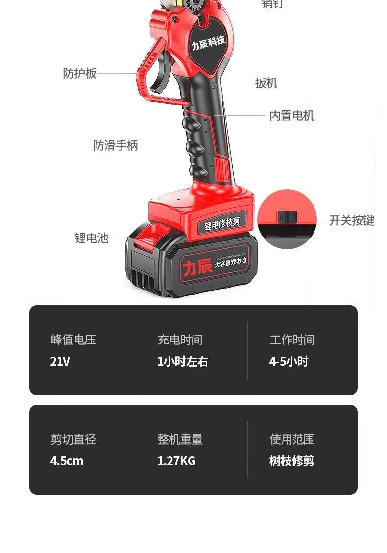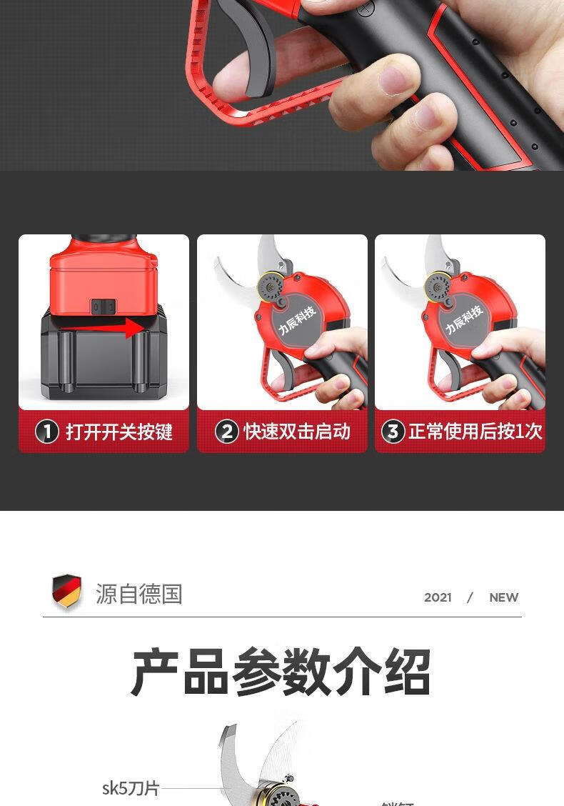 Lichen Technology (lichen) Electric Scissors Fruit Tree Pruning Shears Rechargeable Wireless Lithium Battery Gardening Garden LCD 198VF 4 cm Free $2 + pocket for single power