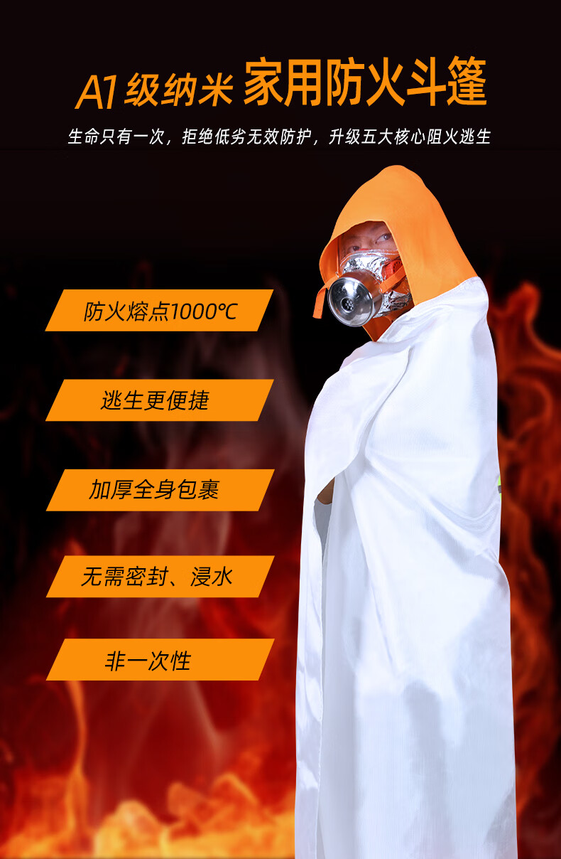 Nano glass fiber fireproof cloak cape fire extinguishing fire blanket household fire protection special home fire escape clothing children's nano escape combination fire protection melting point 1000