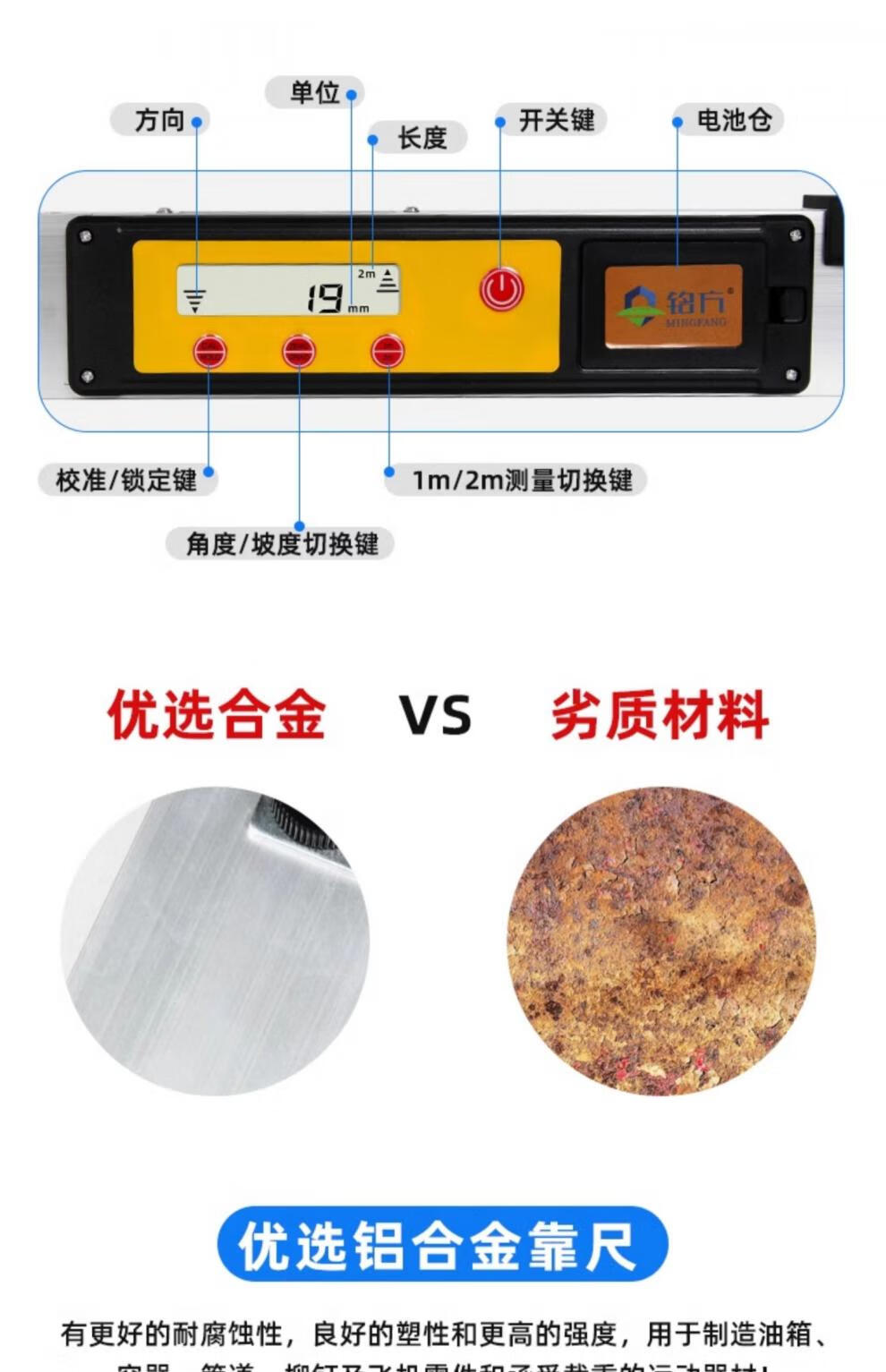Yusenyi ruler 2 meters folding digital display level ruler verticality measuring instrument engineering inspection house inspection tool leveling ruler + feeler ruler 1 meter ruler_door and window inspection