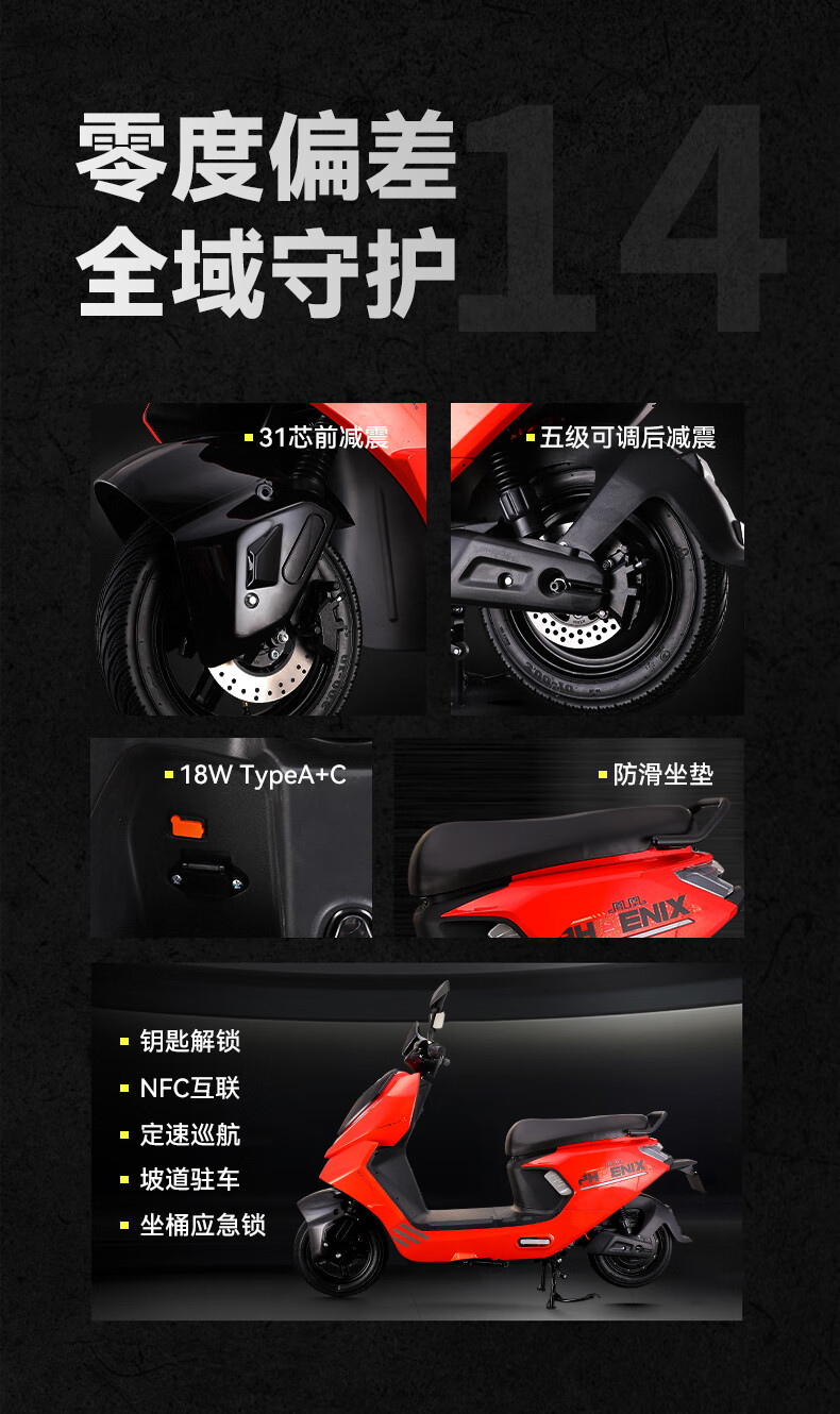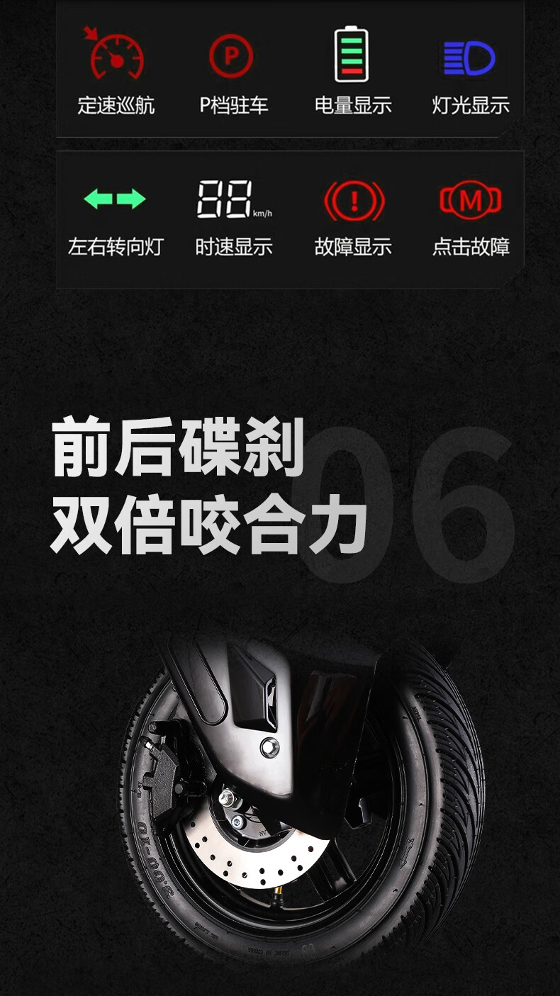 Jihe Phoenix high-performance electric motorcycle for commuting and taking out food, large pedal space, long endurance, lead-acid smart electric motorcycle, Aurora White, high-speed motor/double disc brakes front and rear/square box model 70V40ah/one piece of removable lithium battery/ready to ride upon arrival