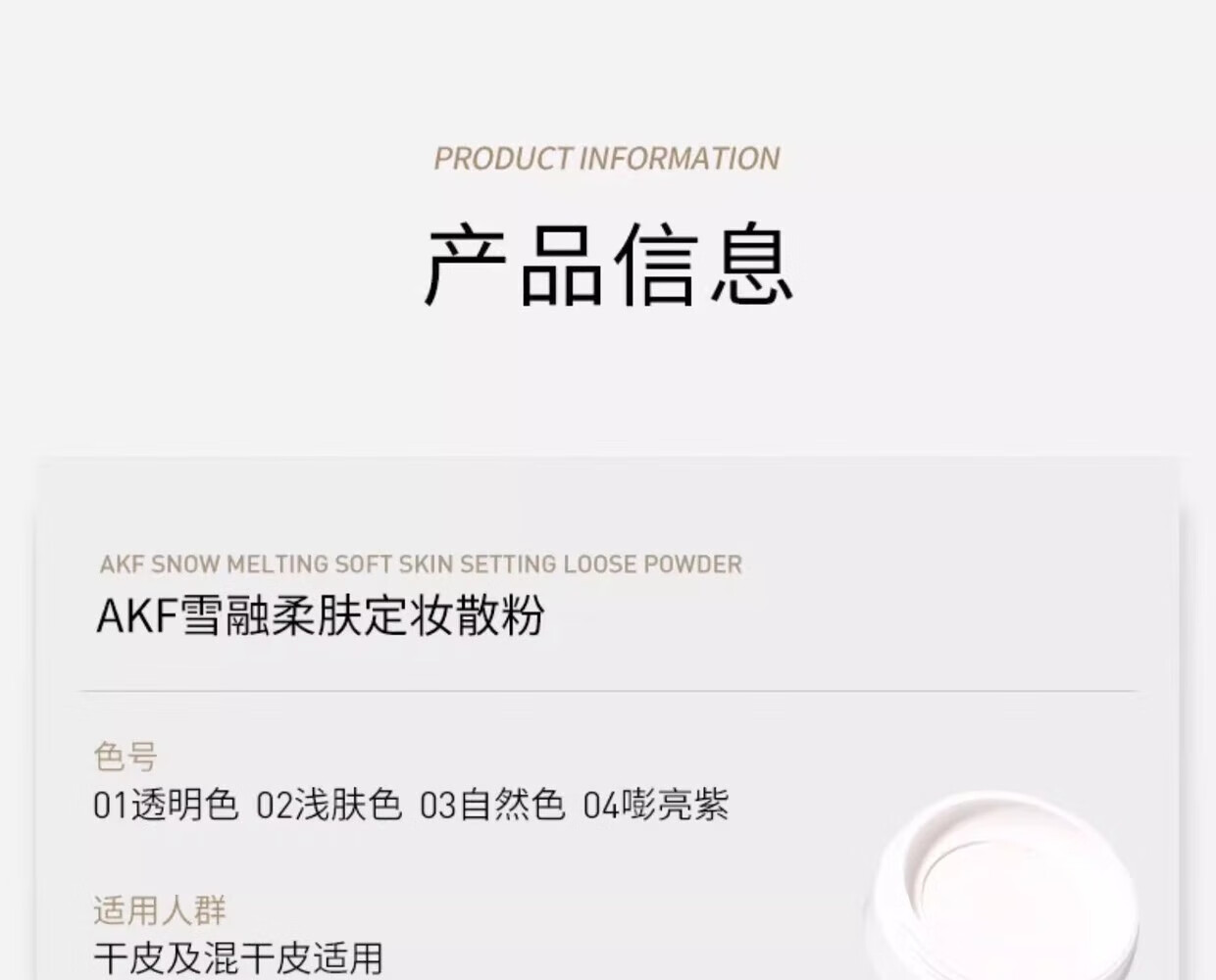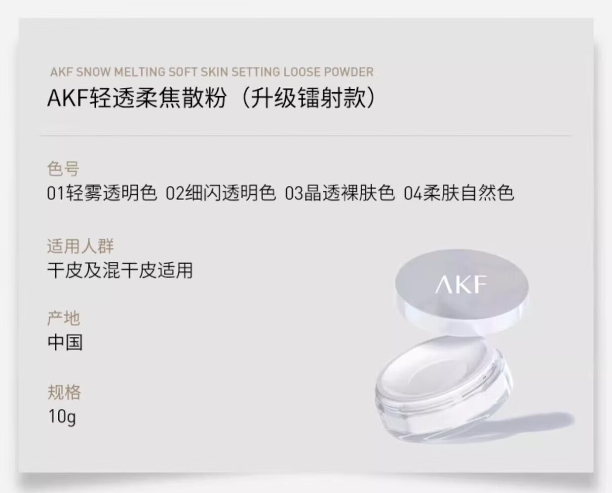 AKF genuine makeup setting loose powder, long-lasting oil control, no makeup removal, waterproof and sweat-proof powder, microdermabrasion student party New Year gift, soft focus style 01# light mist transparent color