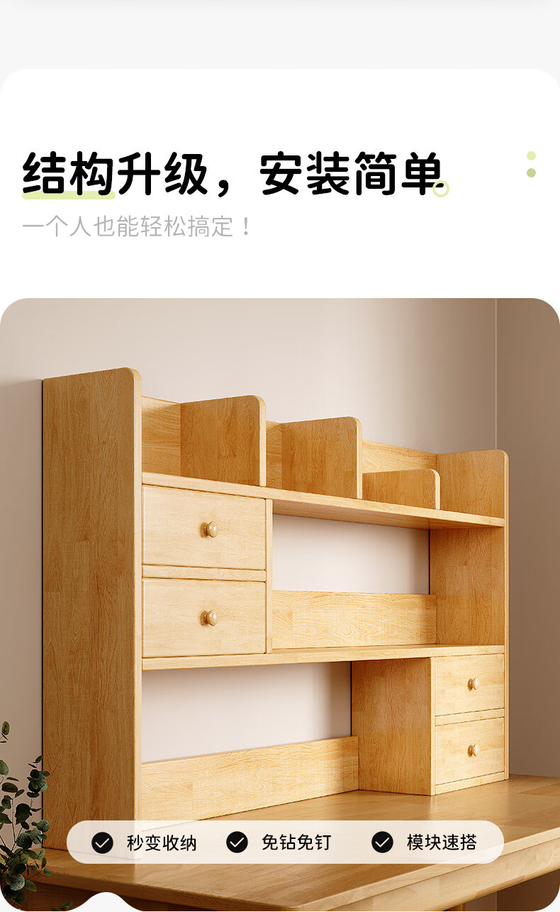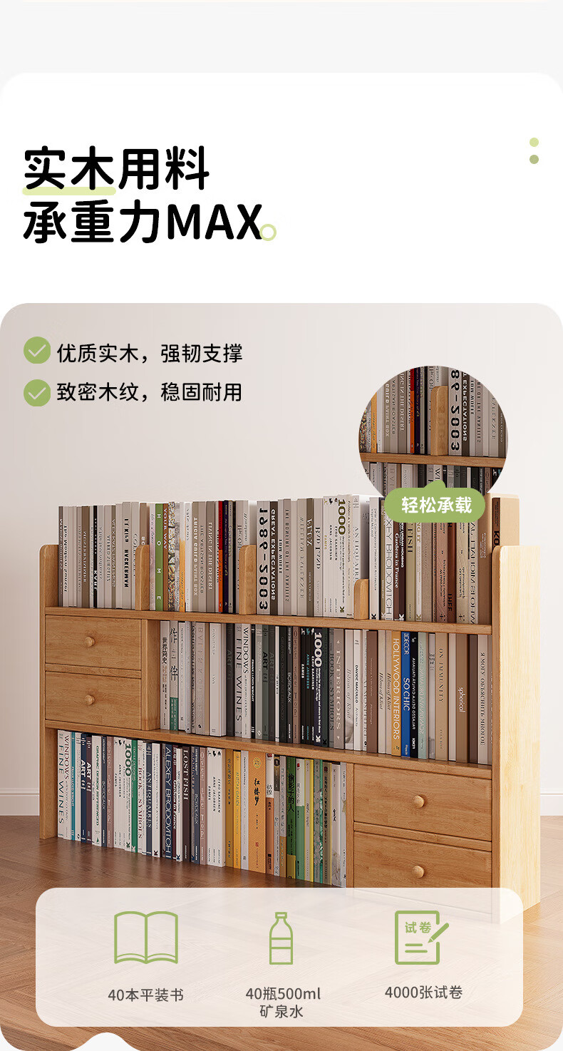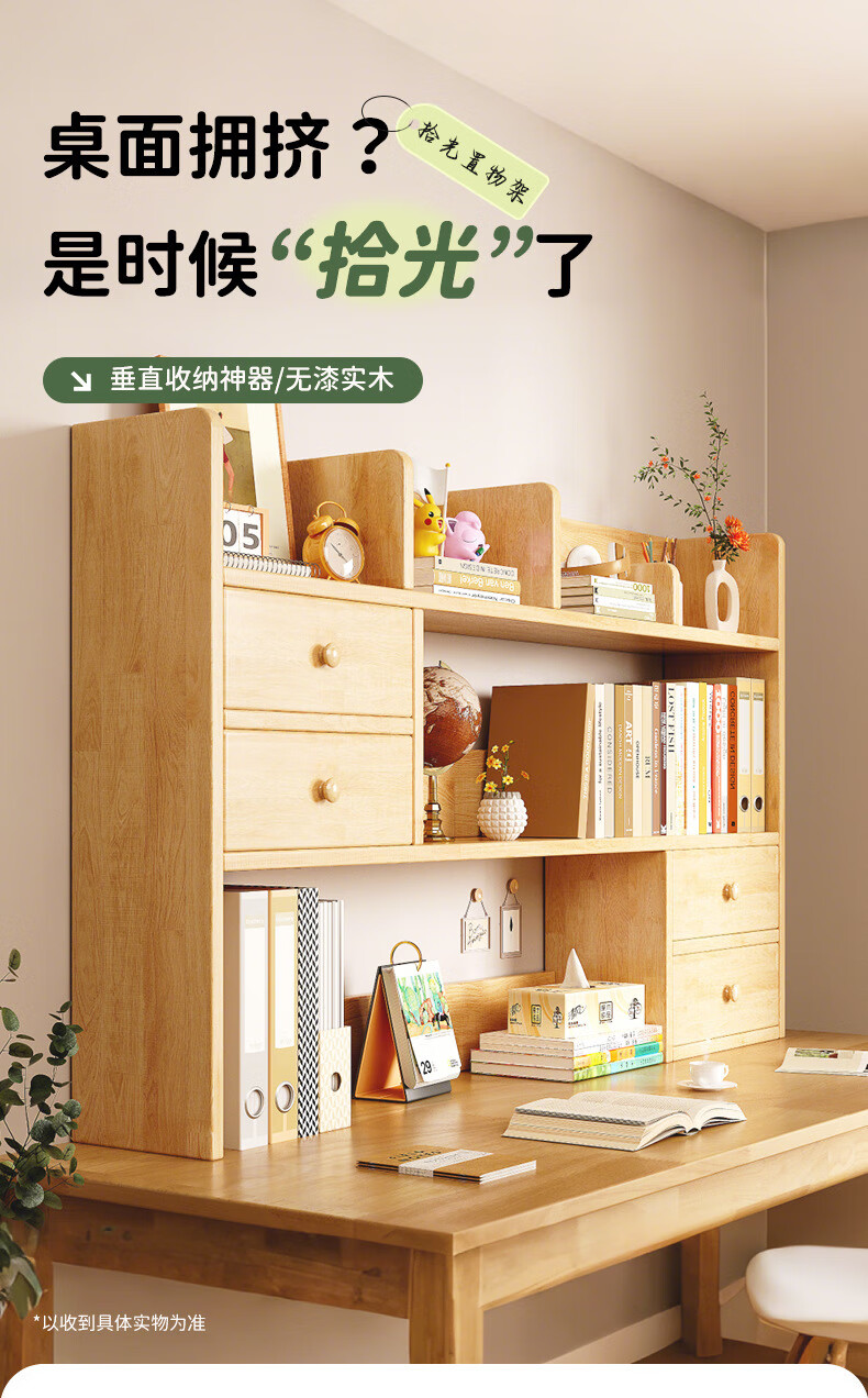 Tanglong solid wood bookshelf desktop storage rack student desk simple storage shelf office vertical multi-layer small bookcase imported no paint three layers 100cm black oak color more secure for home use multiple uses versatile scene