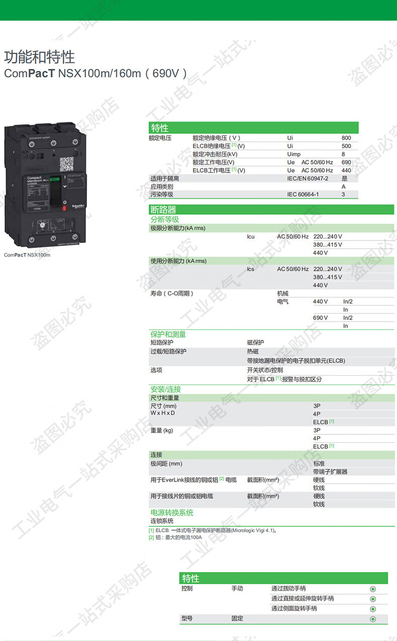 Schneider Molded Case Circuit Breaker NSX Series TMD 100/160/250/400/630 A F/N/H 3P/4P NSX630_MIC_2.3_630A F 36kA _3P