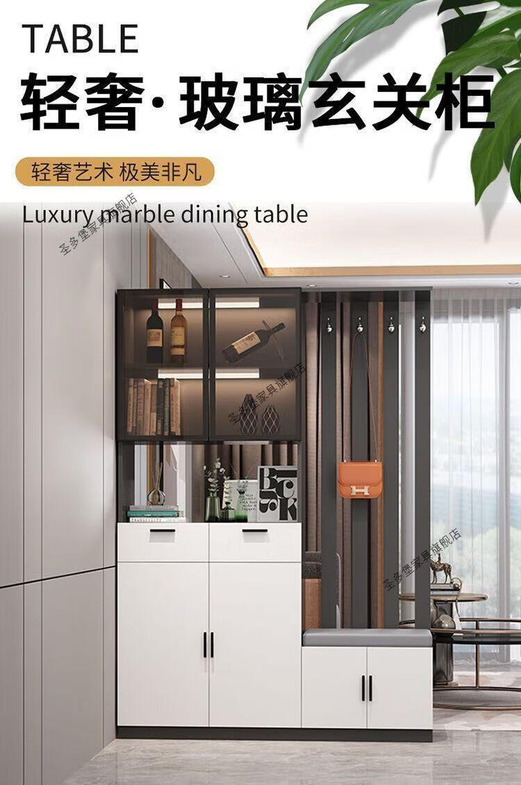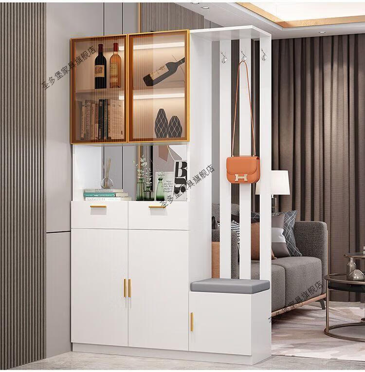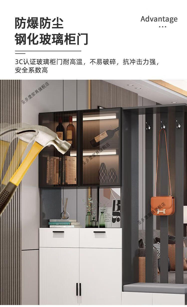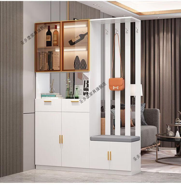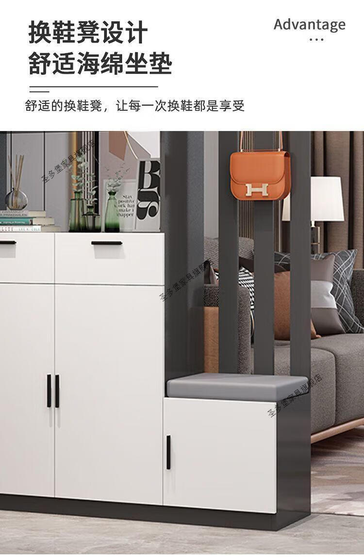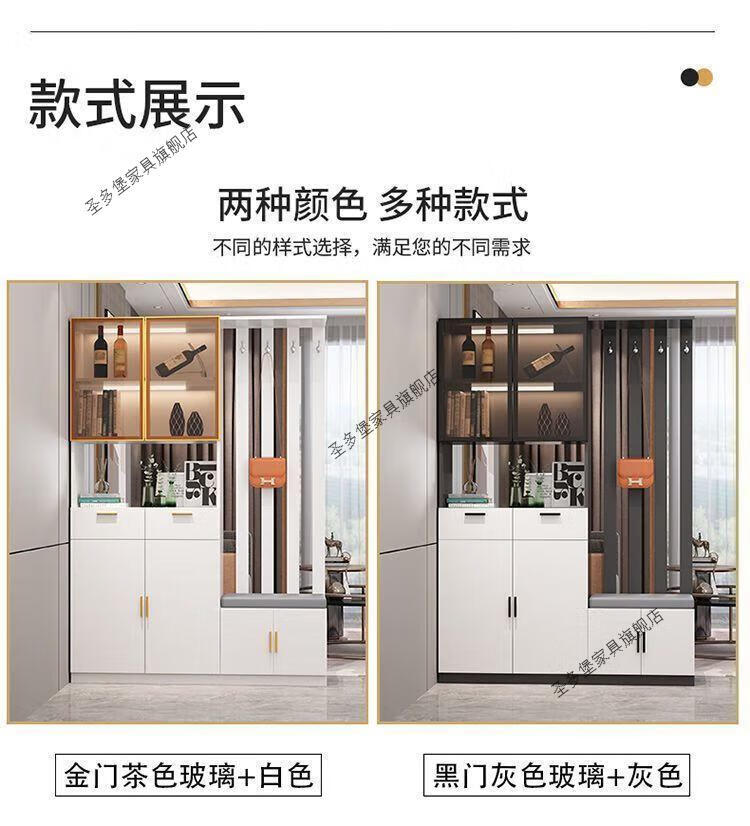Shantou Lincun front door entrance cabinet shoe cabinet integrated modern simple living room screen partition cabinet multi-functional wine cabinet simple gray + length 120 left shoe changing stool solid wood ecological board installed by yourself - save money