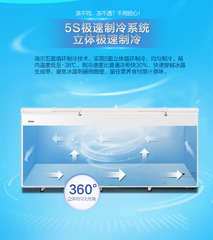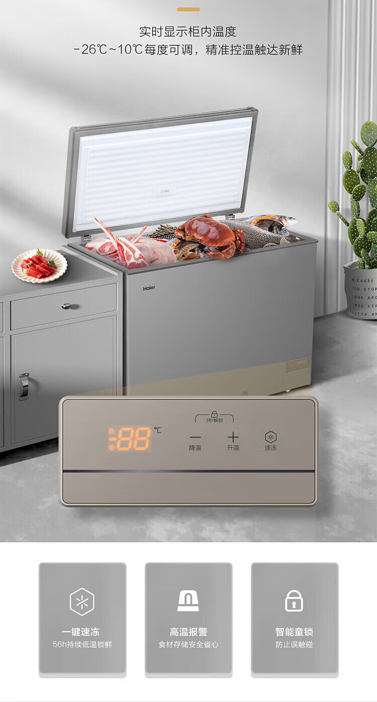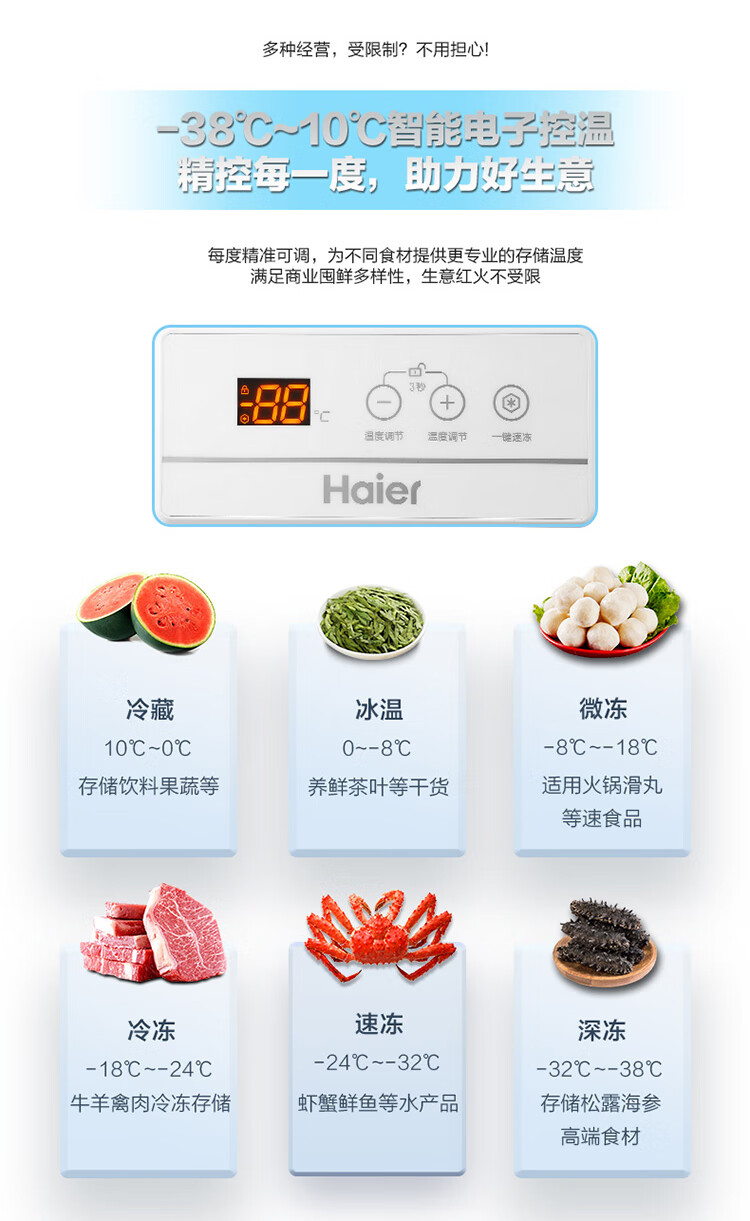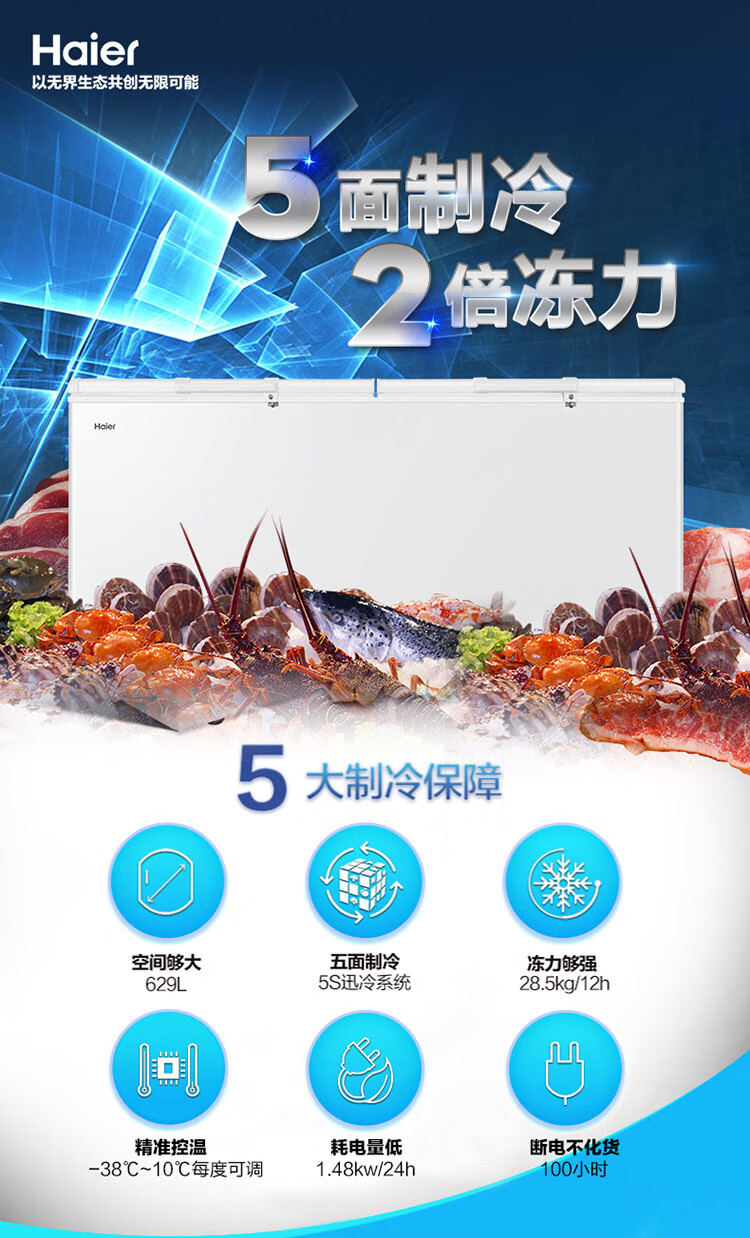 Haier freezer large capacity - 38 degrees ultra-low temperature fully frozen commercial freezer household refrigeration and freezing dual-purpose quick-freezing freezer 300/400/500 liters and above 629 liters huge power saving丨-38丨electronic temperature control 629L