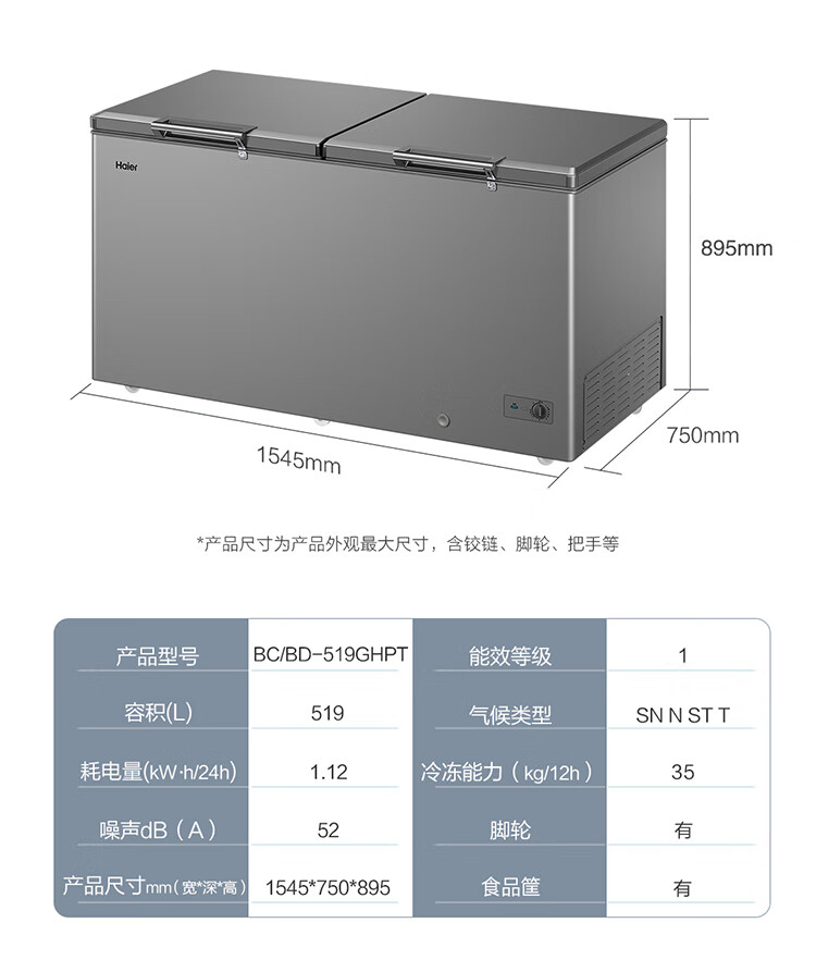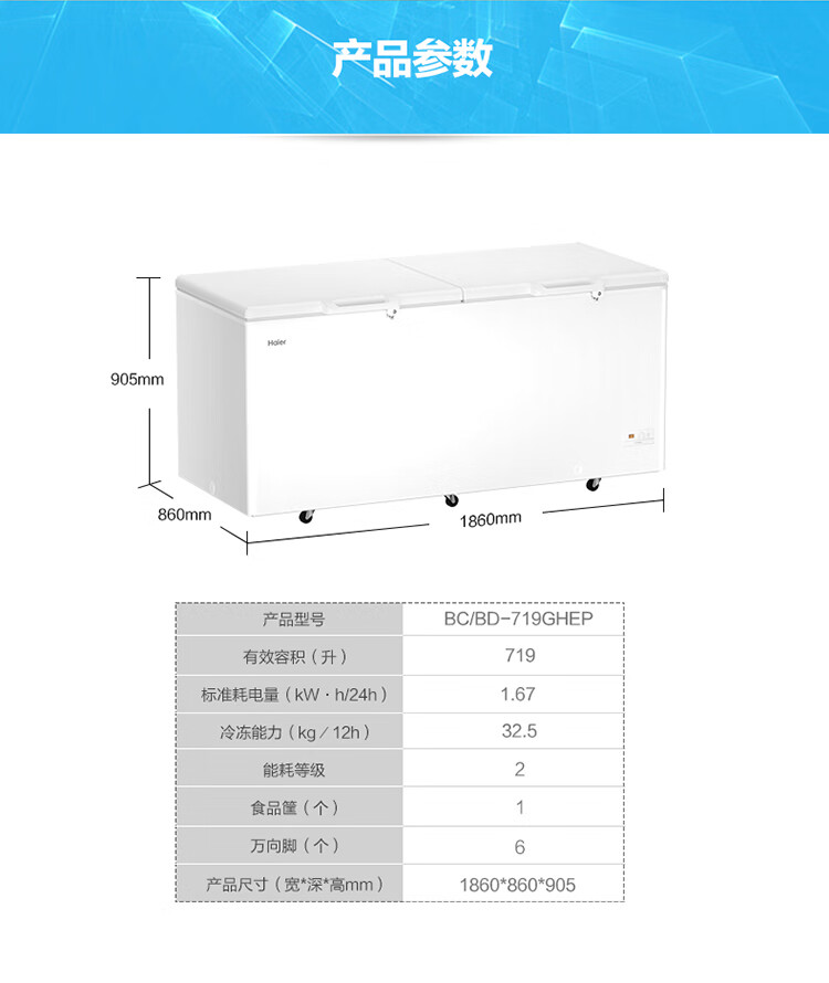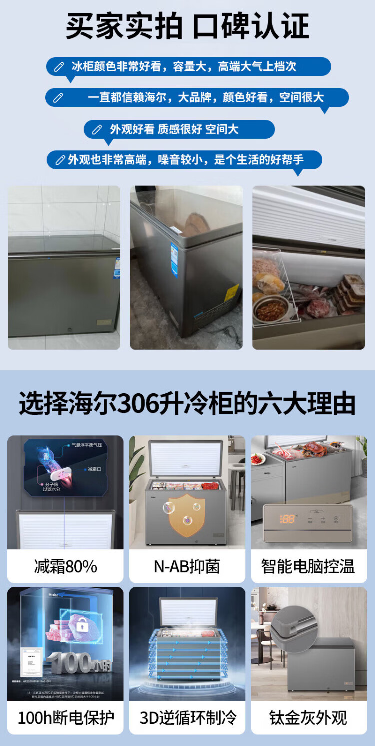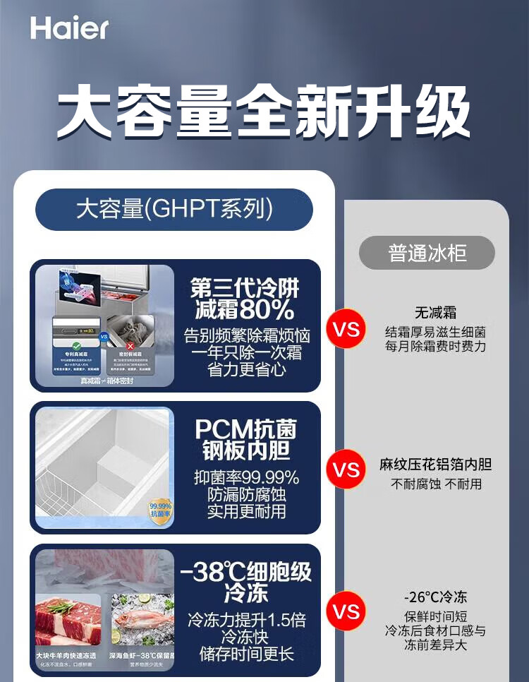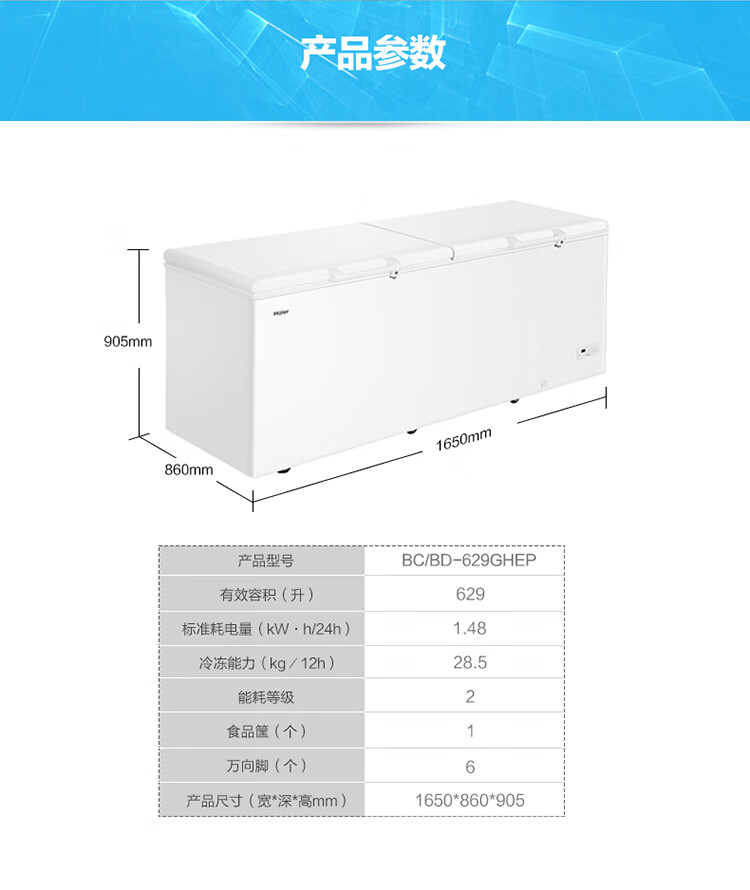 Haier freezer large capacity - 38 degrees ultra-low temperature fully frozen commercial freezer household refrigeration and freezing dual-purpose quick-freezing freezer 300/400/500 liters and above 629 liters huge power saving丨-38丨electronic temperature control 629L