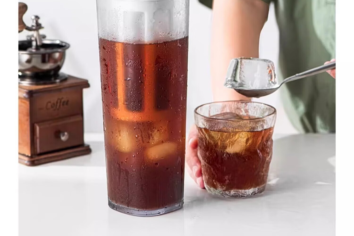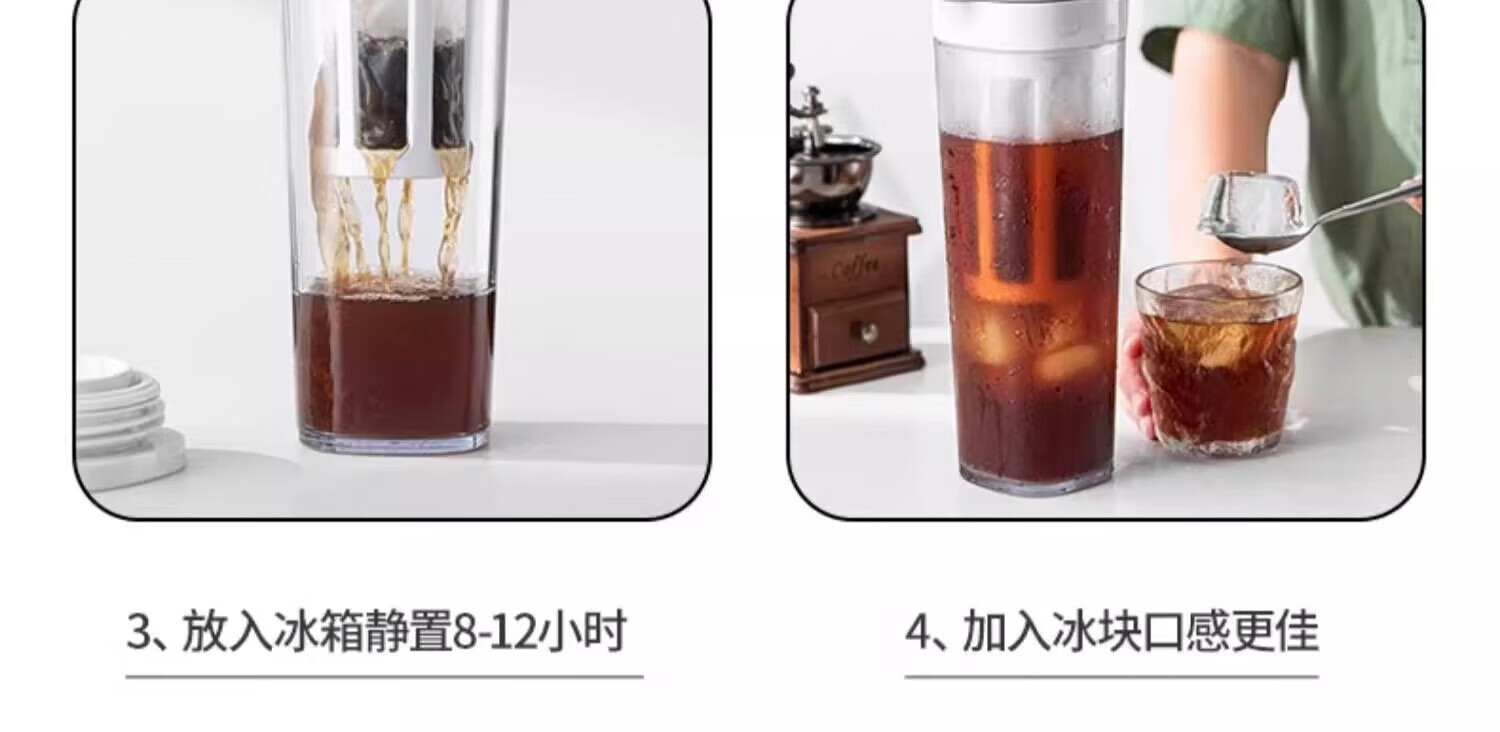 Jieyi coffee cold brew pot, tea cold brew cup, large capacity cold brew pot, cold brew teapot, cold brew coffee pot, cold brew cup, white 1100ML