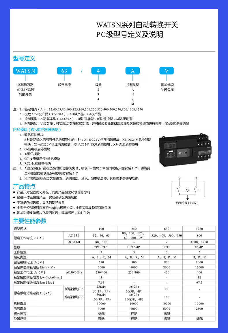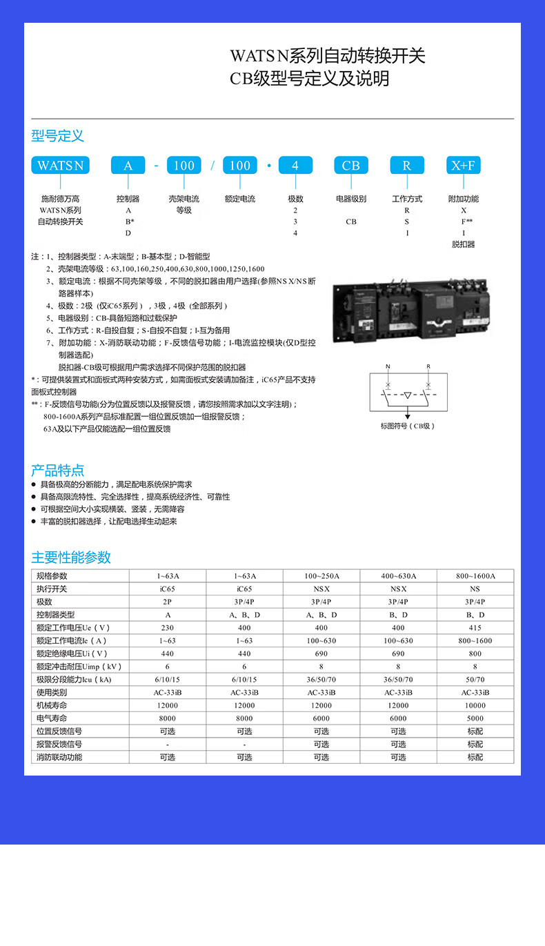 Schneider Wangao dual power transfer switch WATSG WATSN-100/63/4A 2A160b32 250 main_backup power OF position feedback