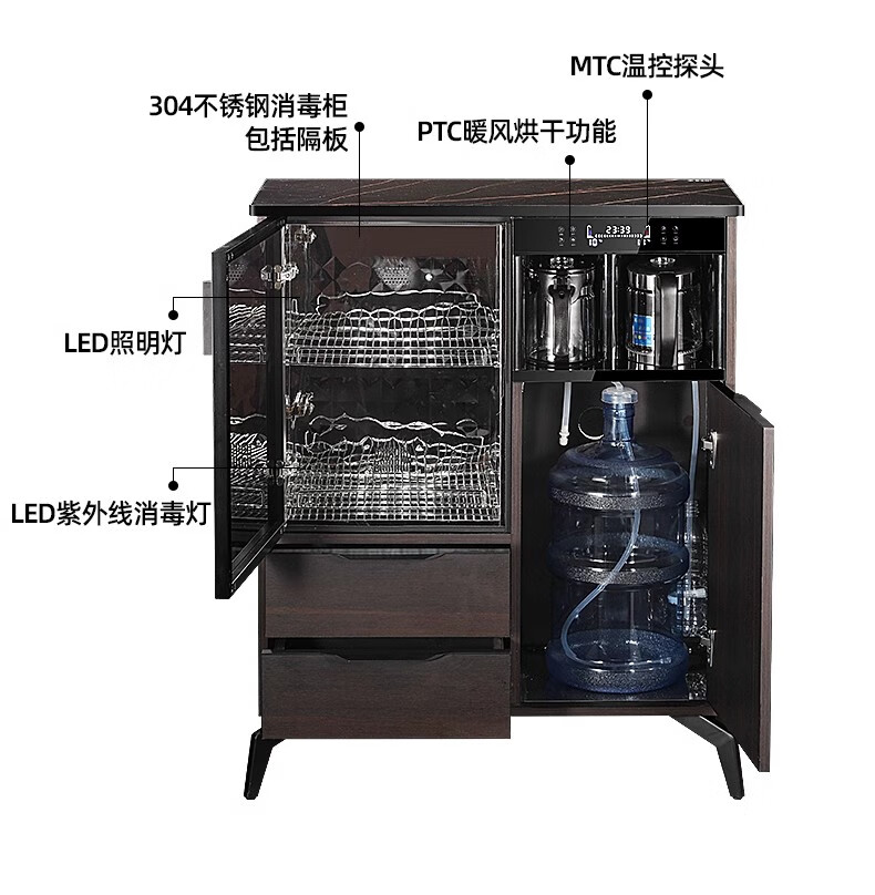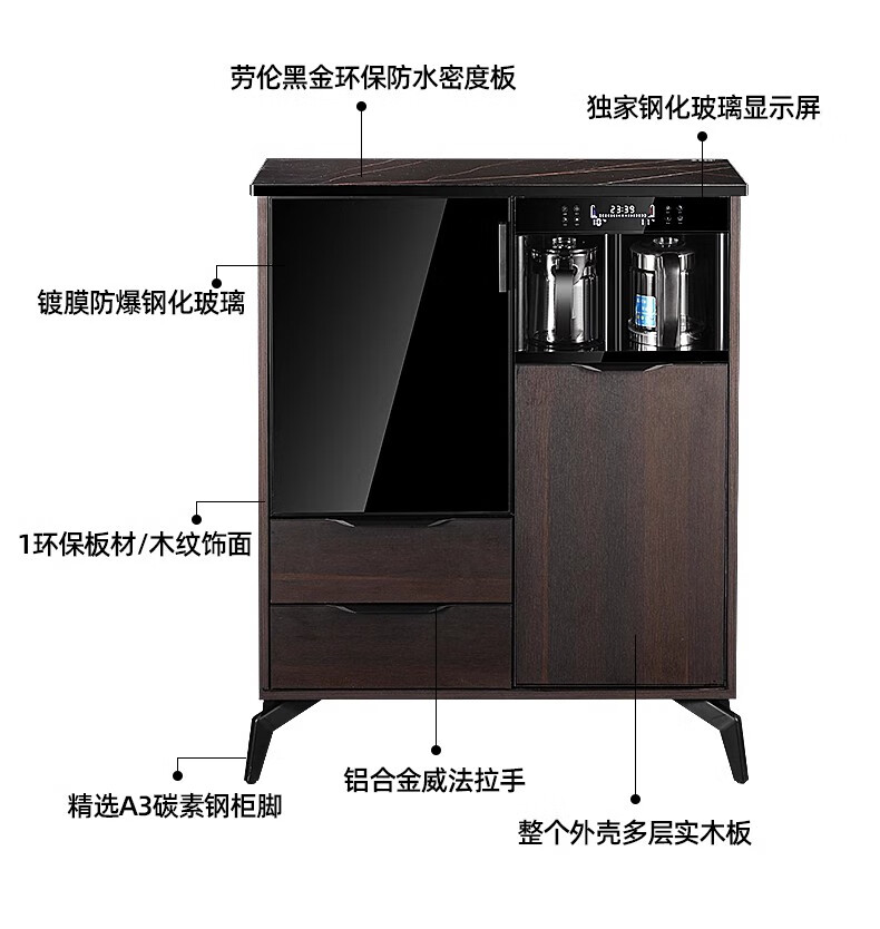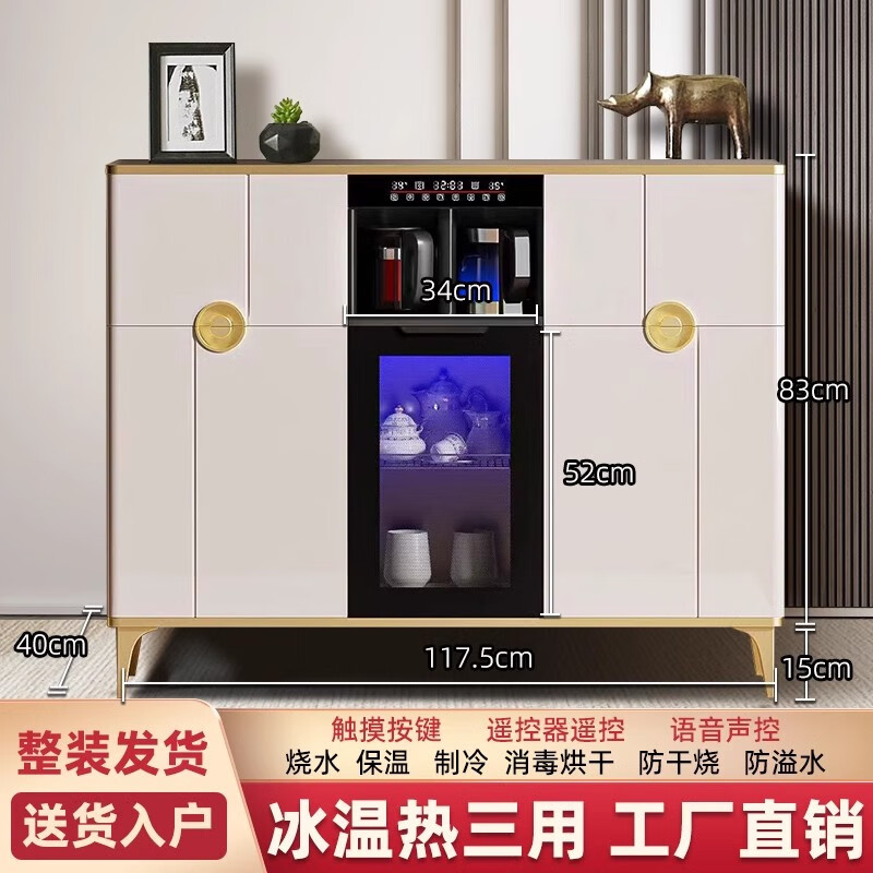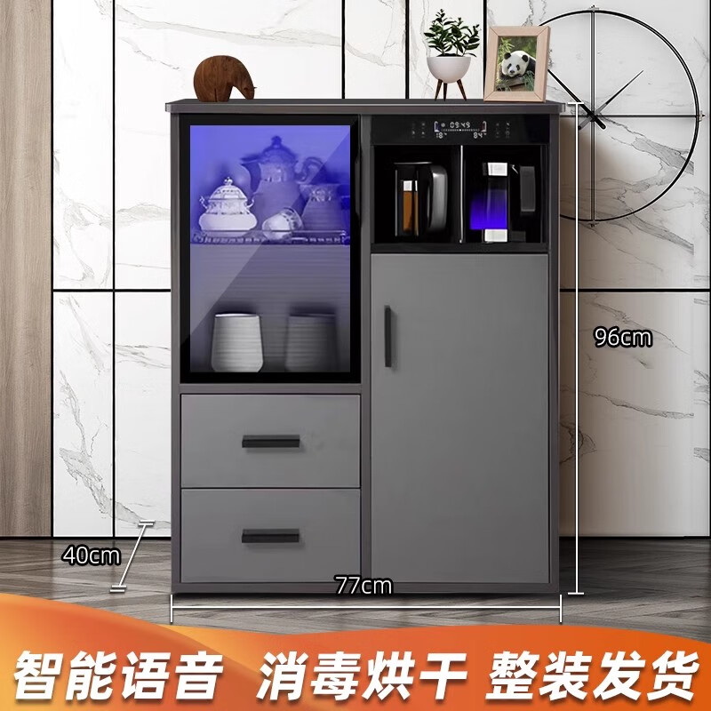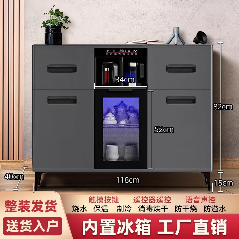 He Jiagong Voice Intelligent Tea Bar Machine for Home High-end Living Room 2025 New Tea Drinking Machine with Dinner Side One 620 High Gloss Gray with Cabinet + Refrigerator Warm