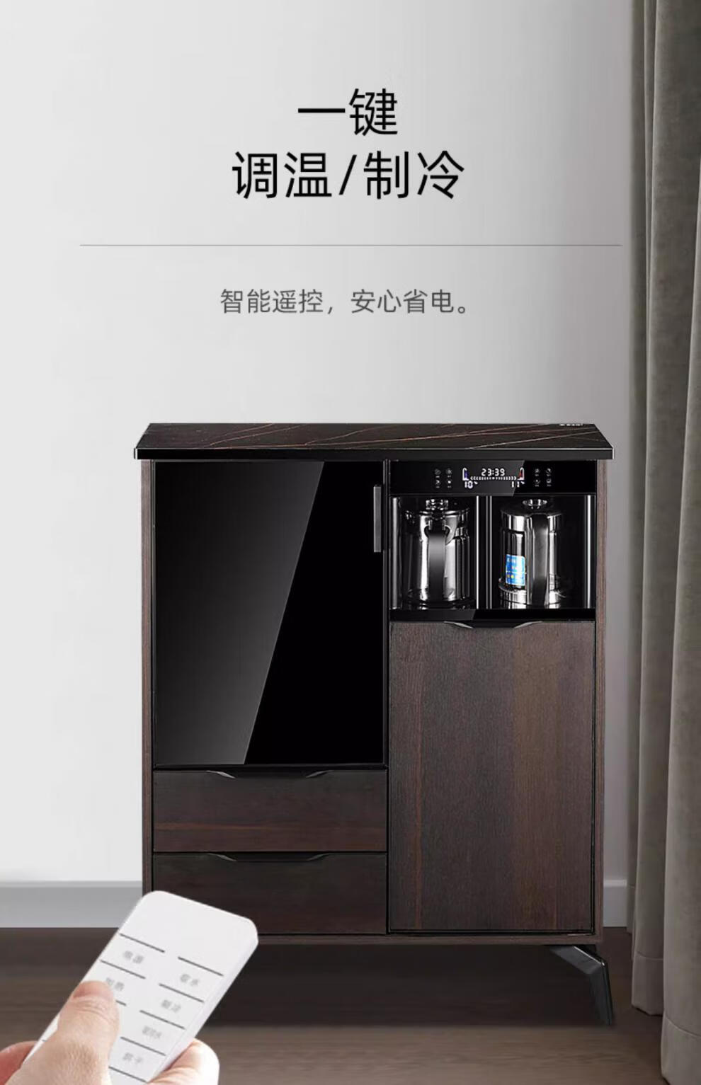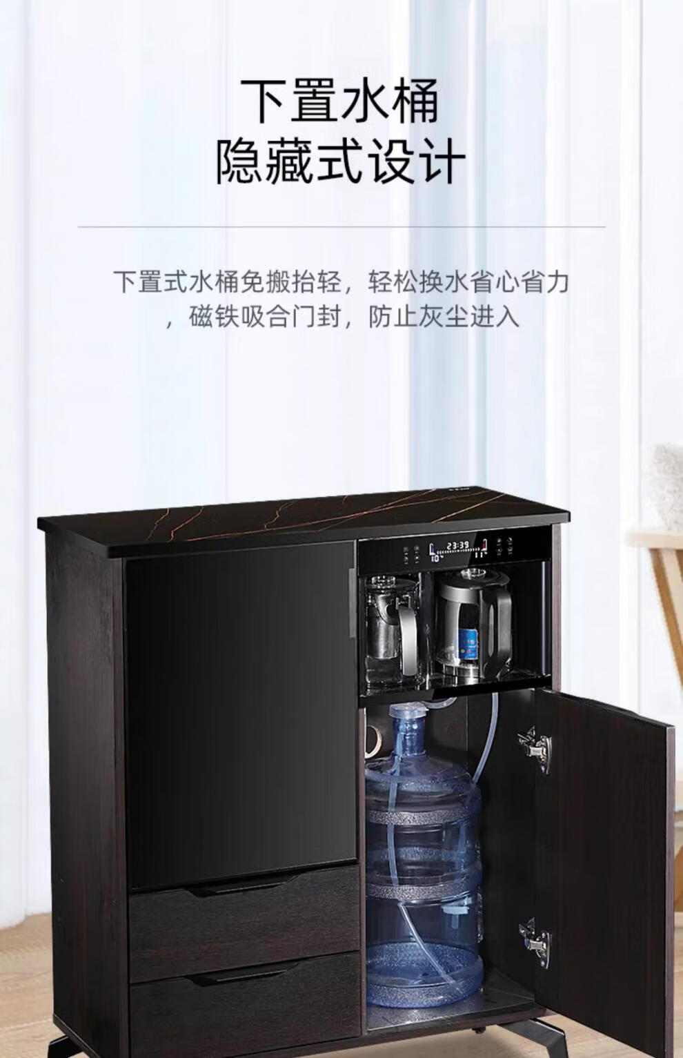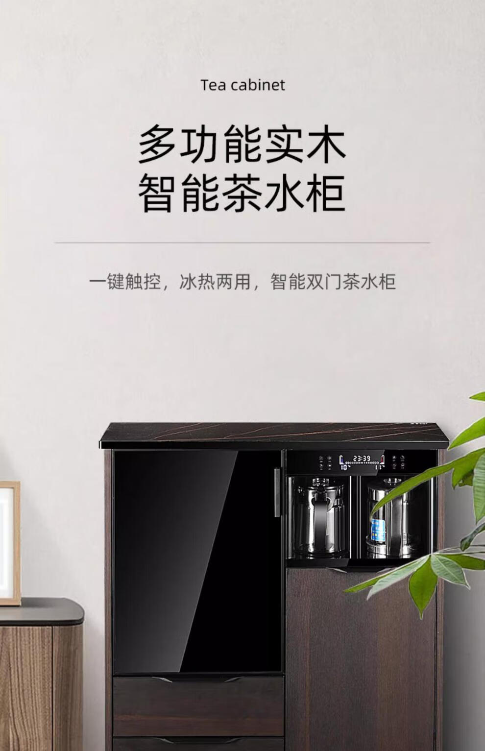 He Jiagong Voice Intelligent Tea Bar Machine for Home High-end Living Room 2025 New Tea Drinking Machine with Dinner Side One 620 High Gloss Gray with Cabinet + Refrigerator Warm