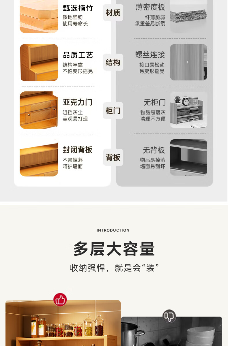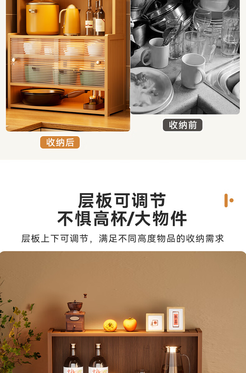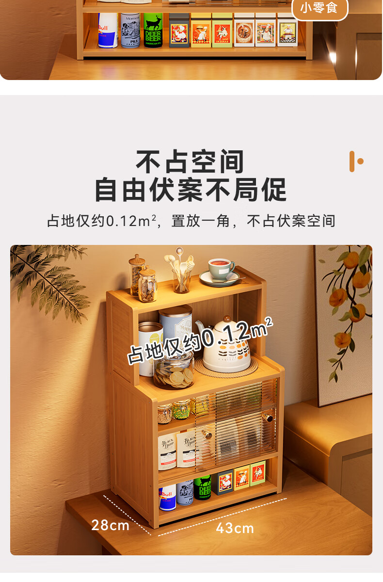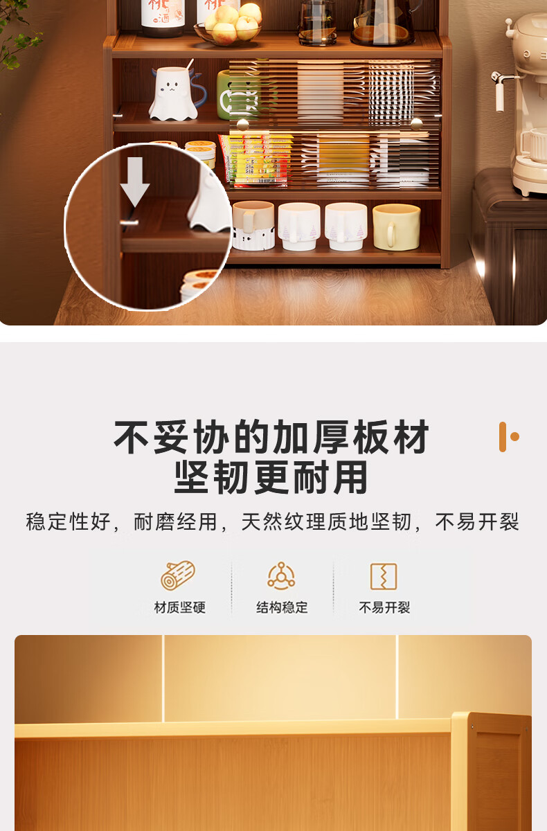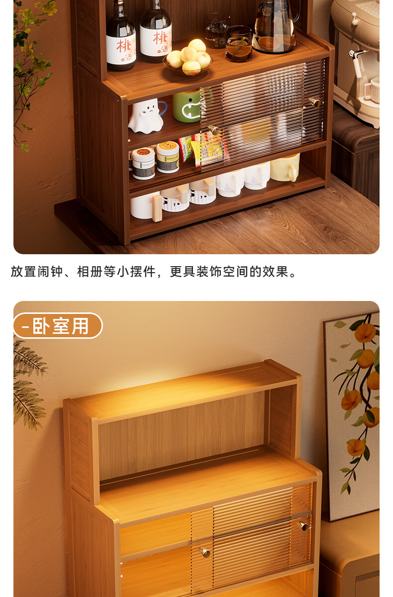 Jingxi Multifunctional Storage Rack Japanese Simple Sideboard Desktop Storage Cabinet Cabinet Cupboard Non-Solid Wood Dining Table Storage Rack Original Color 4 Layers 43 Long-Storage Rack