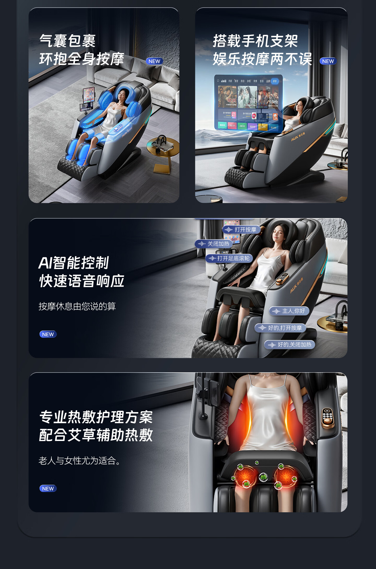 AUX New Home Massage Chair Space Capsule 2025 Full Body Zero Gravity Multifunctional Smart Electric Massage Sofa Fully Automatic Massage Recliner 4D Practical Birthday Gift for Parents Flagship Exclusive Model Fully Covered Jade Movement +360 Leg and Foot Massage 30-Day Free Trial Free Return and Exchange Shipping Fees