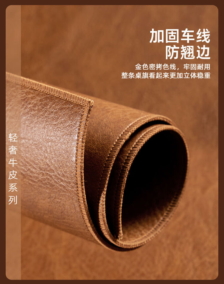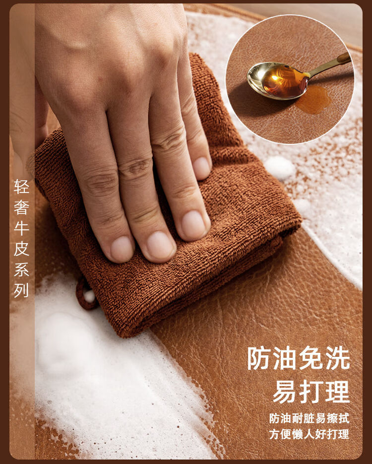 XMSJ cowhide tablecloth, light luxury and high-end dining table mat, no-wash, oil-proof, waterproof, anti-scalding, coffee table, tabletop protection pad, sideboard, light tea brown, double-sided, no-wash, easy to care for, 70*140cm