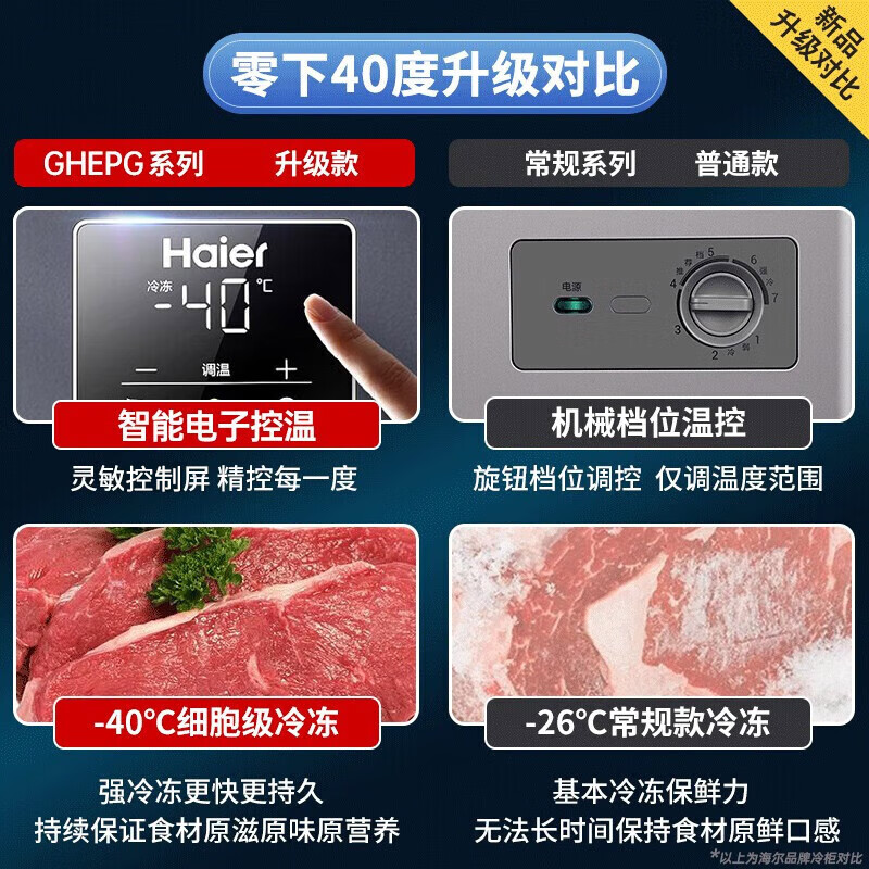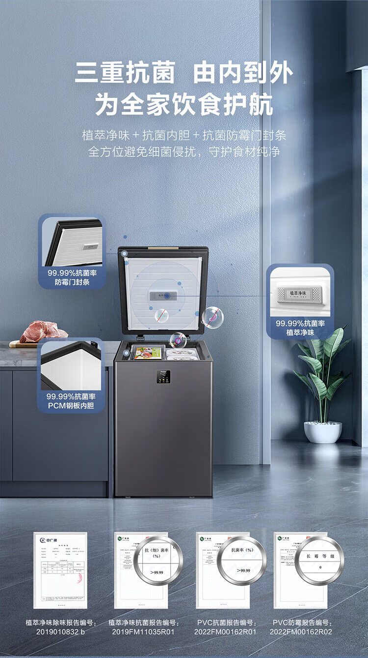 Haier small freezer 100 liters or more, household and commercial, large capacity, first-class energy-saving, frost-reducing, ultra-low temperature cryogenic quick-freezer, freezer and refrigeration dual-use cabinet, comes with casters + basket + tray 3-08 liters | -35 C quick freezing | mechanical temperature control | dual antibacterial