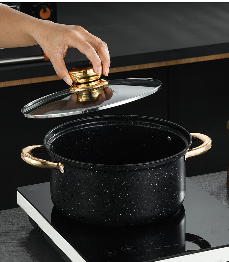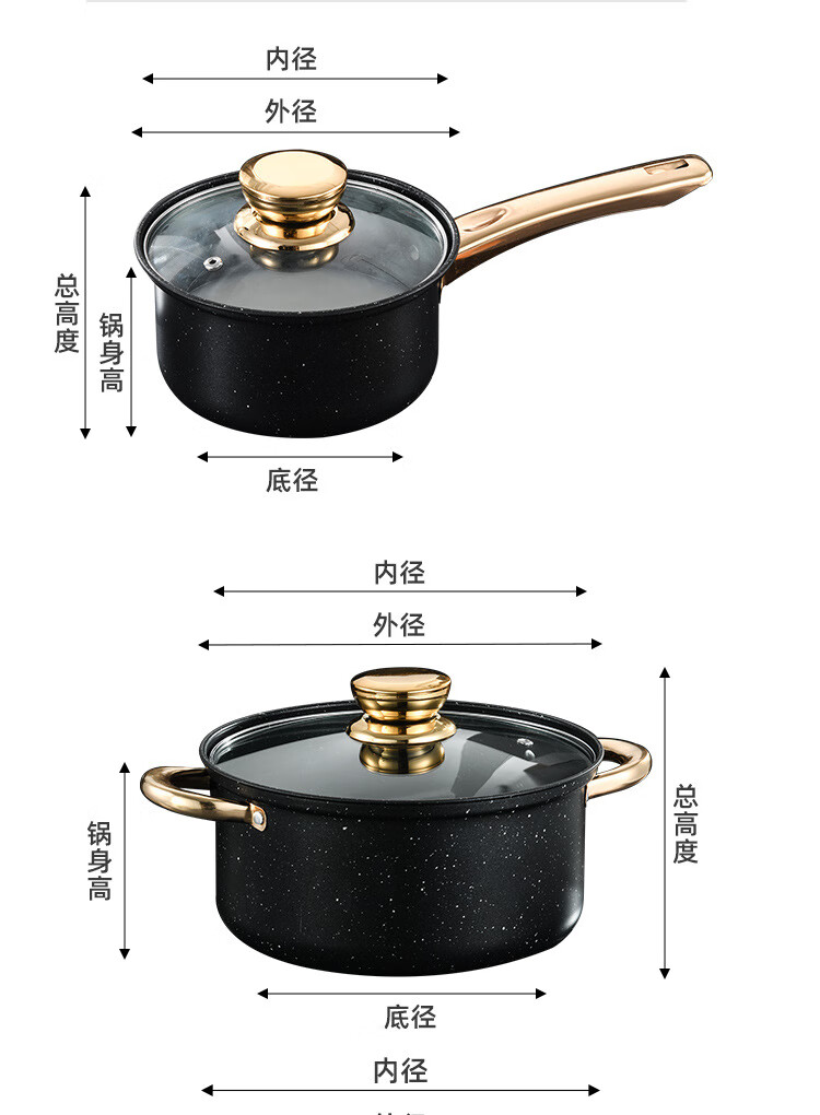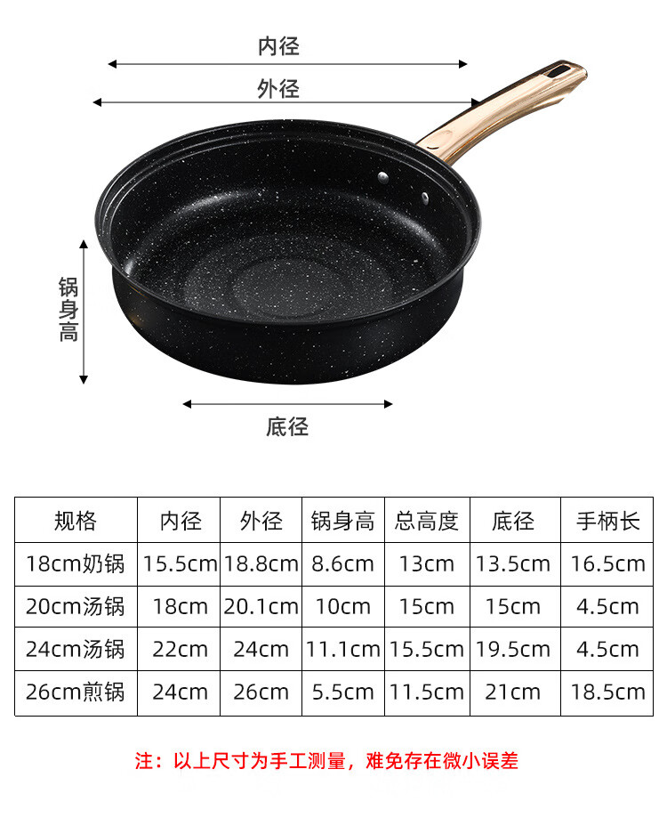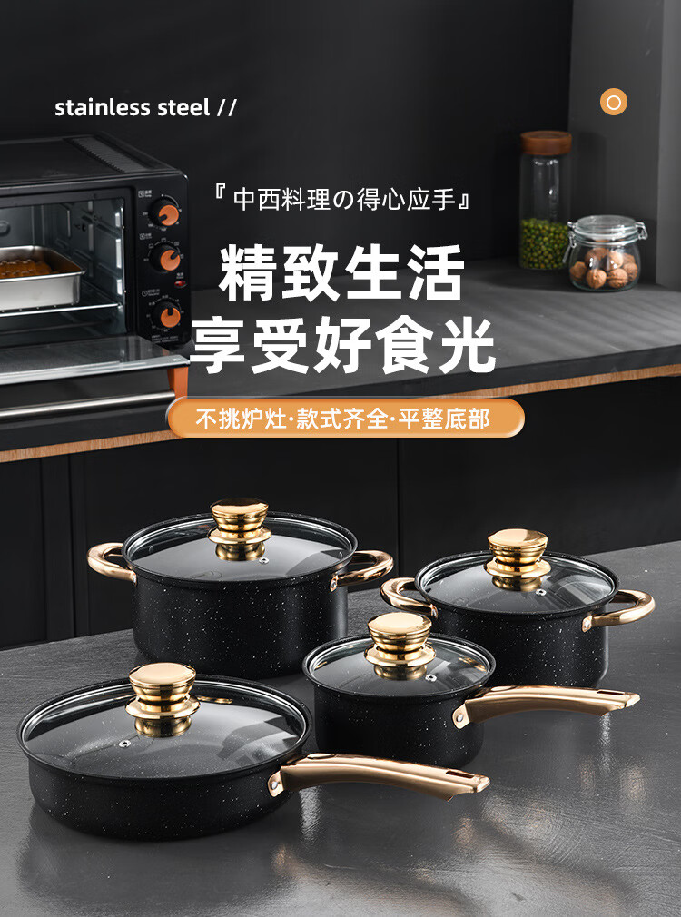Medical stone pot set non-stick thickened single-handle double-ear cooking pot milk pot soup pot frying pan household combination set 18cm milk pot + 20cm soup pot + 24cm soup pot + 26cm frying pan