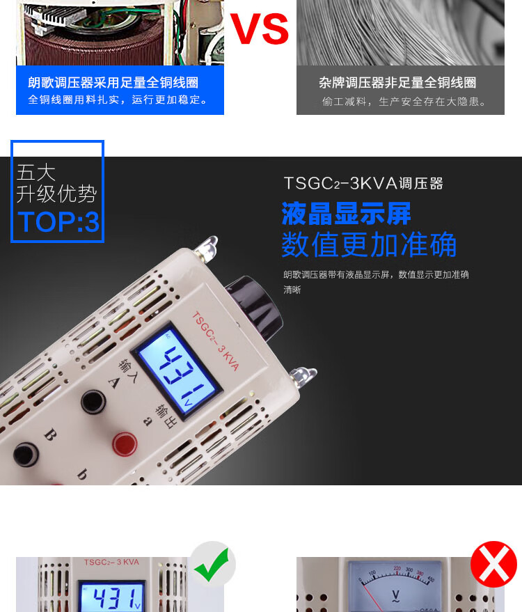 Langge three-phase 380V voltage regulator 1.5KW3K6K9KW20KVA AC power supply 0-430V adjustable transformer TSGC2-1500VA output 0-430V