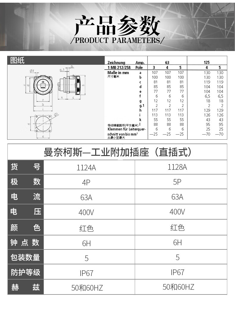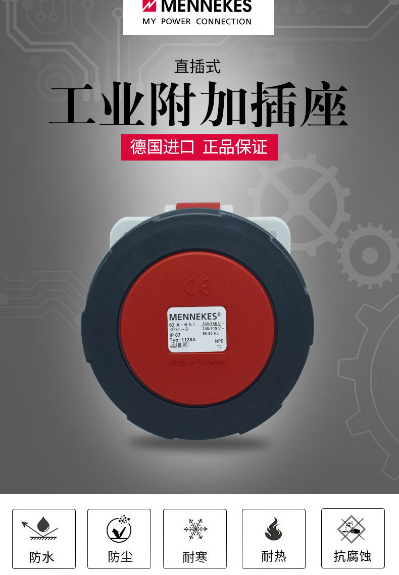 MENNEKES concealed direct-plug TYP1124A industrial waterproof socket imported from Germany TYP1128A 63A 4-core socket_TYP1124A